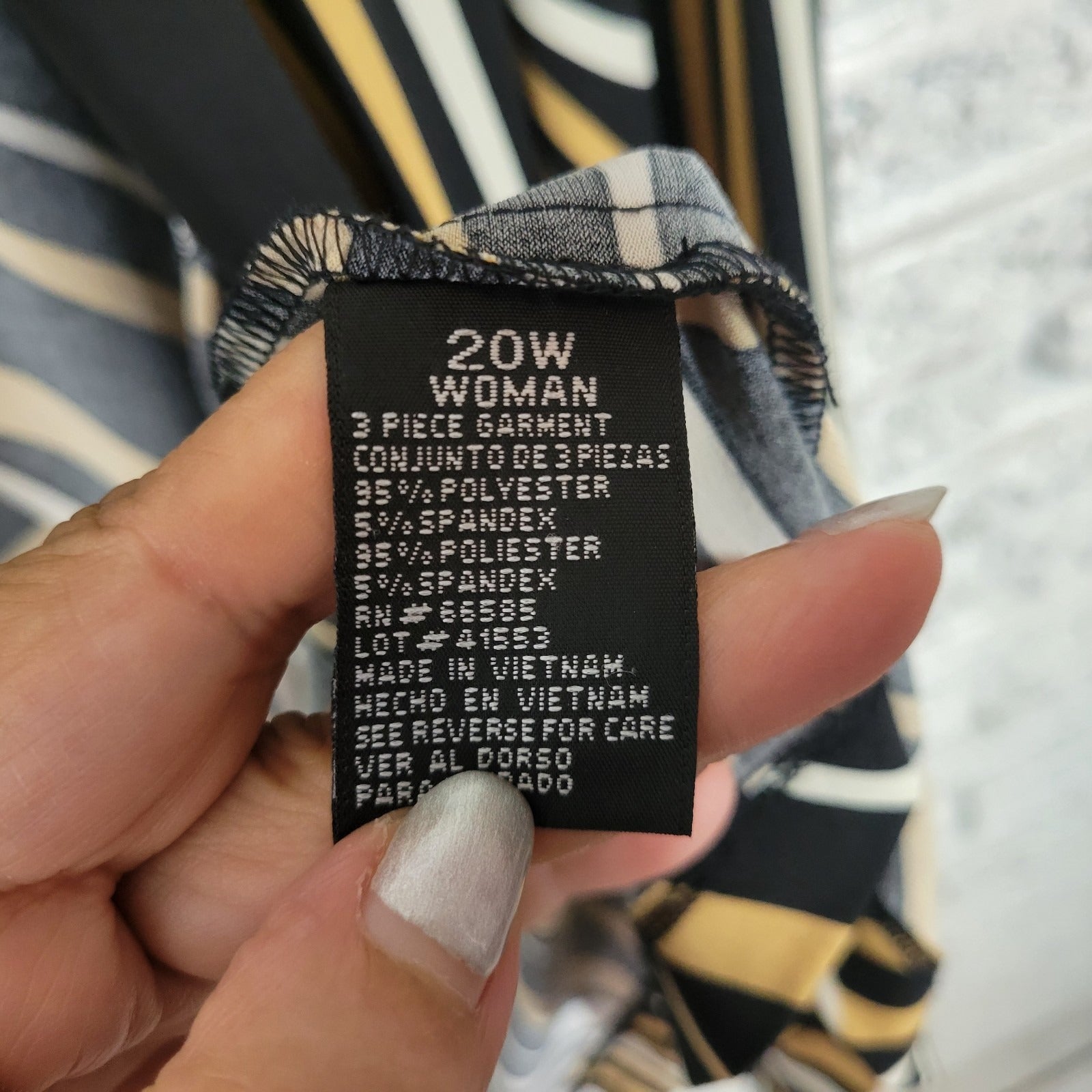 Perceptions Womens Top 20W Plus Cardigan Open Tan Black Geometric Poly Blend