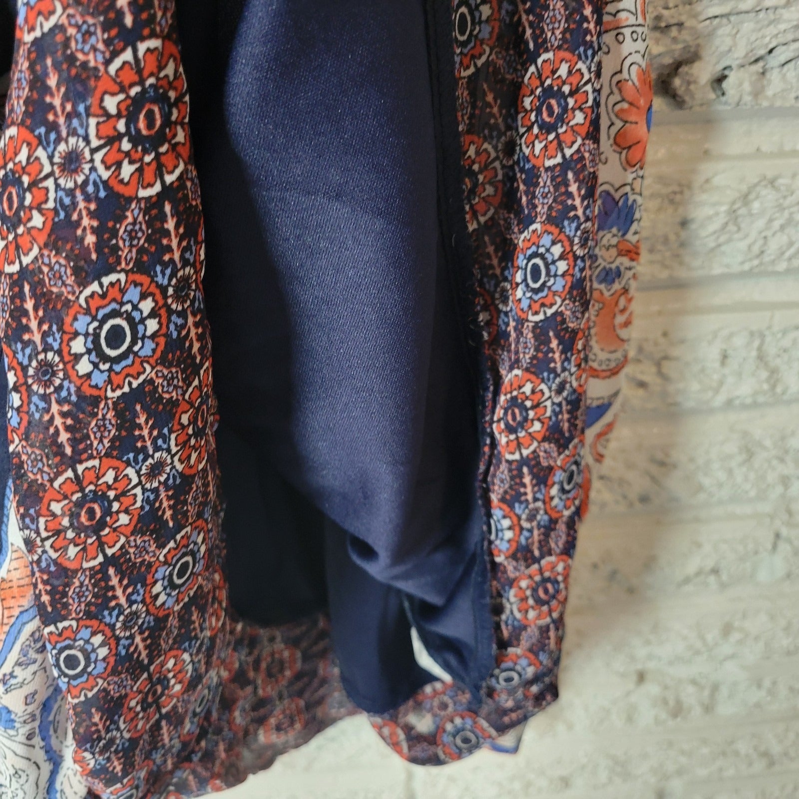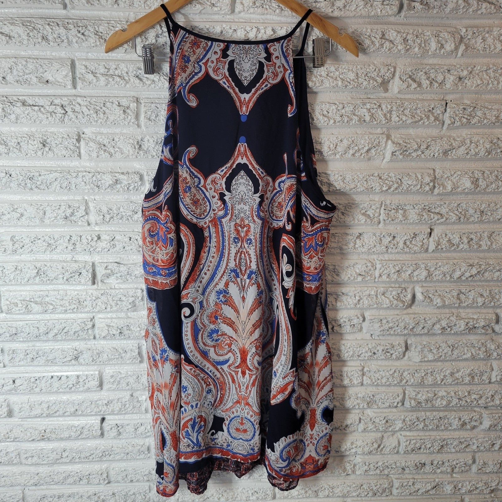 Perseption Womens Dress 3X Plus Mini Slip Blue Red Paisley Lightweight Keyhole