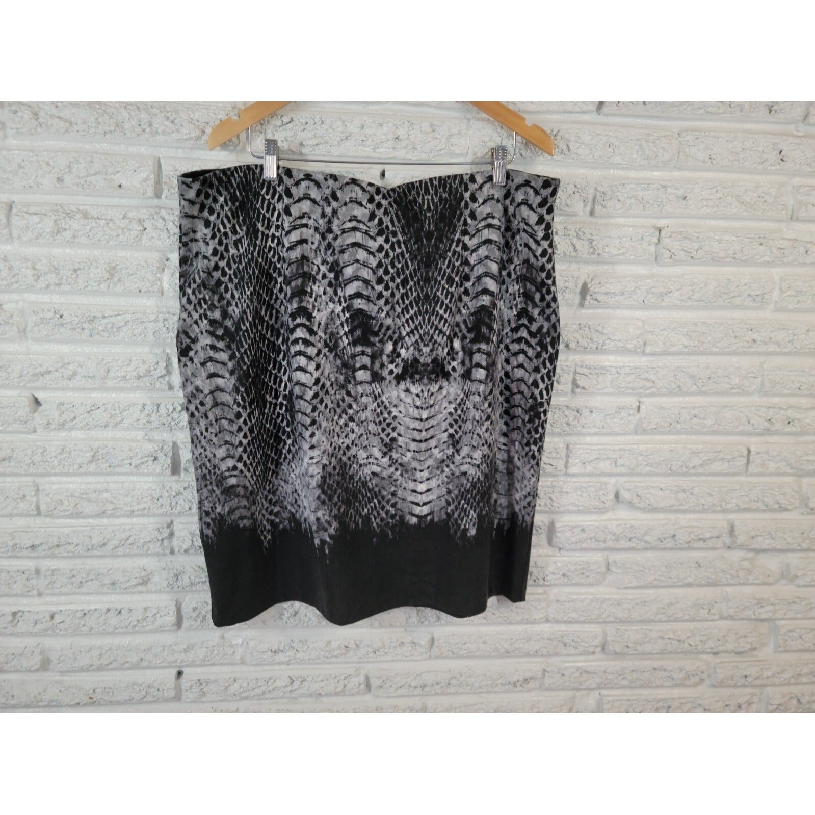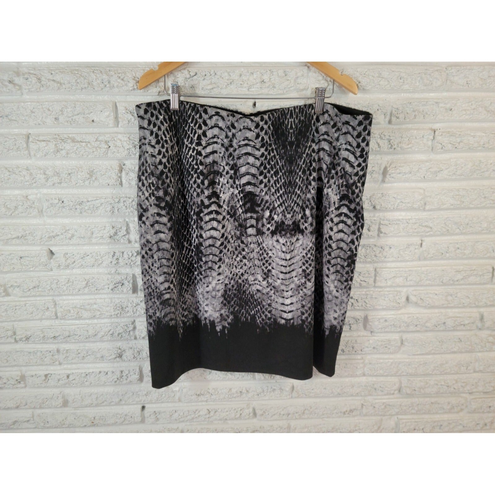 Peter Nygard Womens Skirt 1X Plus Pencil Black Gray Animal Print Comfort Waist