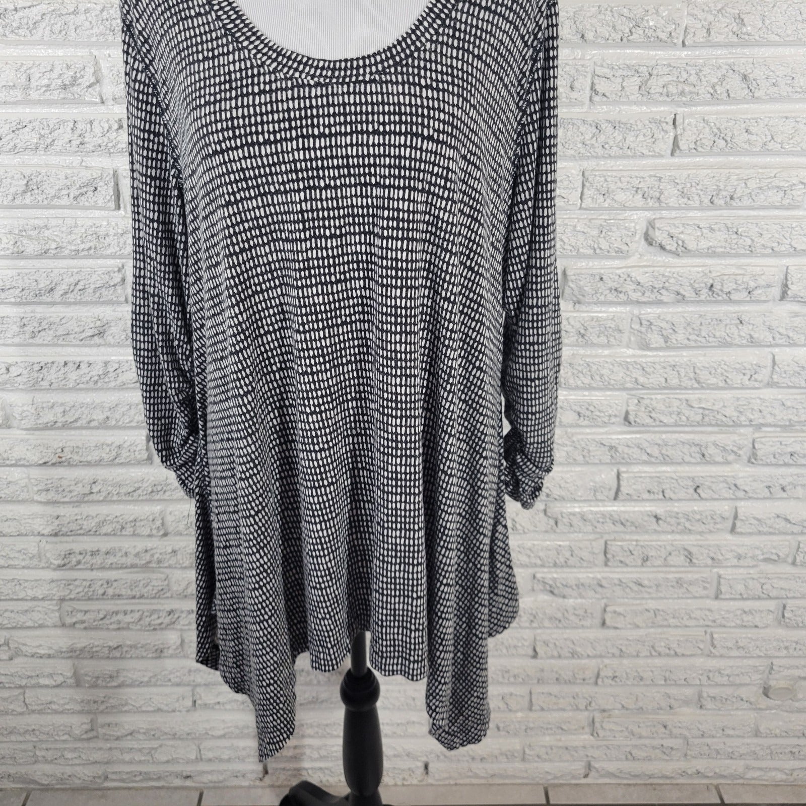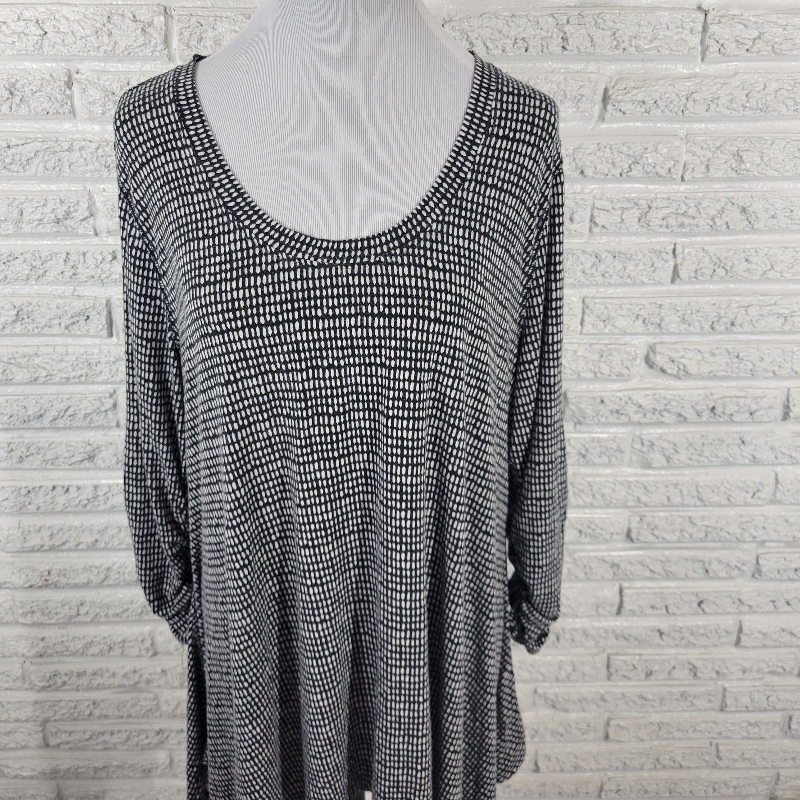 Philosophy Women Top XXL Plus Tunic 3/4 Sleeve Black Geometric Rayon Blend Comfy