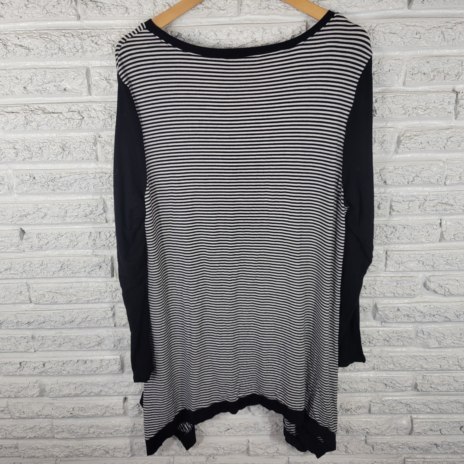 Philosophy Womens Top XXL Plus Tunic Black White Stripe Asymmetric Comfy Casual