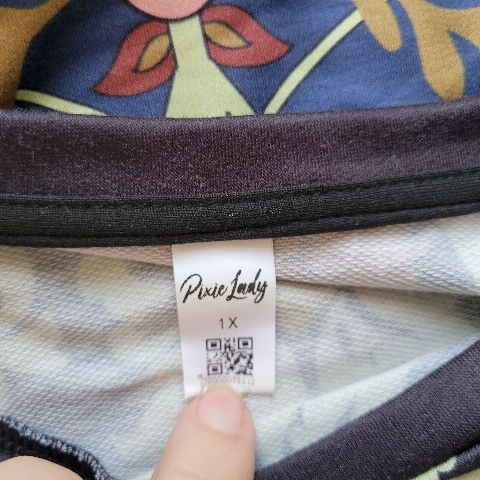 Pixie Lady Womens Top 1X Plus Long Sleeve Blue Green Floral Poly Blend Comfy