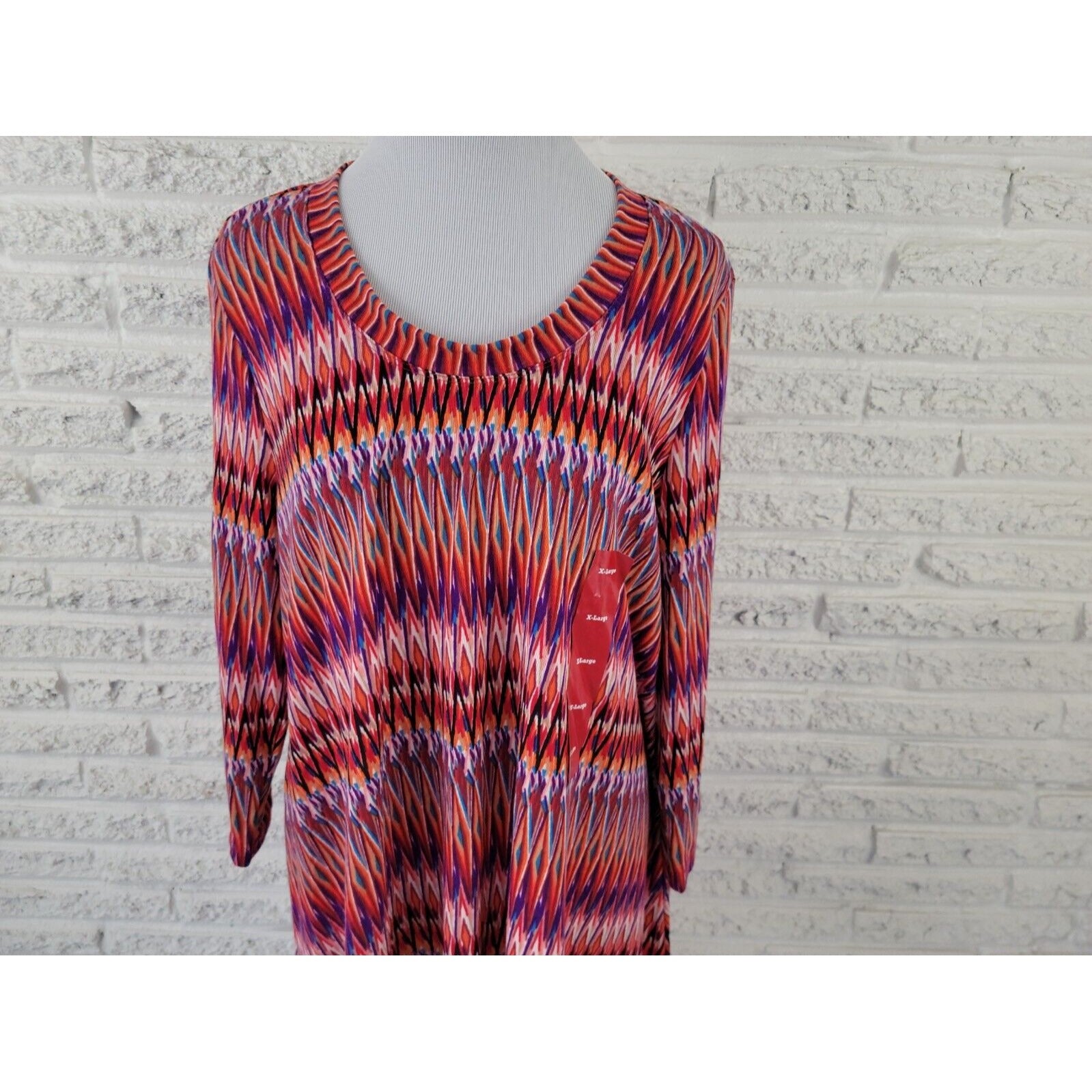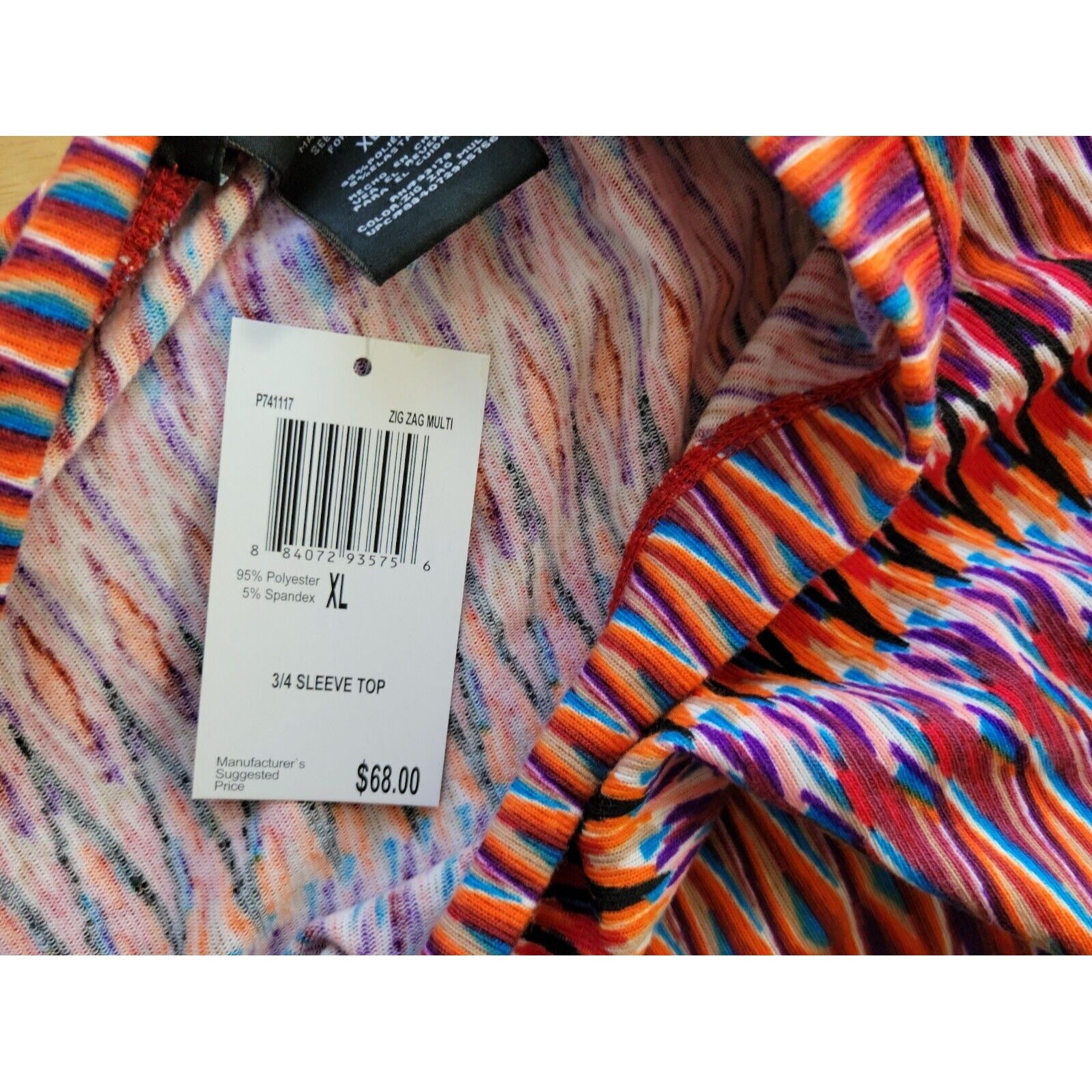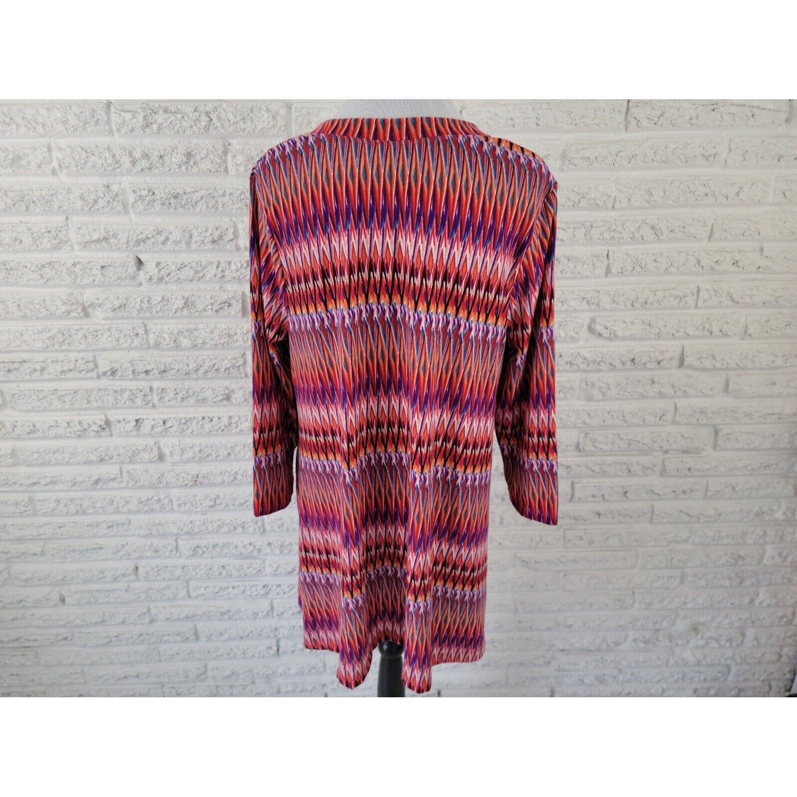 Premise Womens Top Extra Large Tunic 3/4 Sleeve Pullover Red Geometric New