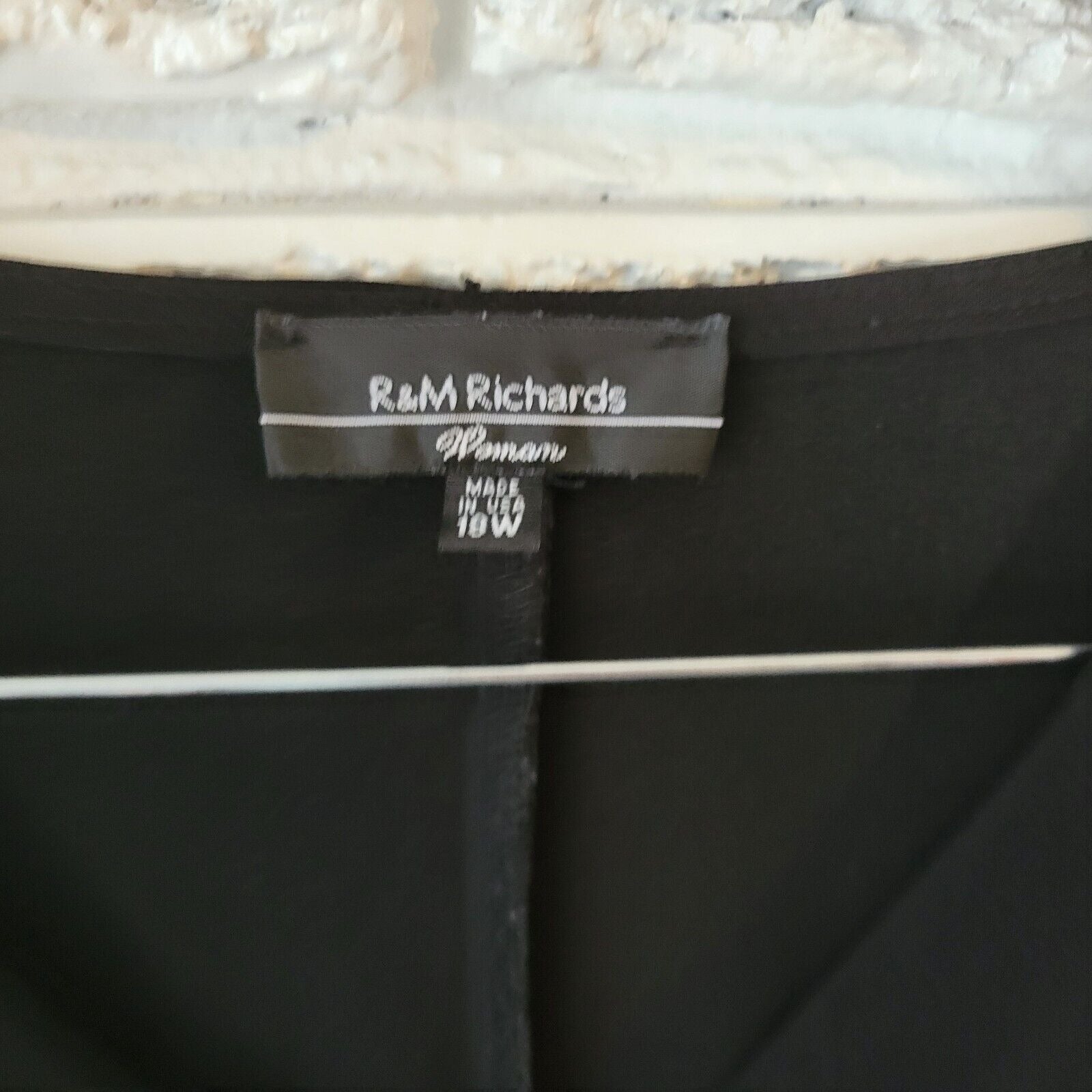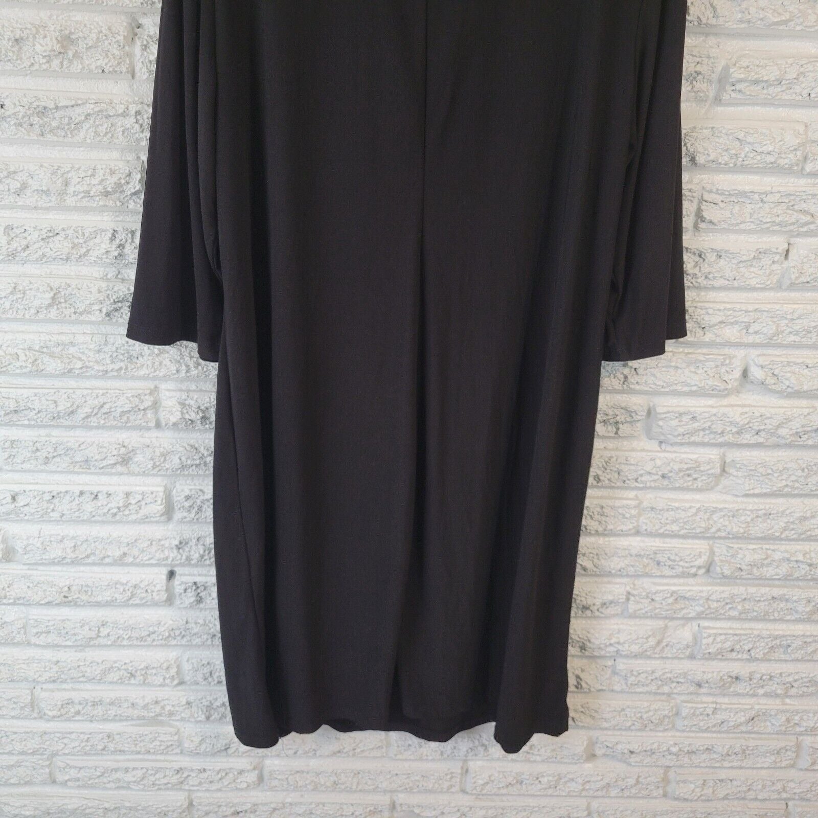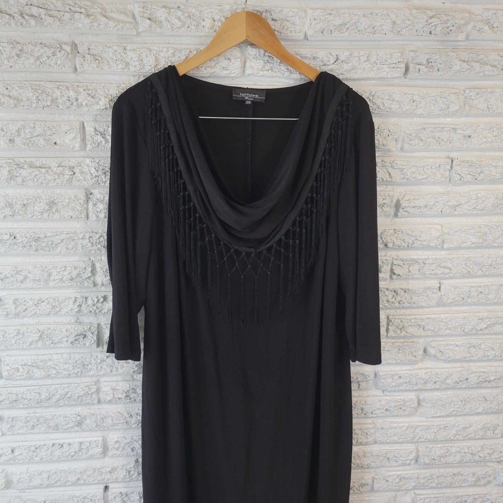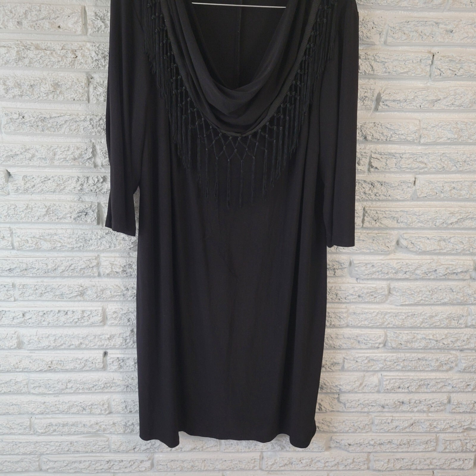 R&M Richards Womens Dress 18W Plus 3/4 Sleeve Black Fringe Poly Blend Cowl Neck