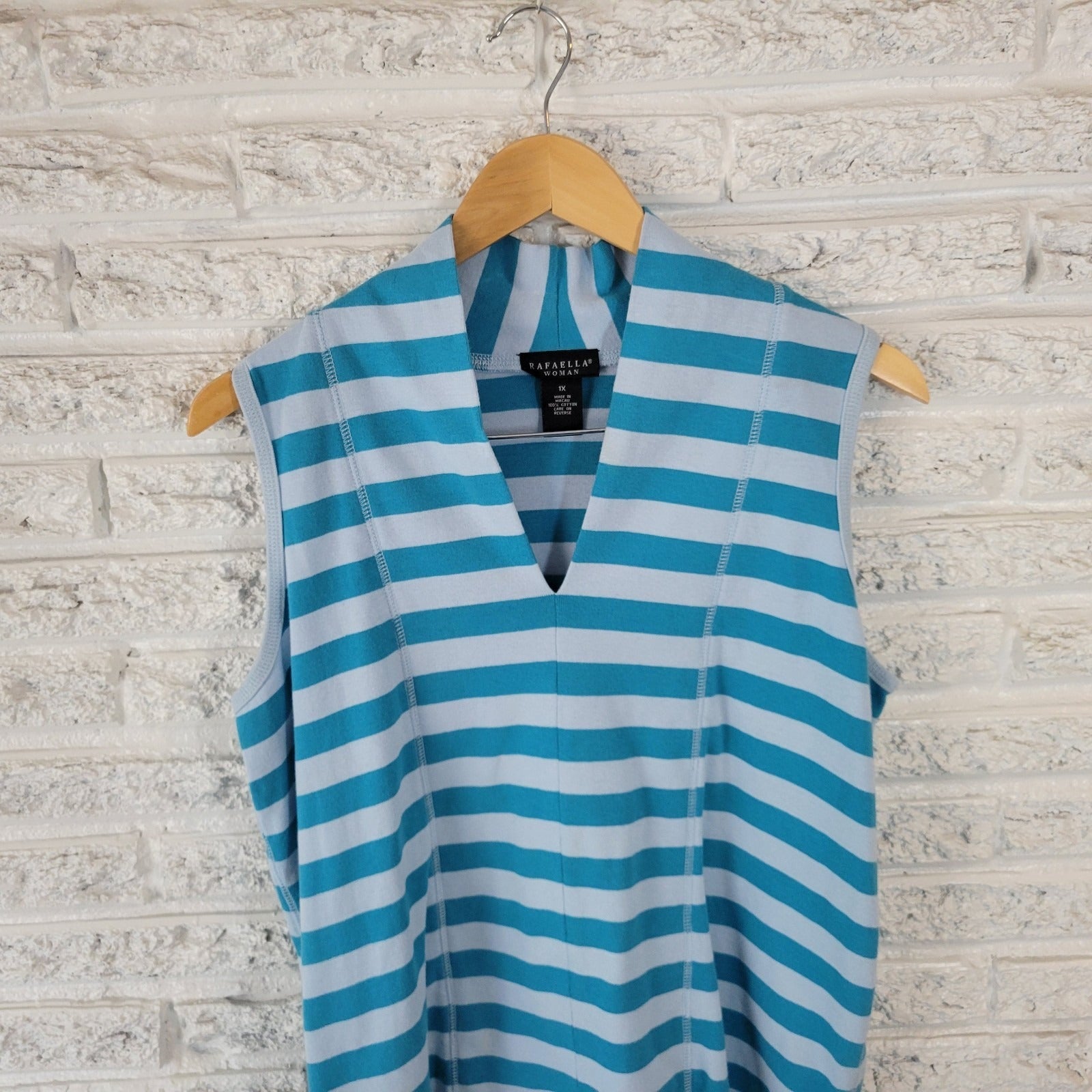 Rafaella Women Top 1X Plus Sleeveless Knit Blue White Stripe Cotton Comfy Casual