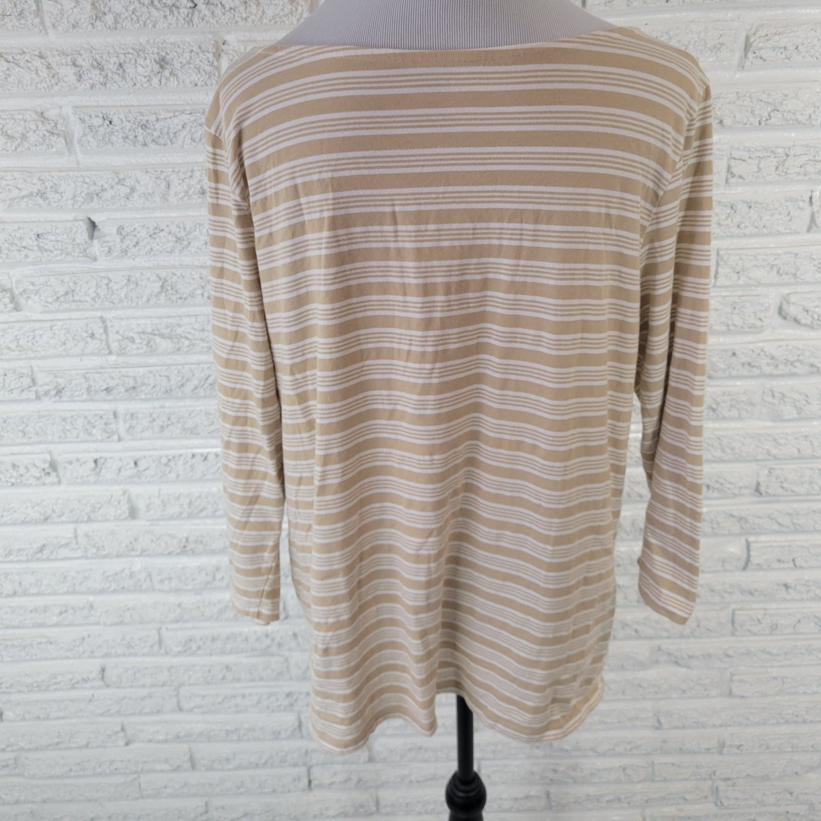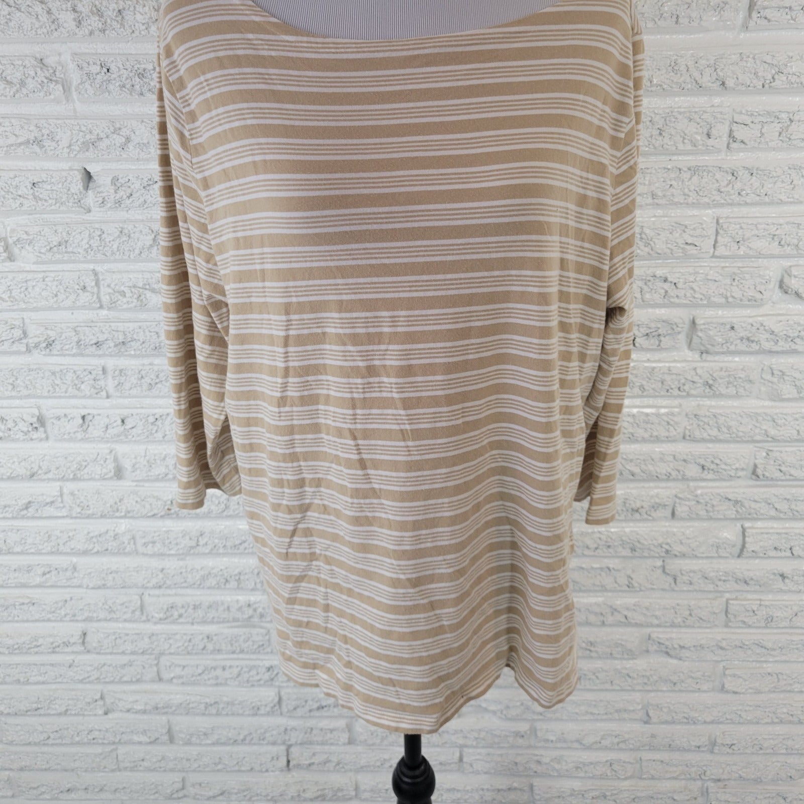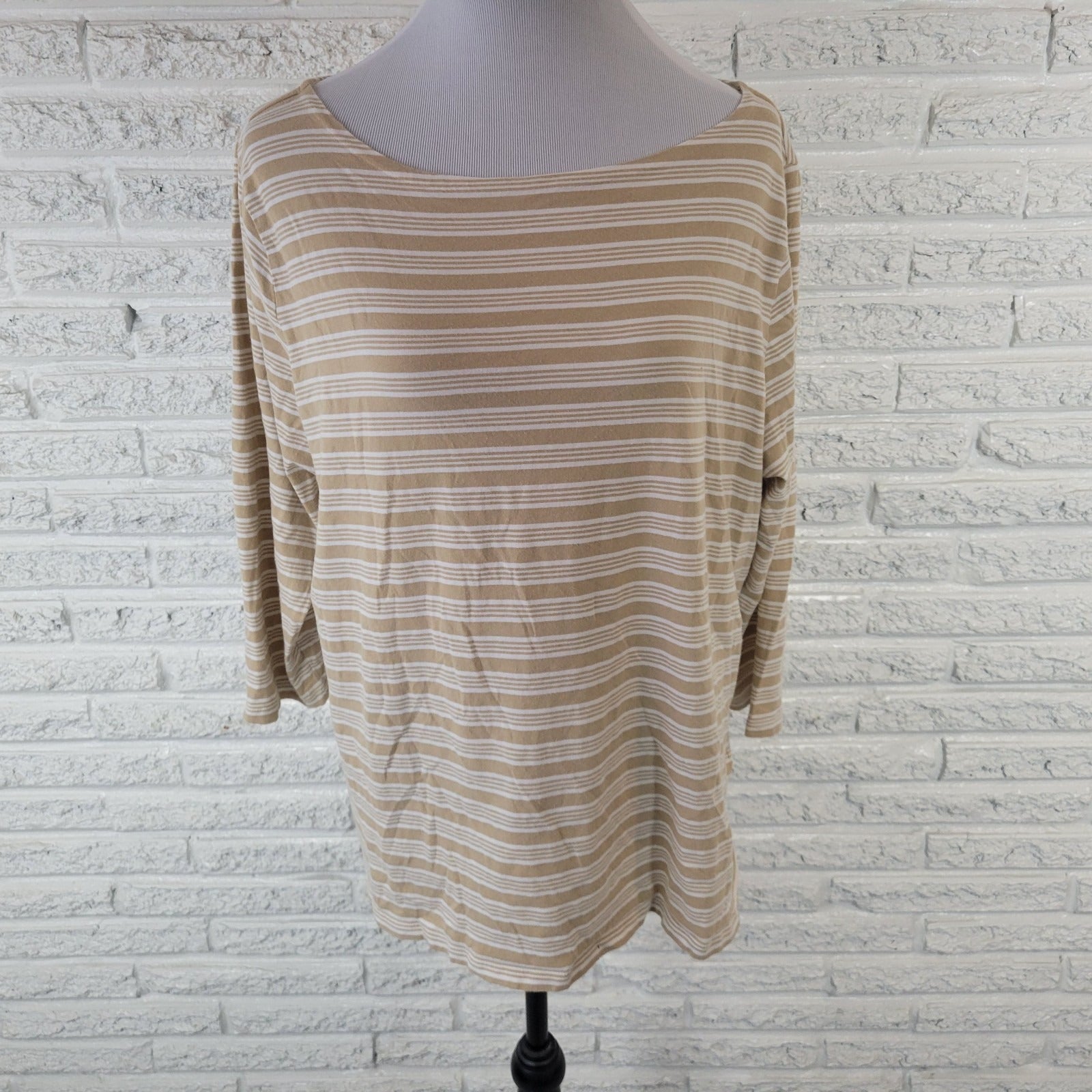 Rafaella Women Top 2X Plus Tee 3/4 Sleeve Beige Stripe Cotton Blend Casual Comfy