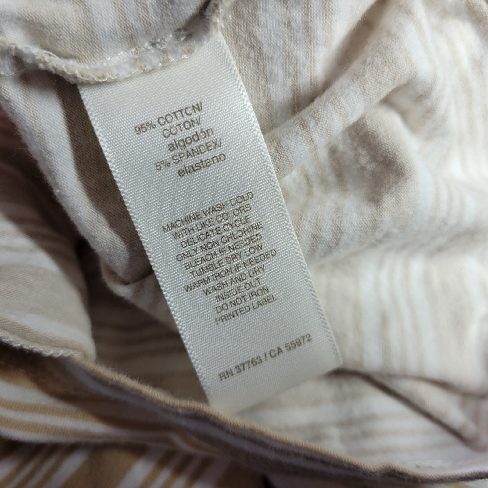 Rafaella Women Top 2X Plus Tee 3/4 Sleeve Beige Stripe Cotton Blend Comfy Casual