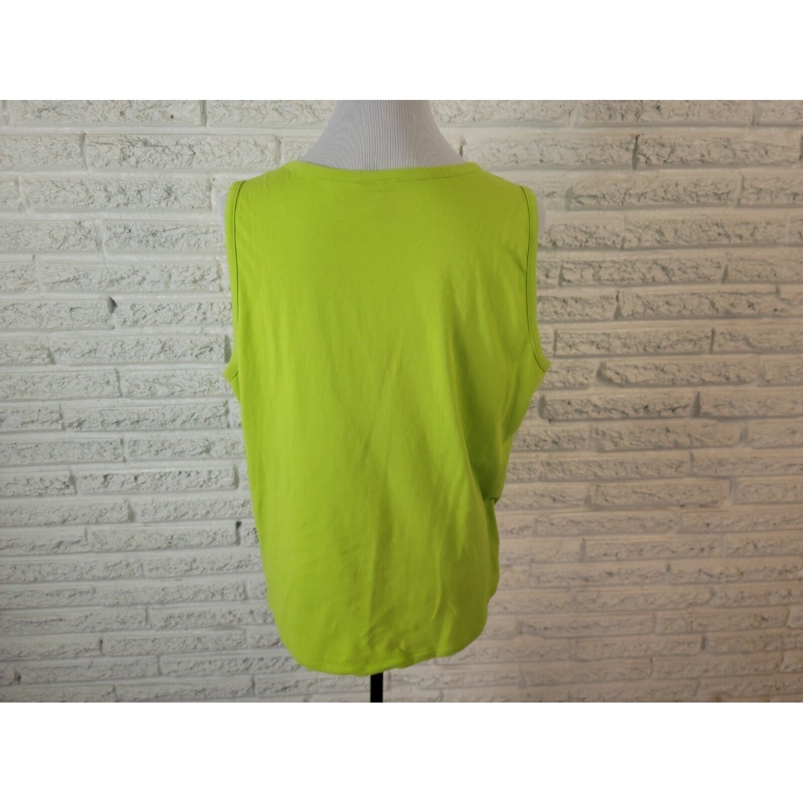 Rafaella Womens Top Extra Large XL Tank Green Crochet Poly Blend Lined Casual