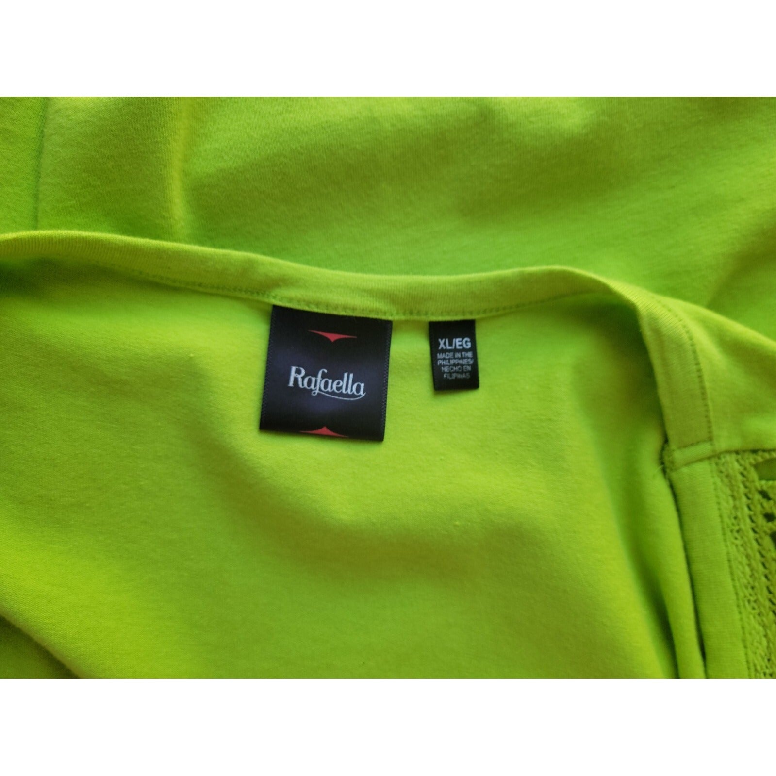 This Rafaella women's top is a perfect addition to your casual wardrobe. The sleeveless tank top features a solid green color and is made of a polyester blend material. It has a round neckline, pullover closure, and is lined for comfort. The top is machine washable and has a regular fit, making it suitable for all seasons. The extra-large size of the tank top ensures a comfortable and relaxed fit, perfect for a casual occasion. The top is stretchy and all-season, making it a versatile addition to your wardrobe. It is suitable for winter, summer, fall, and spring.