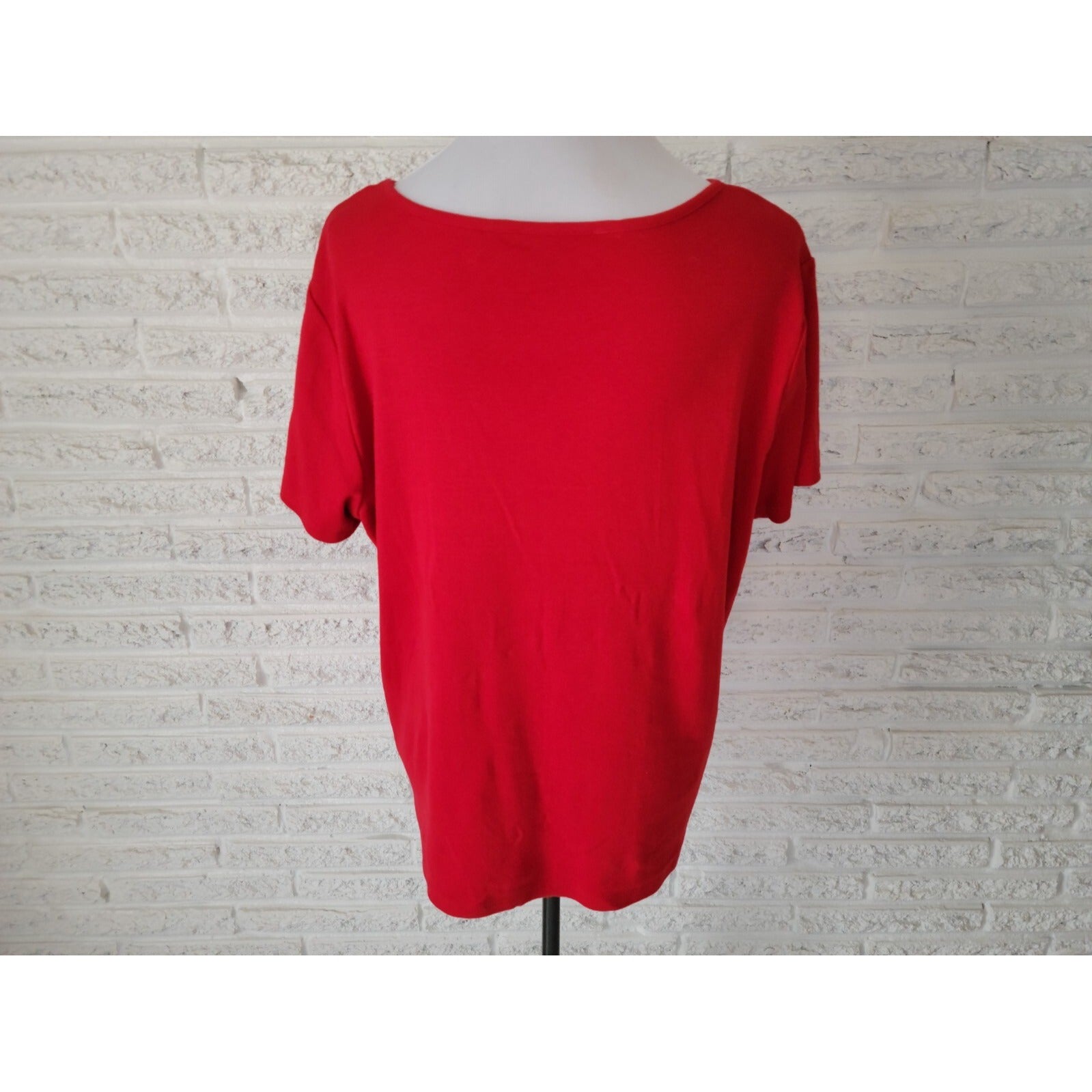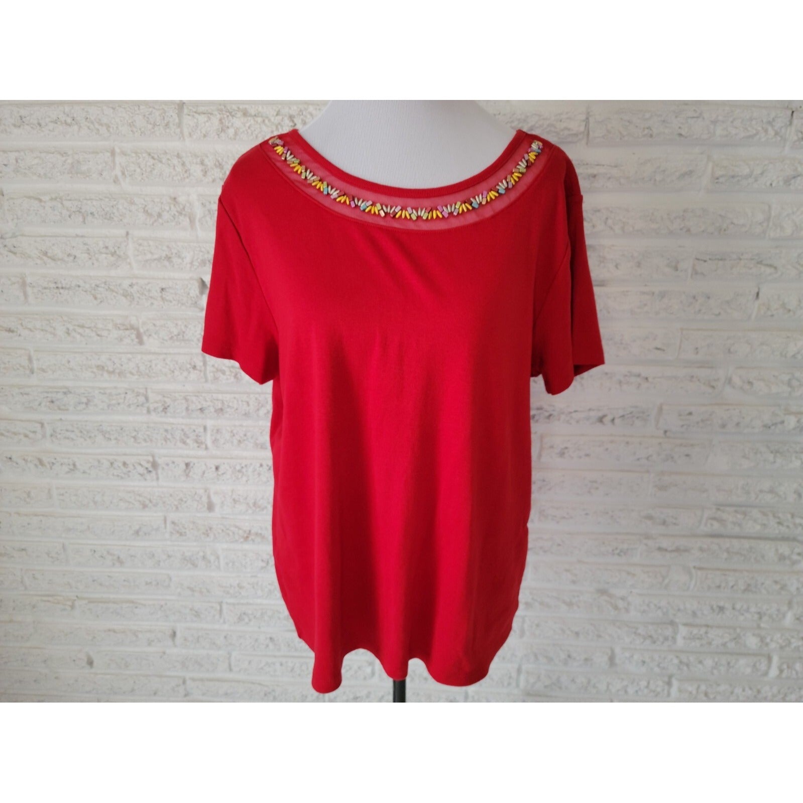 Rafaella Womens Top XXL Plus Tee Short Sleeve Knit Cotton Beads Red Boat Neck