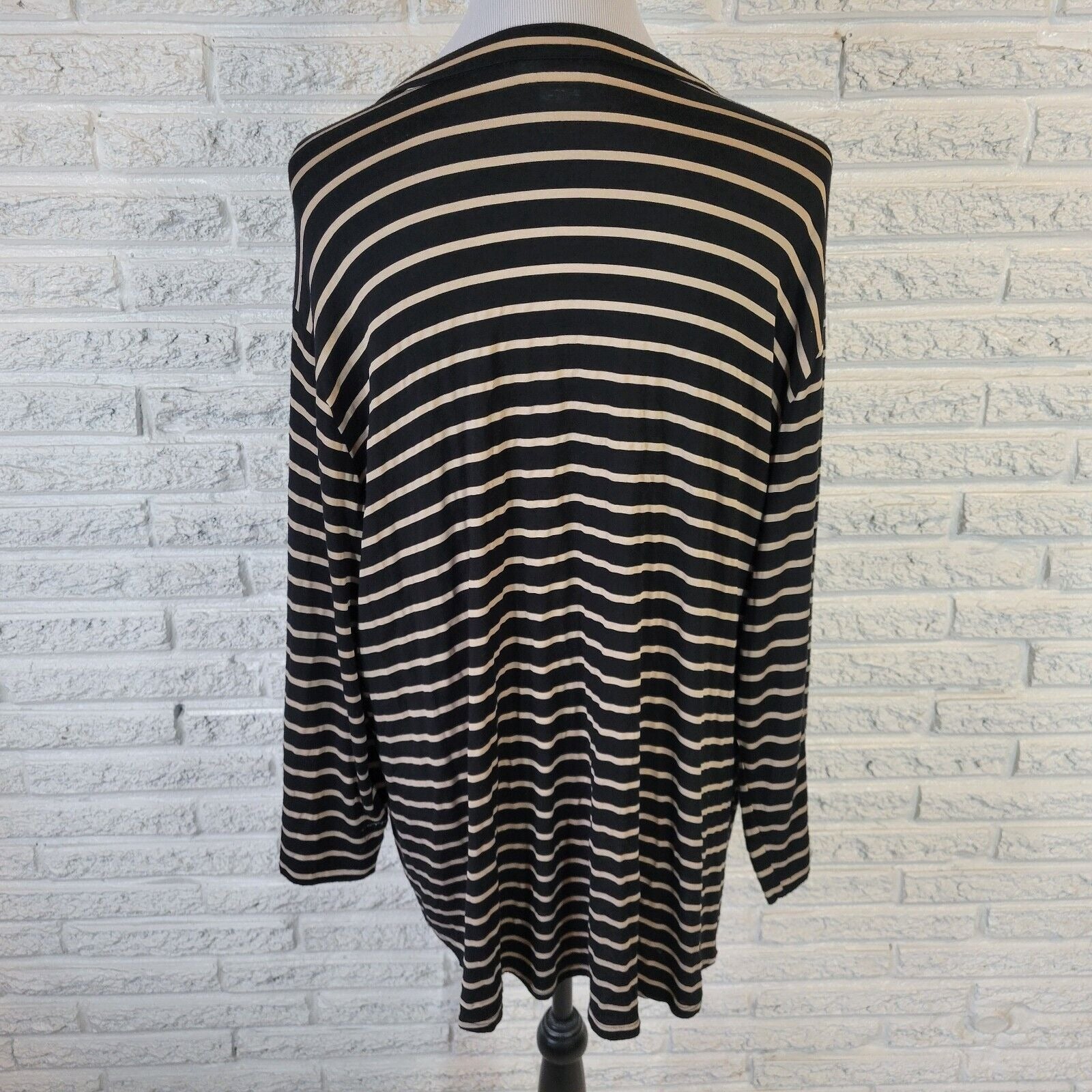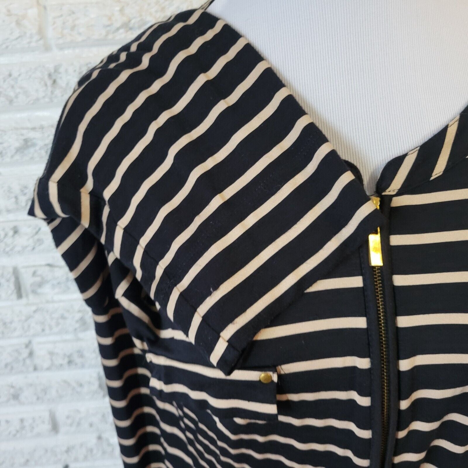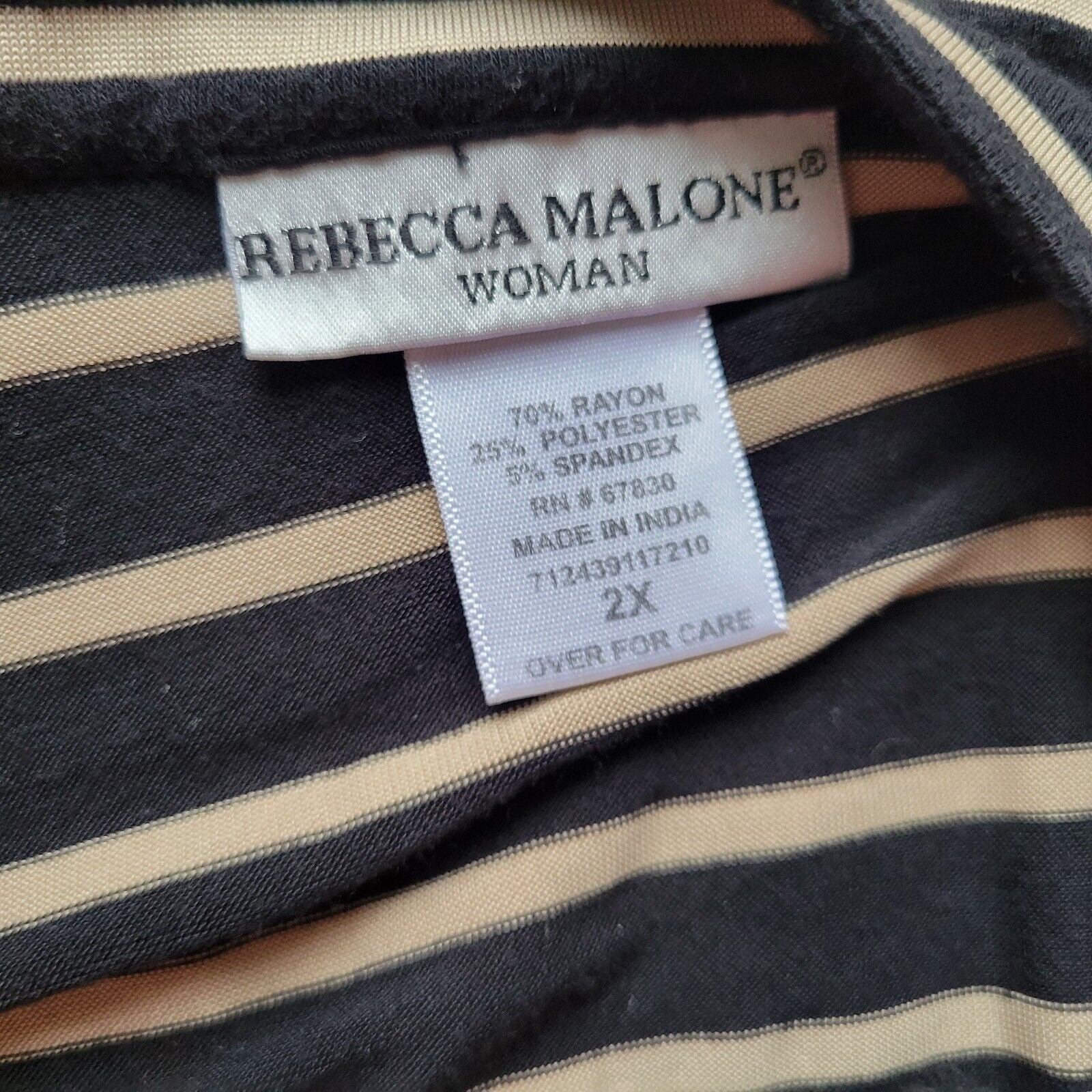 Rebecca Malone Women Top 2X Plus 3/4 Sleeve Zip Black Stripe Faux Pockets Casual
