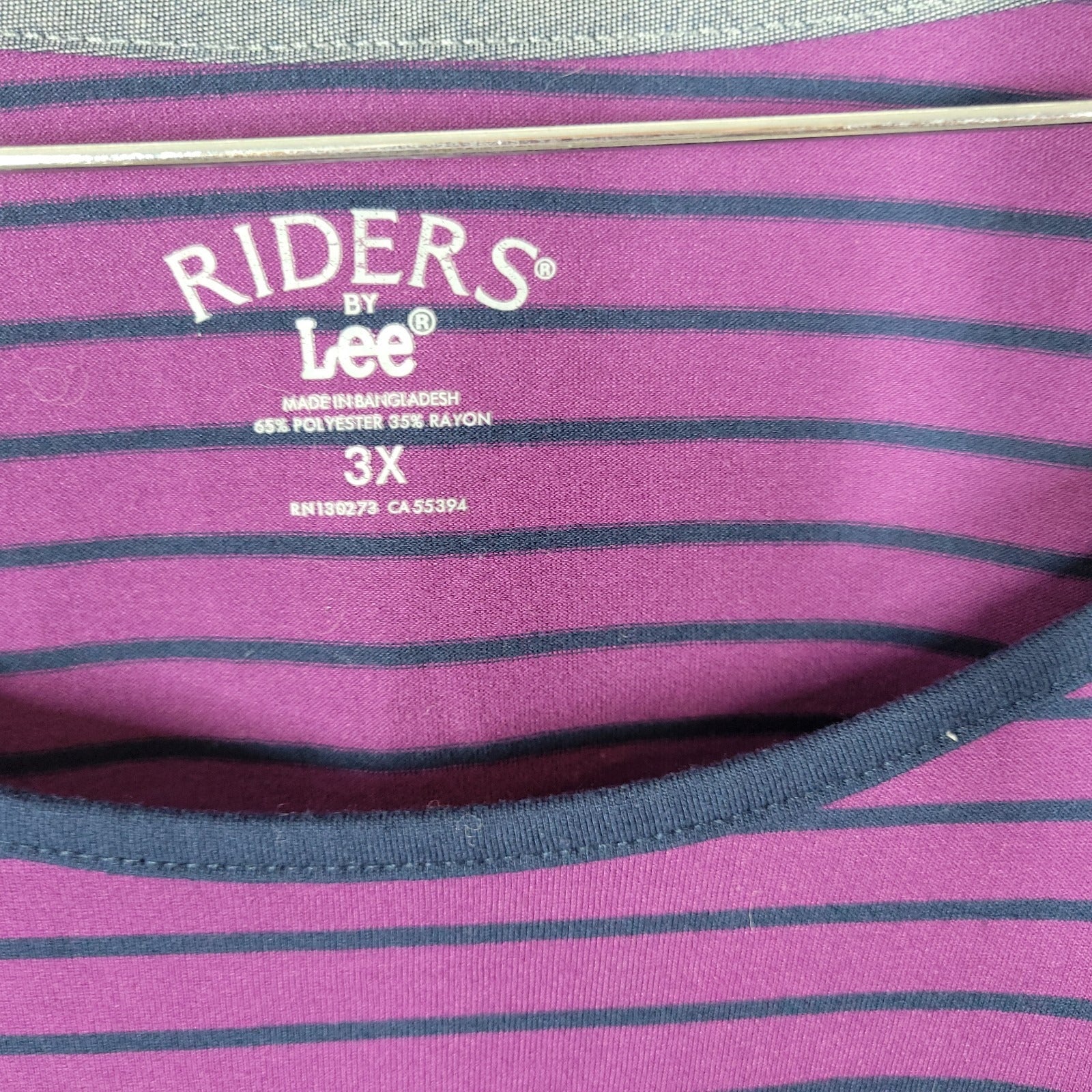 Riders by Lee Womens Top 3X Plus Tee 3/4 Sleeve Purple Stripe Poly Blend Comfy