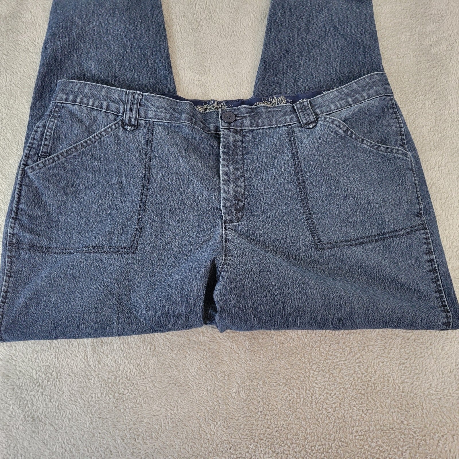 Riders Lee Womens Jeans 18 Plus Capri Zip Fly Dark Blue Denim Wash Tapered Comfy