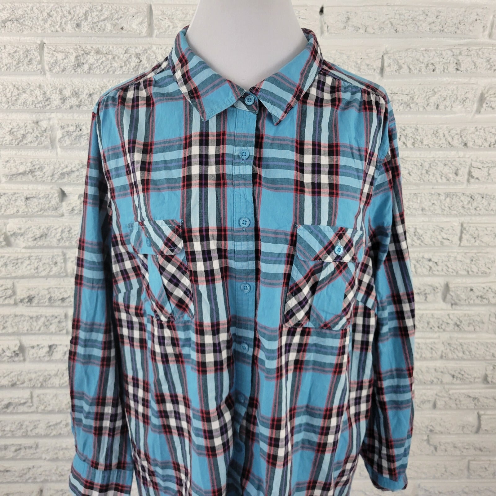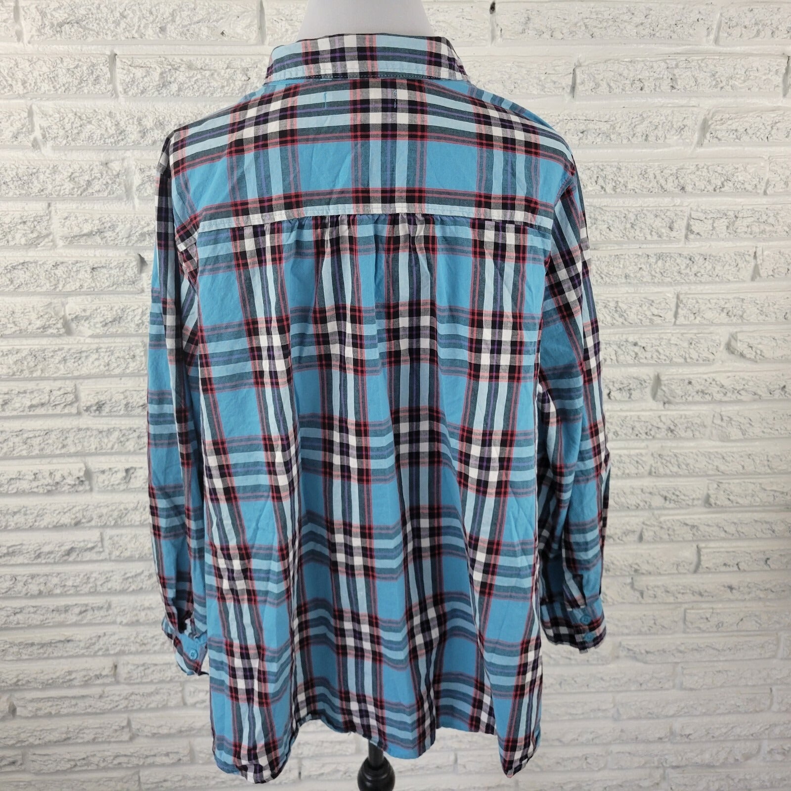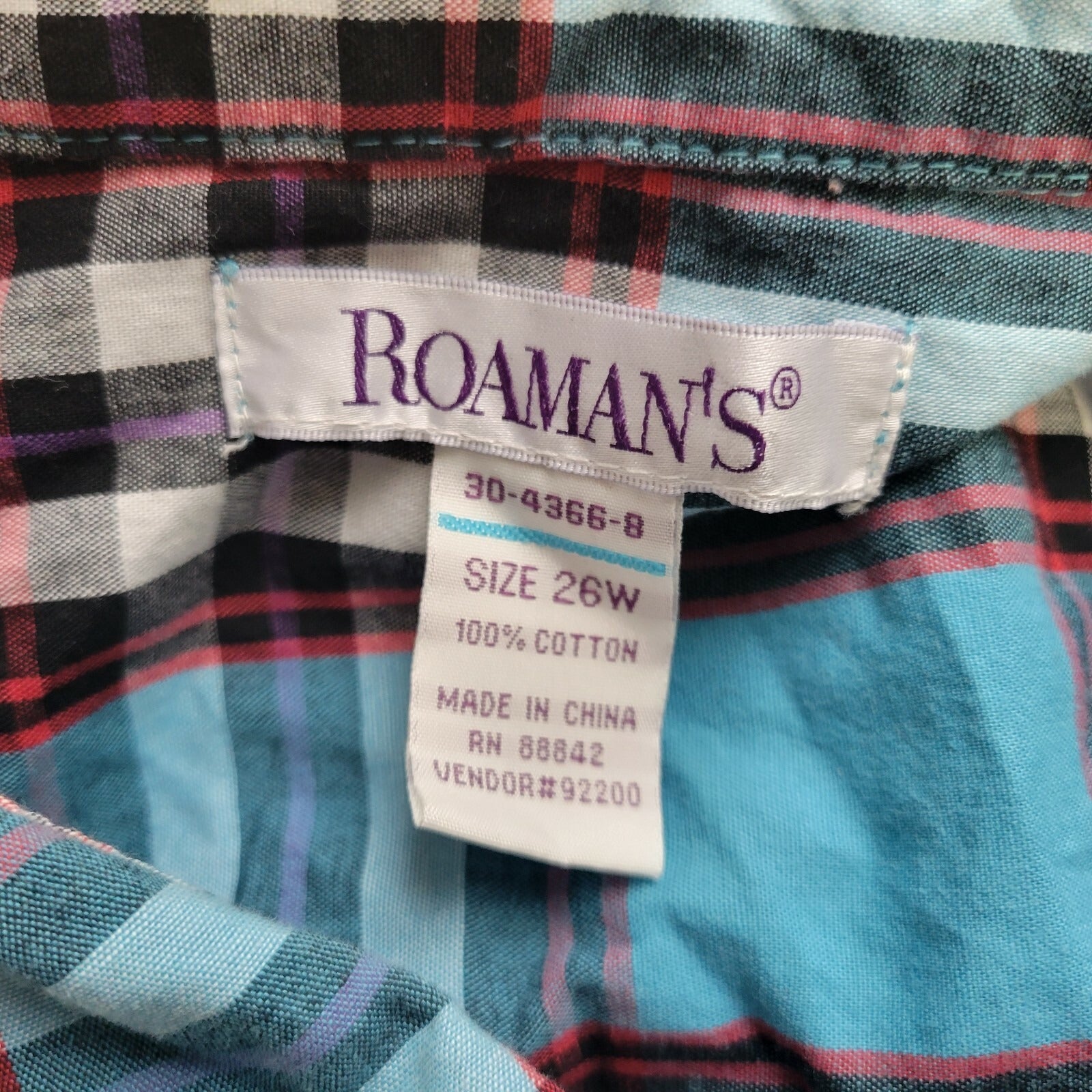 Roamans Women Shirt 26W Plus Button Up Long Sleeve Collared Blue Plaid Pockets