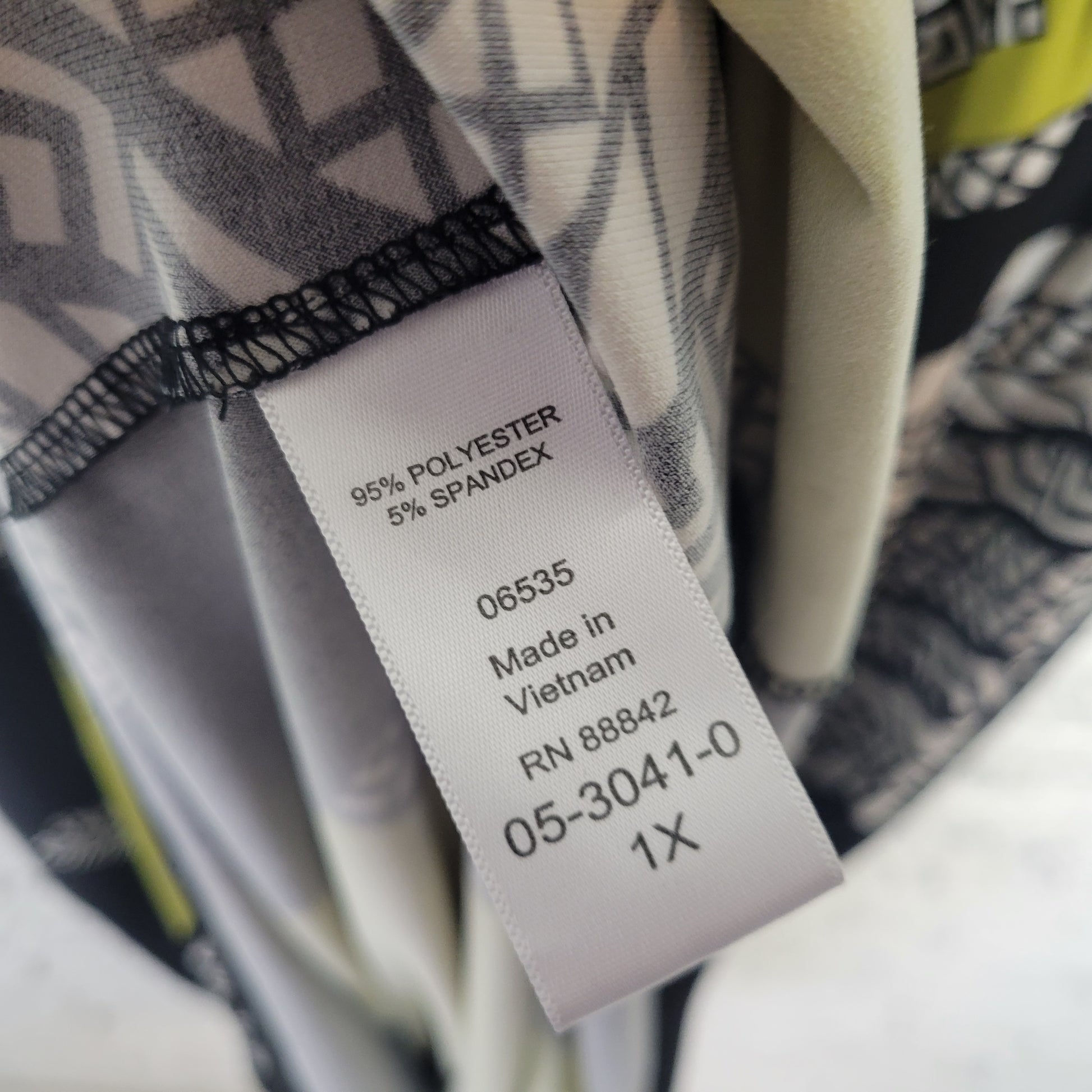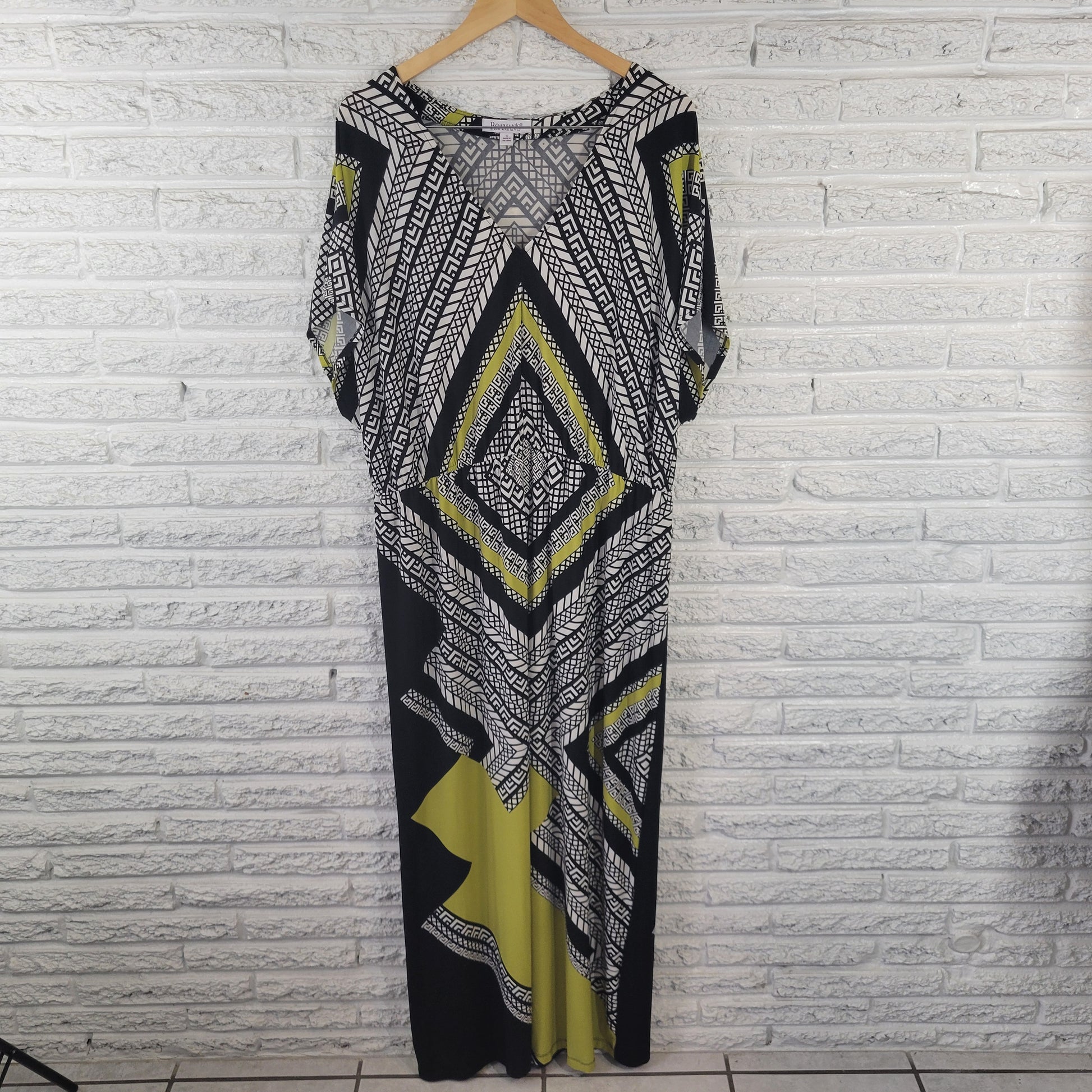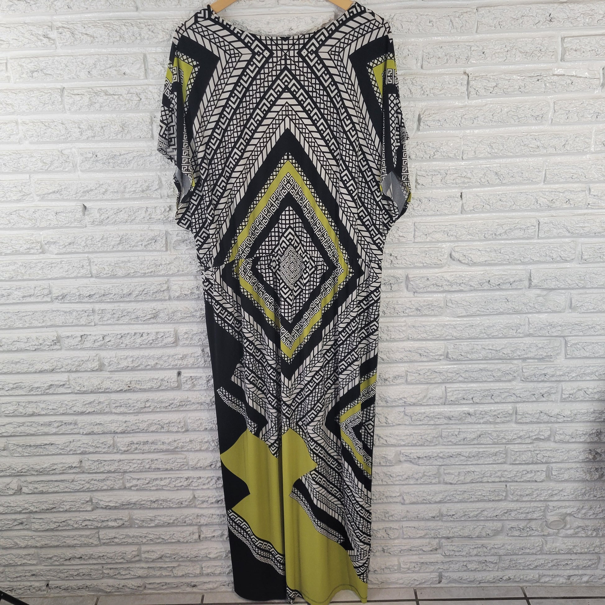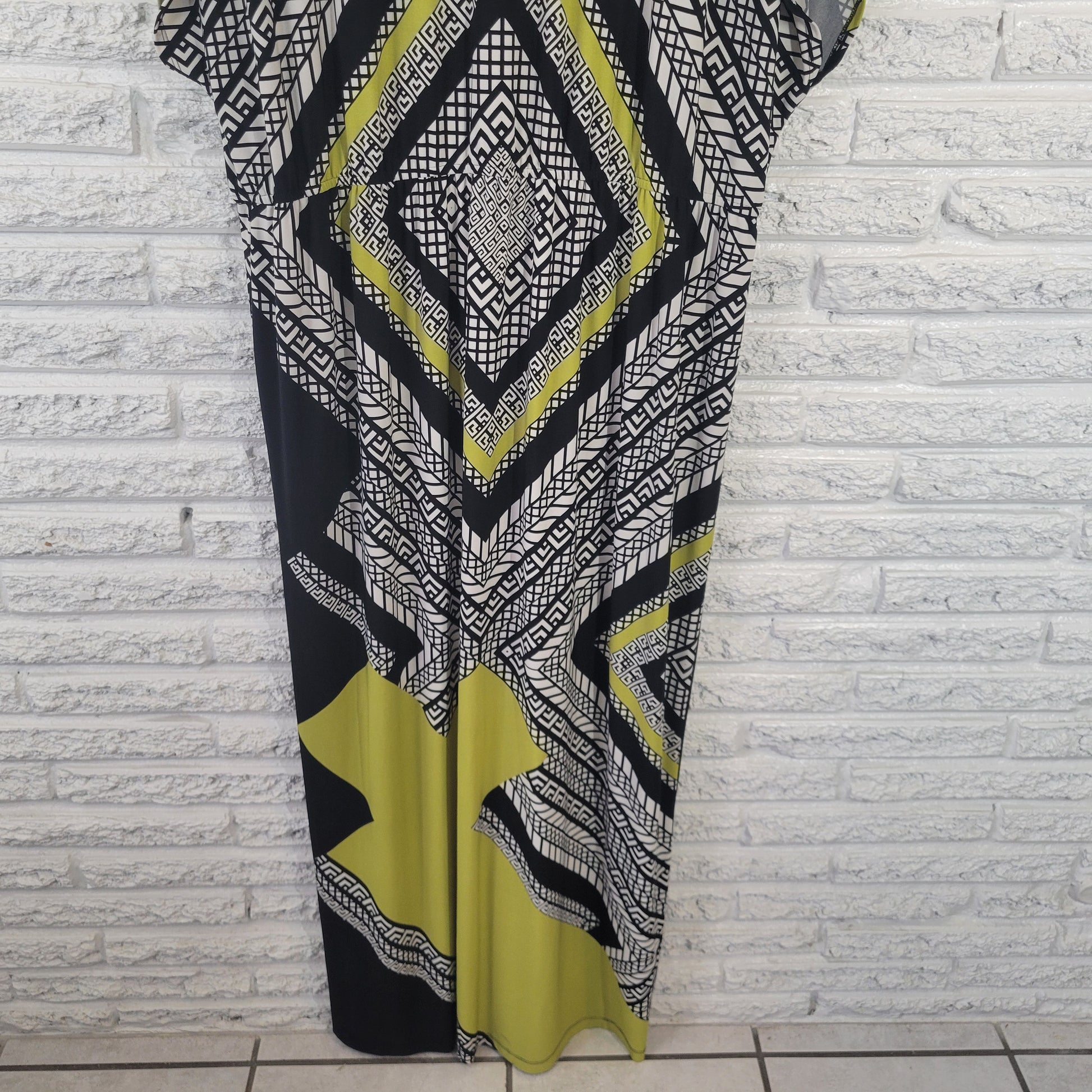 Roamans Womens Dress 1X Cap Sleeve Black Green Geometric Maxi GEI30XE