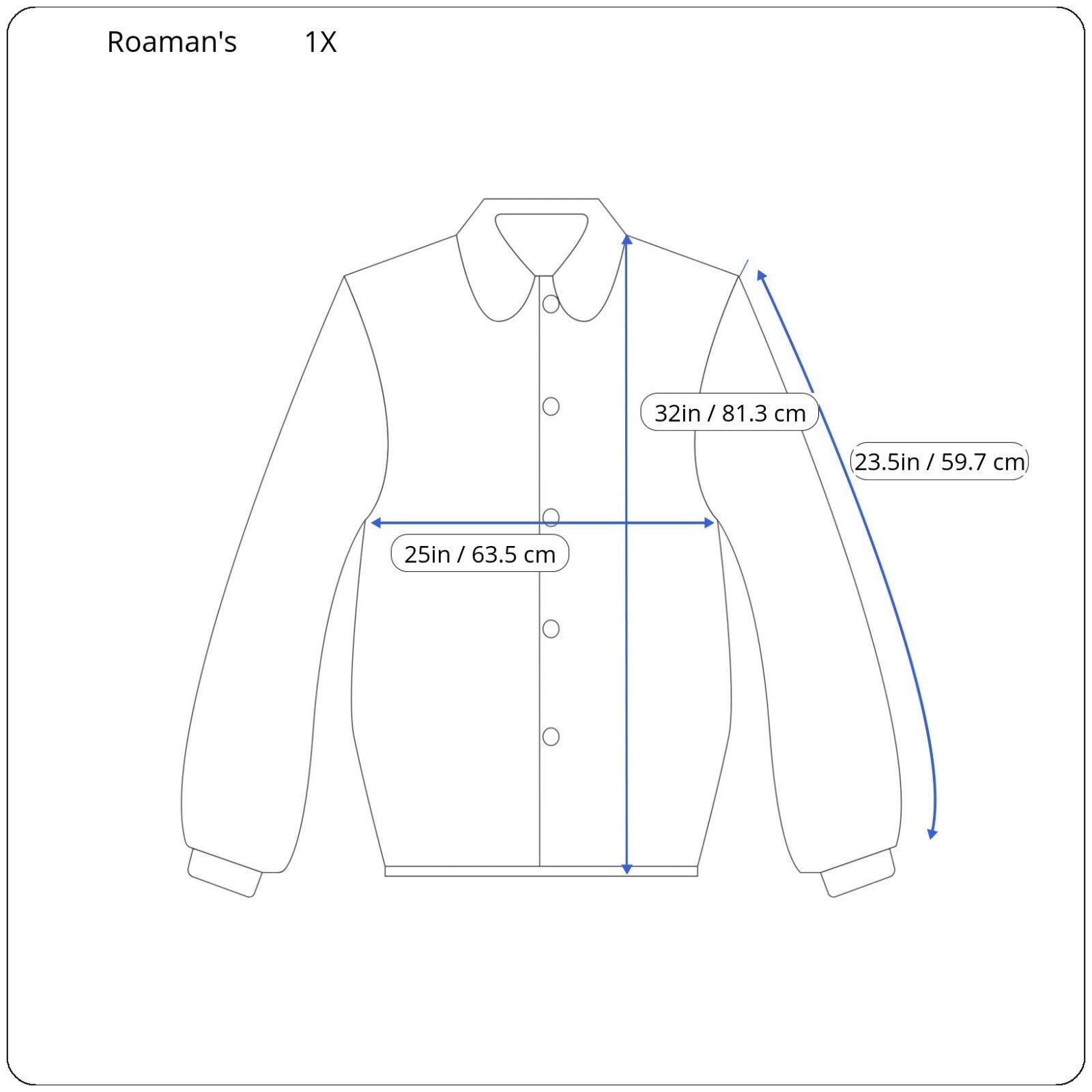 This Roaman's women's shirt in size 1X is perfect for any casual occasion. The brown striped pattern and collared neckline give it a classic touch, while the long sleeves and button closure make it functional for any season. Made from a comfortable cotton blend fabric, this woven button-up is a basic addition to any wardrobe. The shirt fits regular and is a plus size, making it suitable for any woman. Suitable for any season, it is a versatile piece that can be dressed up or down.