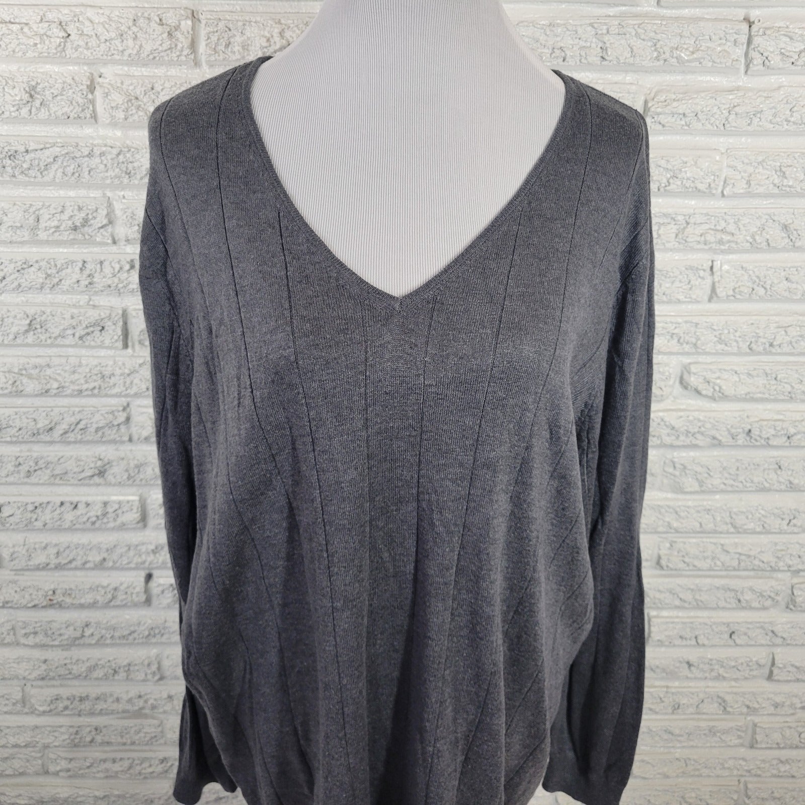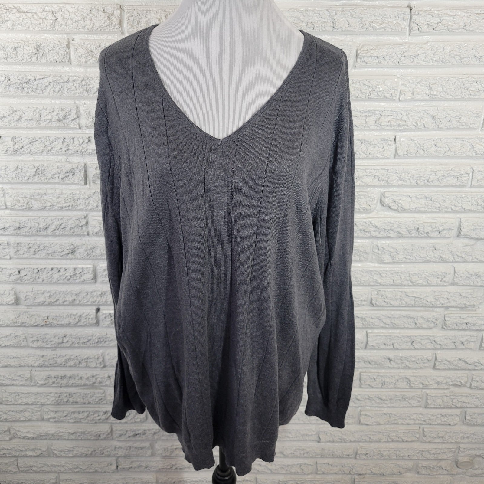 Roamans Womens Sweater 2X 26 28 Plus Tunic Gray Lightweight Acrylic Nylon Office