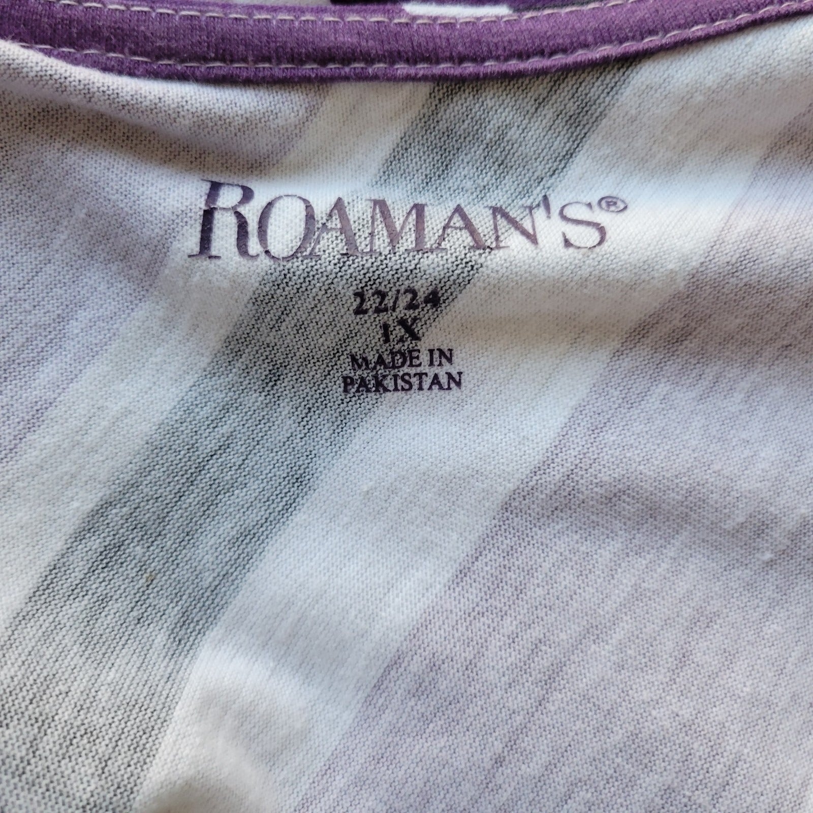 Roamans Womens Top 1X 22 24 Plus Tunic Purple Black Stripe Comfy Cotton Blend