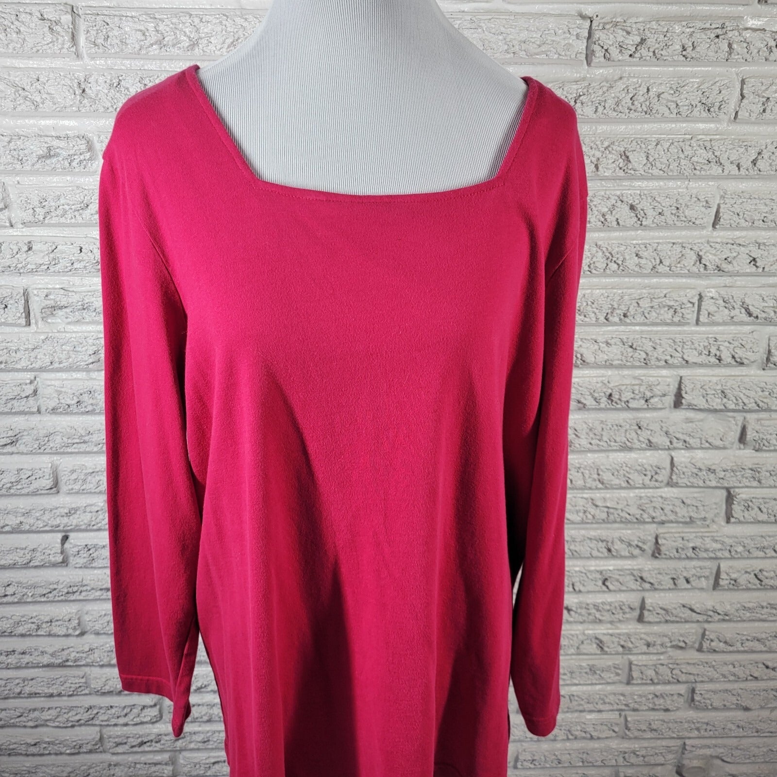 Roamans Womens Top 1X Plus Long Sleeve Pink Cotton Comfy Casual Square Neck