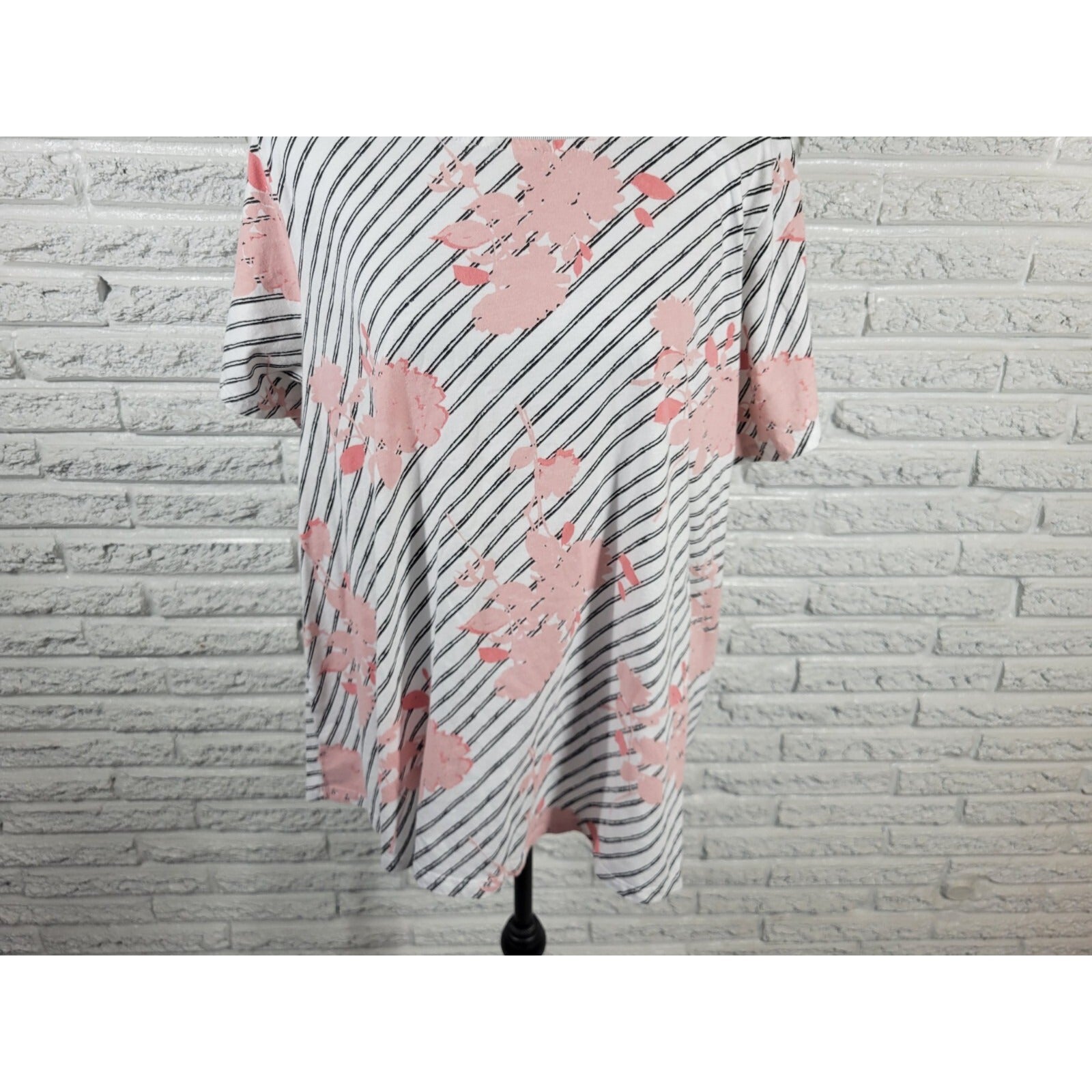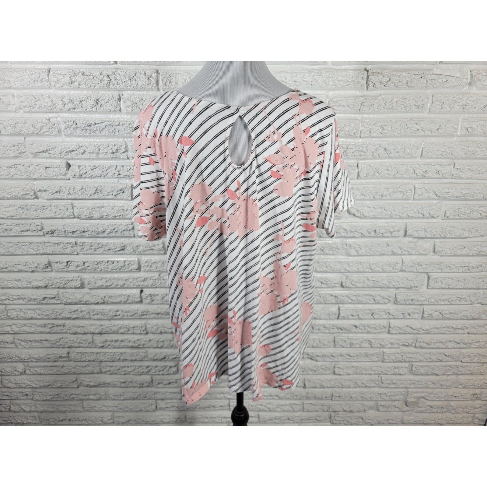 Roamans Womens Top 1X Plus Tee Short Sleeve Pink Floral Cotton Back Keyhole