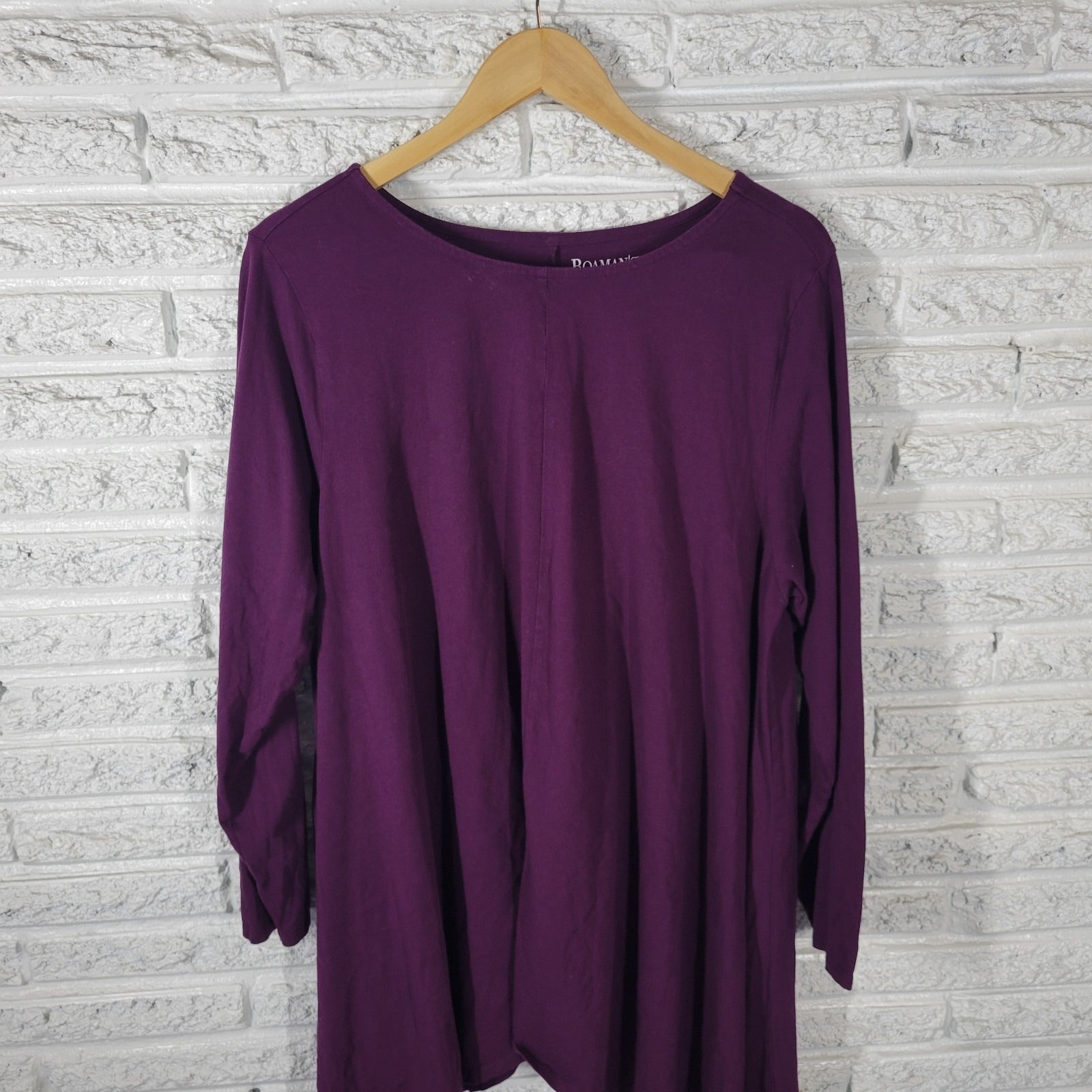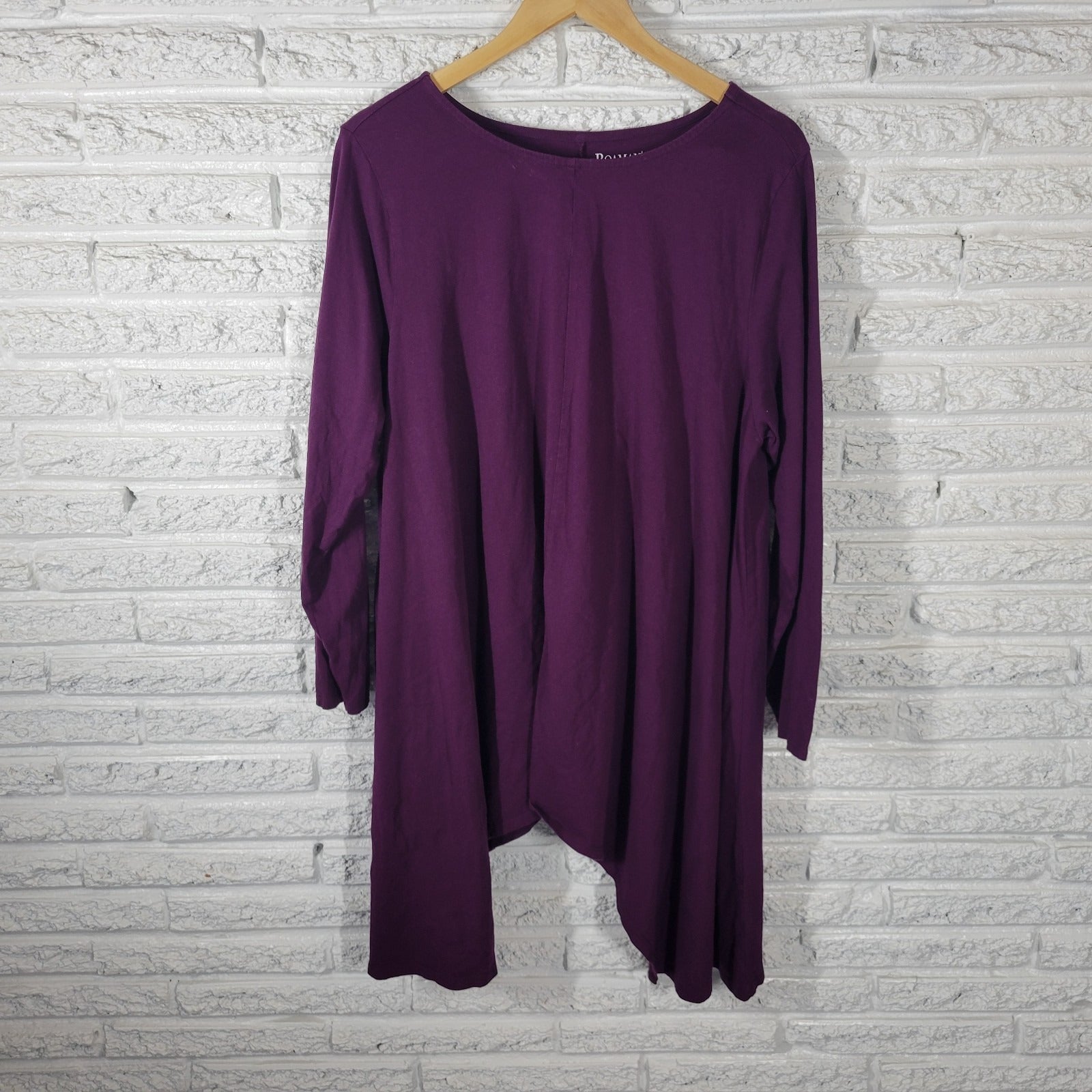 Roamans Womens Top 1X Plus Tunic Purple Cotton 3/4 Sleeve Asymmetric Comfy
