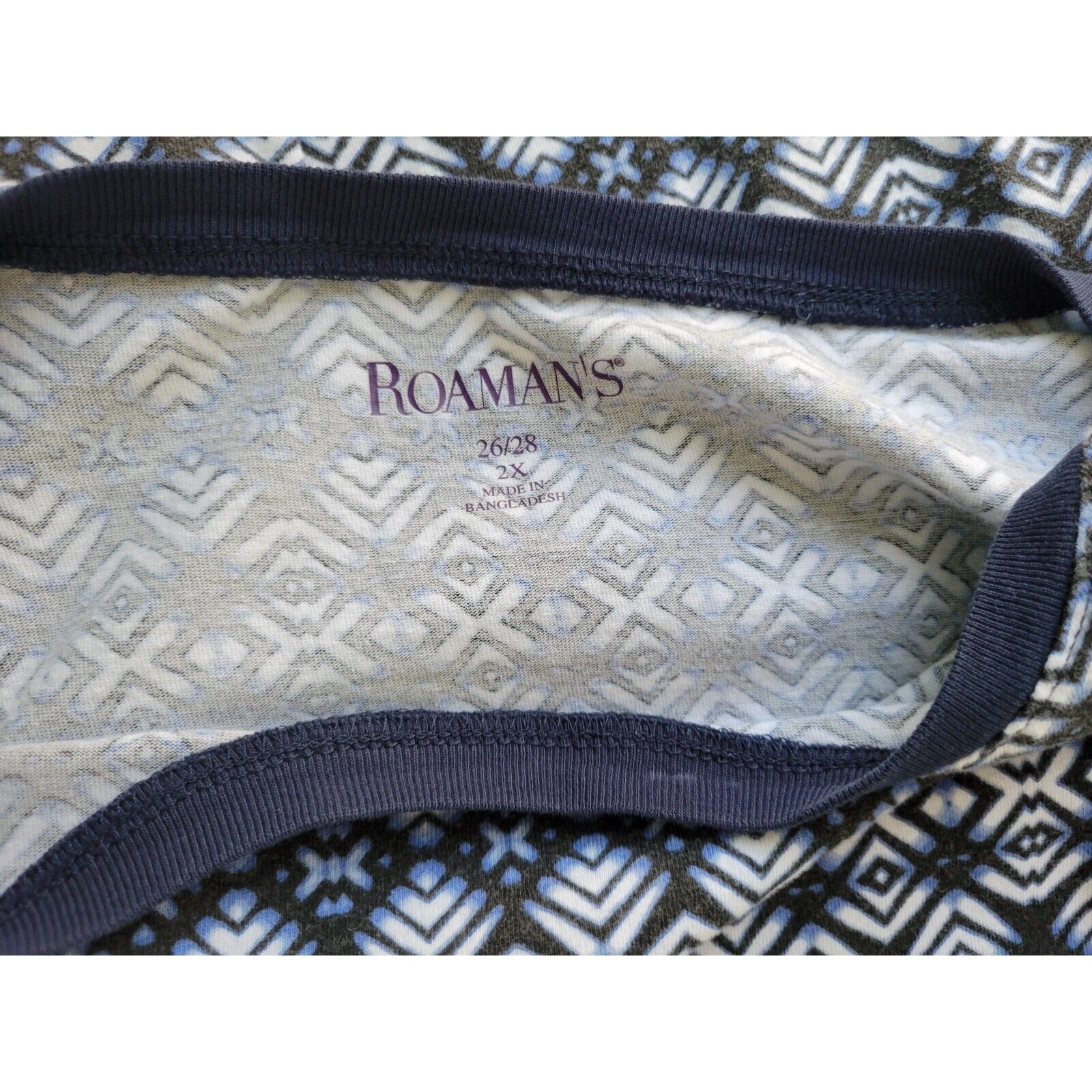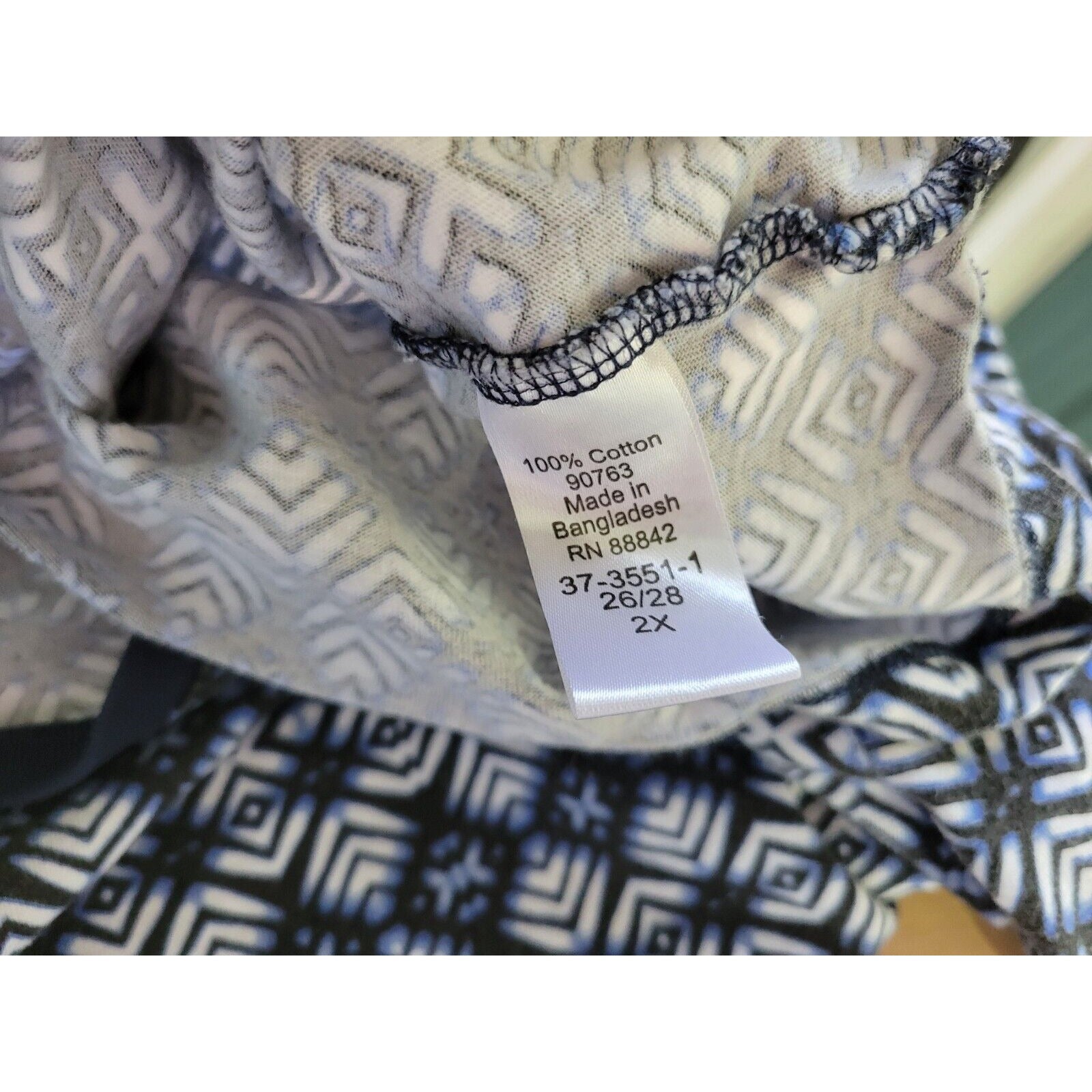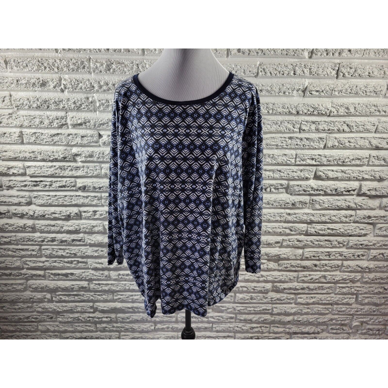 Roamans Womens Top 2X Plus Tunic 3/4 Sleeve Blue Geometric Pullover Cotton