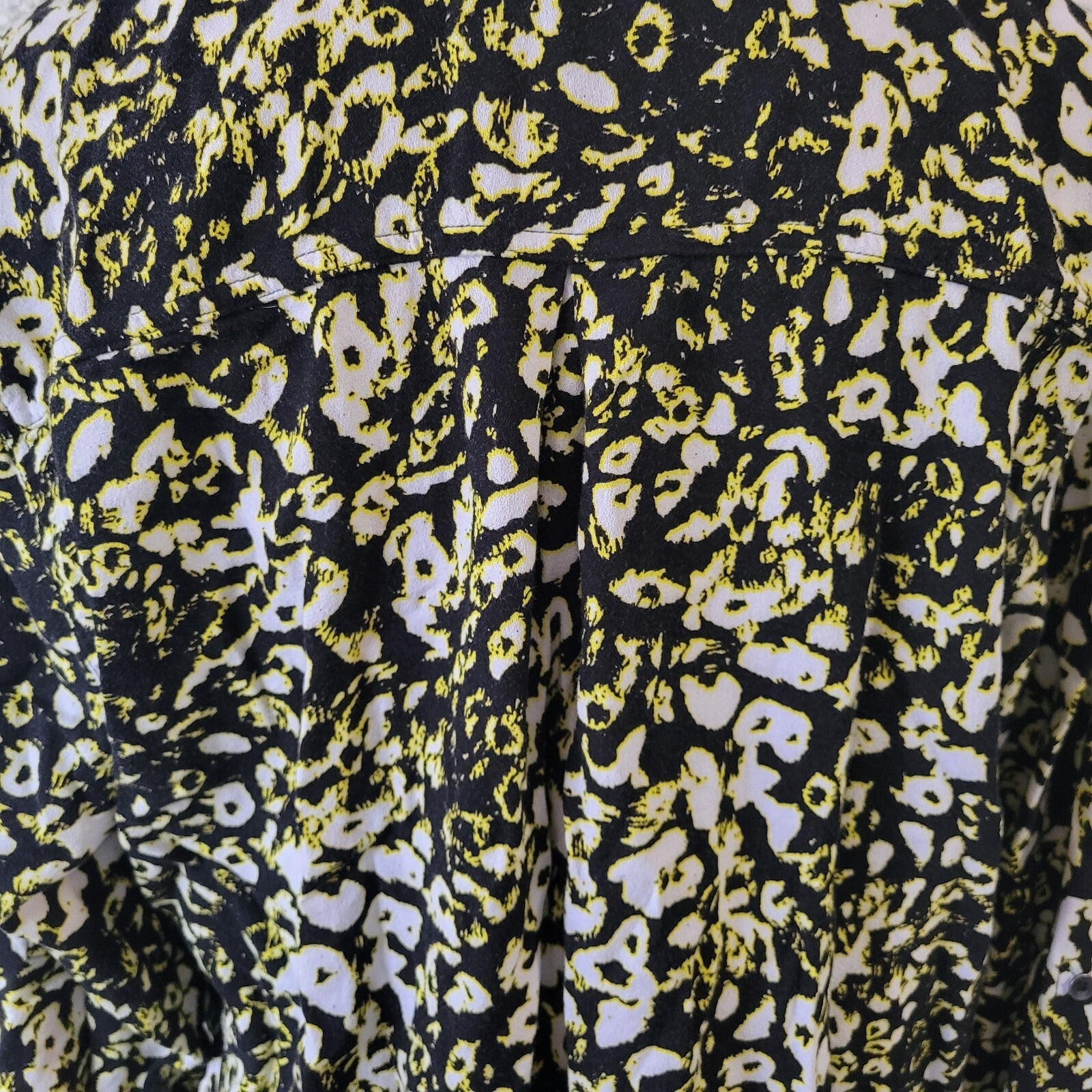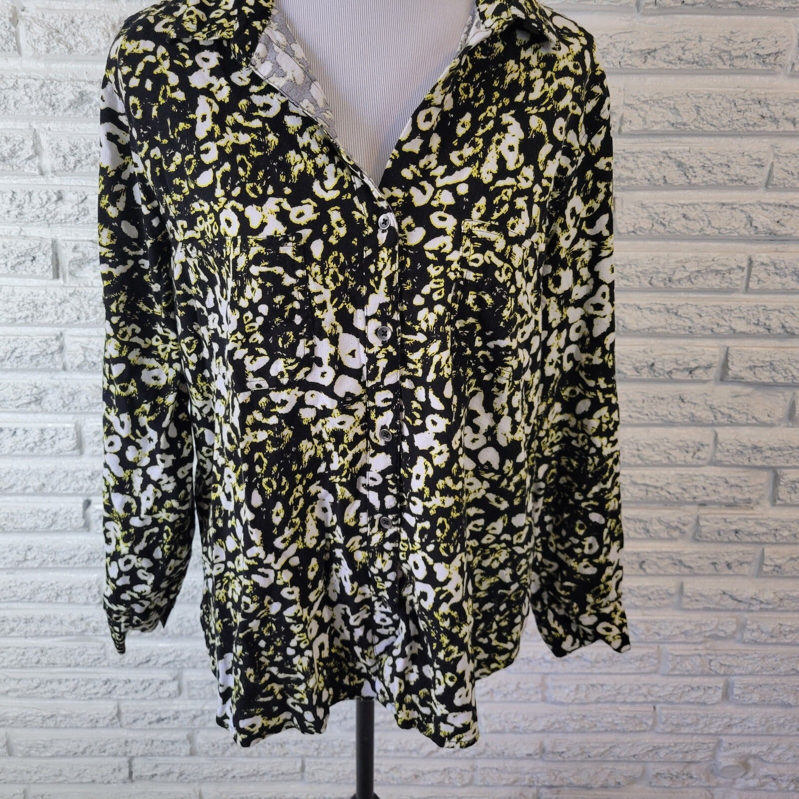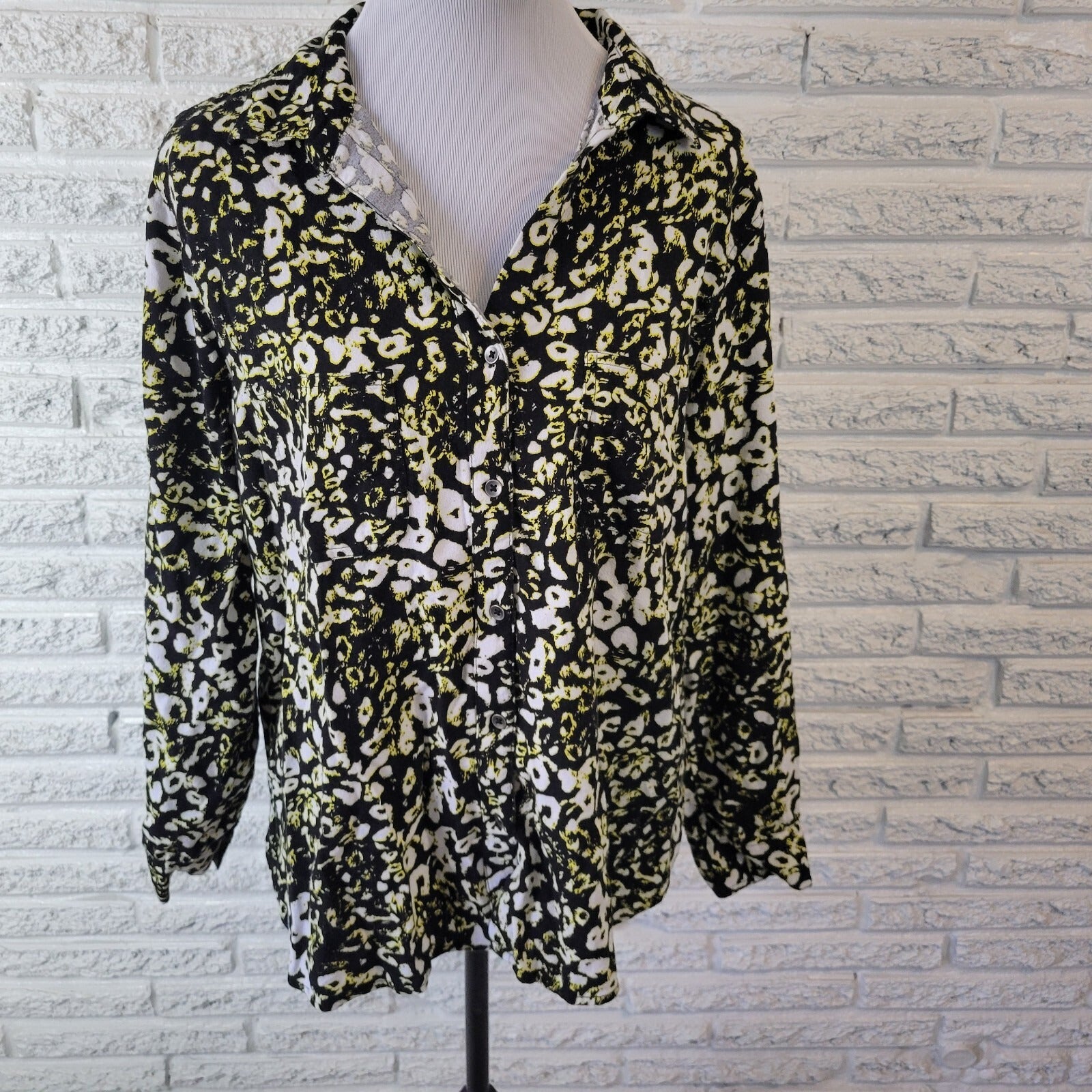 Rock Republic Women Top Extra Large XL Roll Tab Sleeve Black Animal Print Office