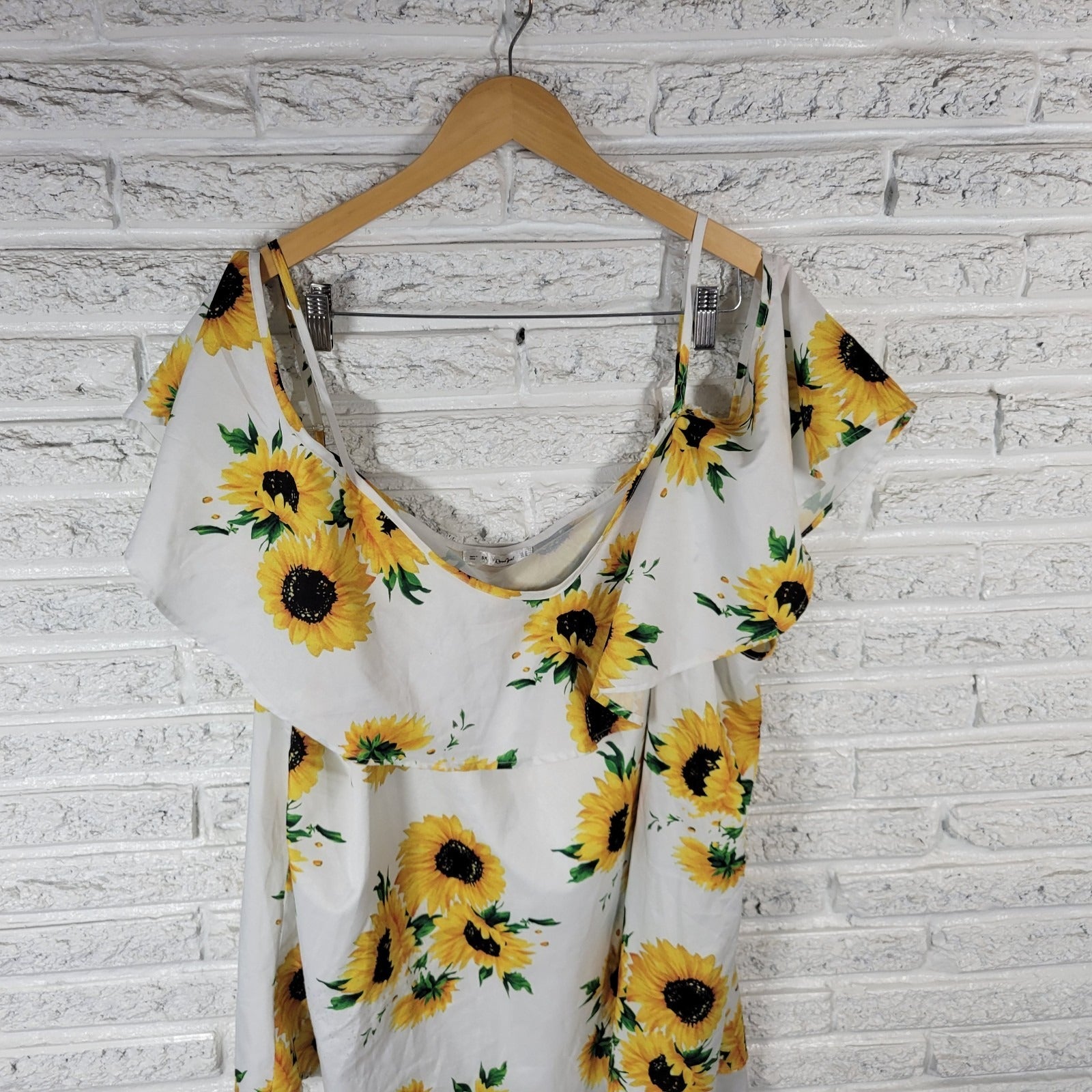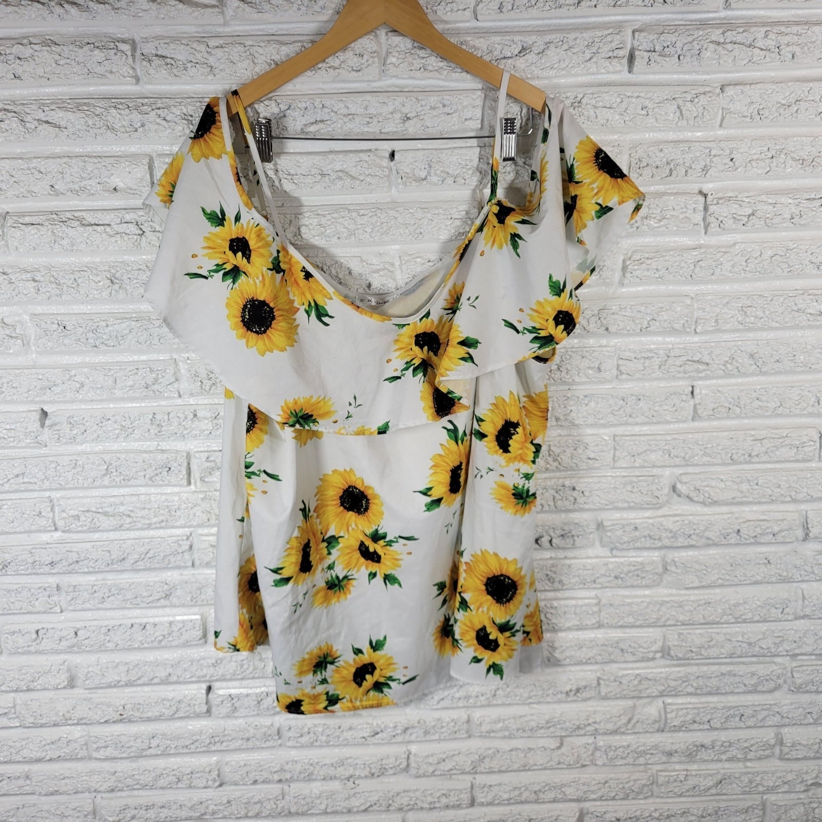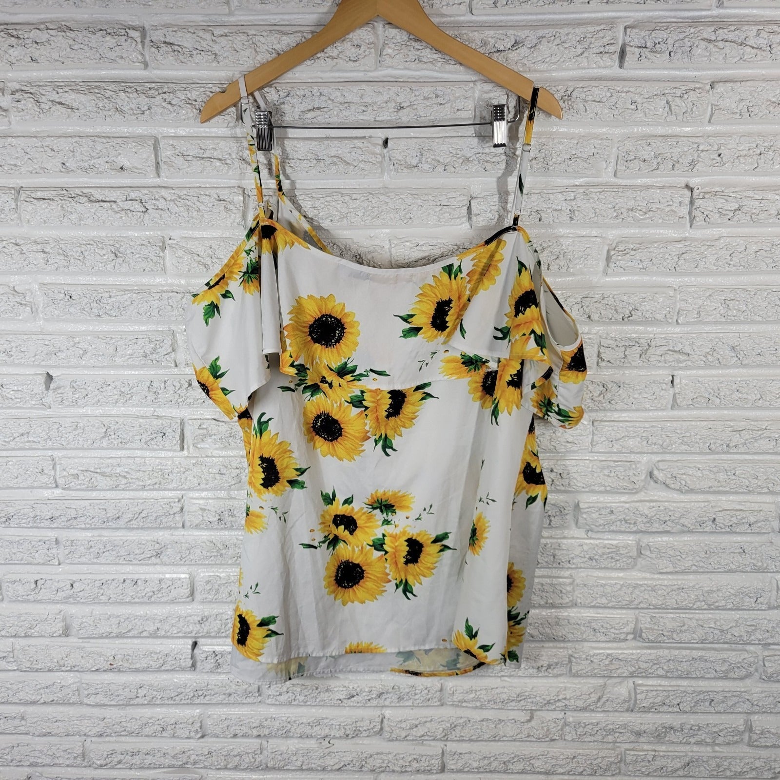 Rose Gal Womens Top 5X Plus Cold Shoulder Yellow Sunflowers Adjustable Straps