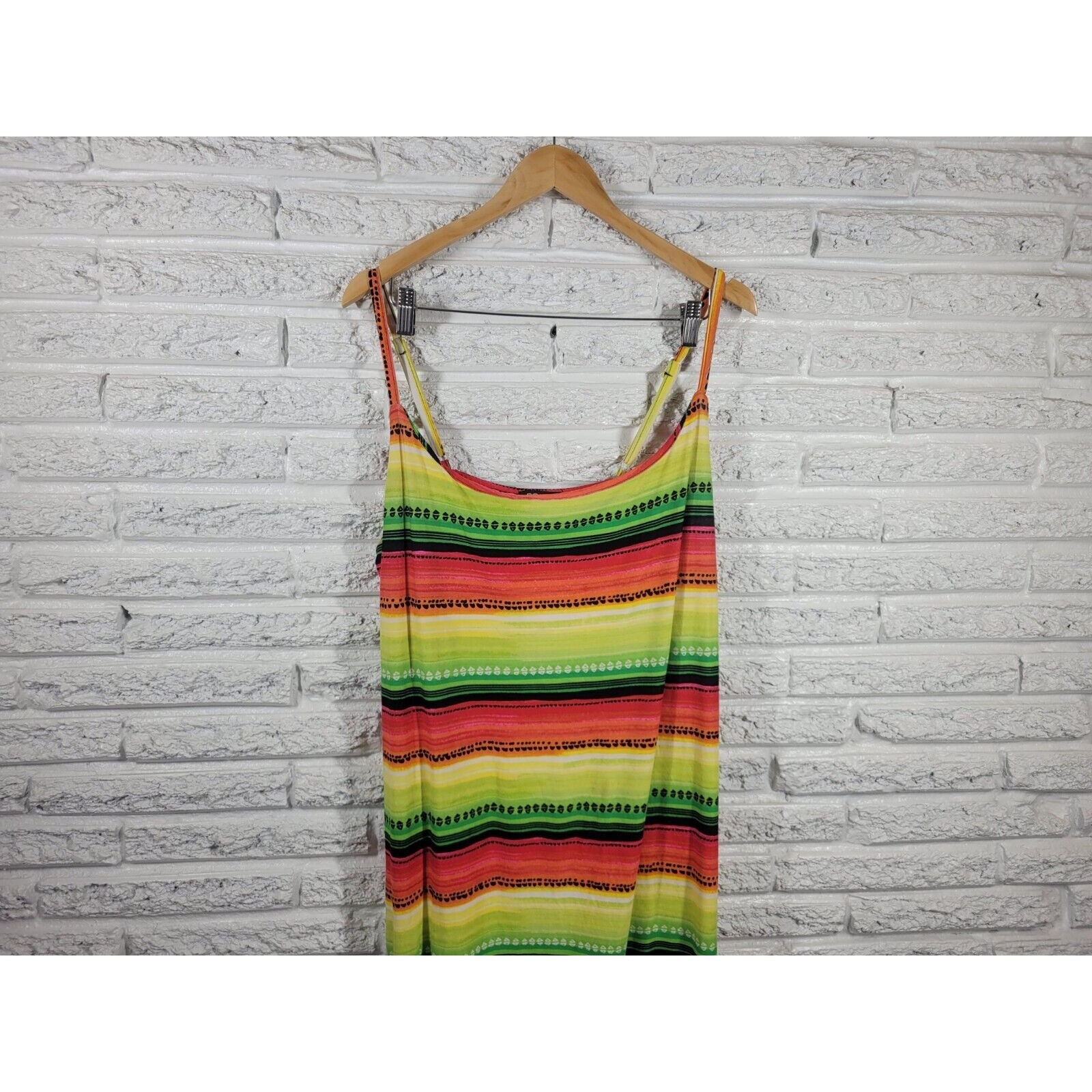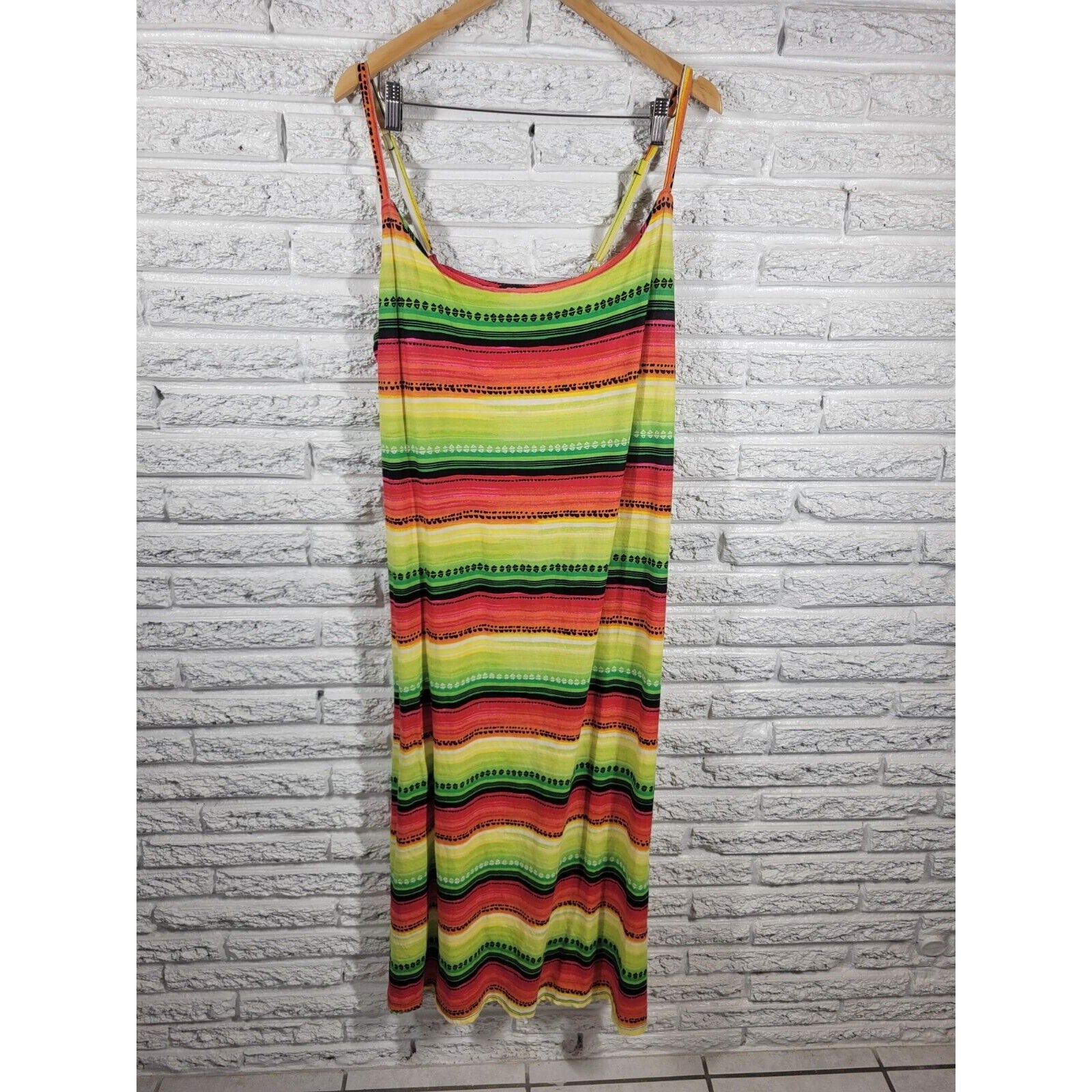 Elevate your wardrobe with this stunning Rouge women's dress in a beautiful fluorescent red color. This dress features a square neckline, sleeveless design, and adjustable spaghetti straps for a comfortable fit. The dress is made of a polyester blend material that stretches to fit plus-size women (3X) and is machine washable for easy maintenance. Perfect for casual occasions, this midi slip dress has a striped pattern and a pullover closure. It is suitable for all seasons, including winter, summer, fall, and spring, and is a must-have addition to any fashion-forward woman's wardrobe. This dress is perfect for women who want to look stylish and feel comfortable.