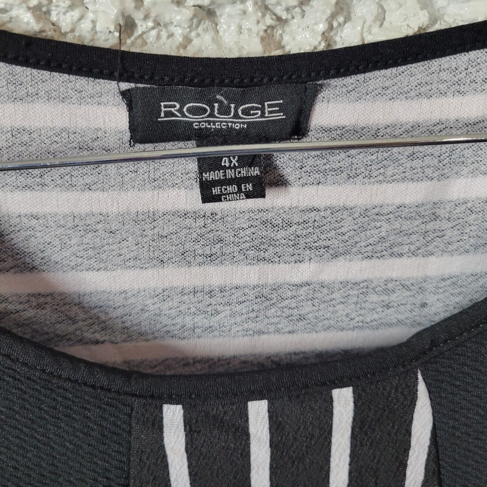 This Rouge dress is perfect for any casual or business occasion. The black/white stripe design adds a touch of sophistication while the lightweight poly blend material makes it comfortable to wear in any season. The dress features a round neckline, sleeveless design, and a pullover closure. The short dress length and shift/mini style make it a versatile addition to any wardrobe. It is machine washable and easy to care for, making it a practical choice for any busy woman. This dress is available in size 4X.