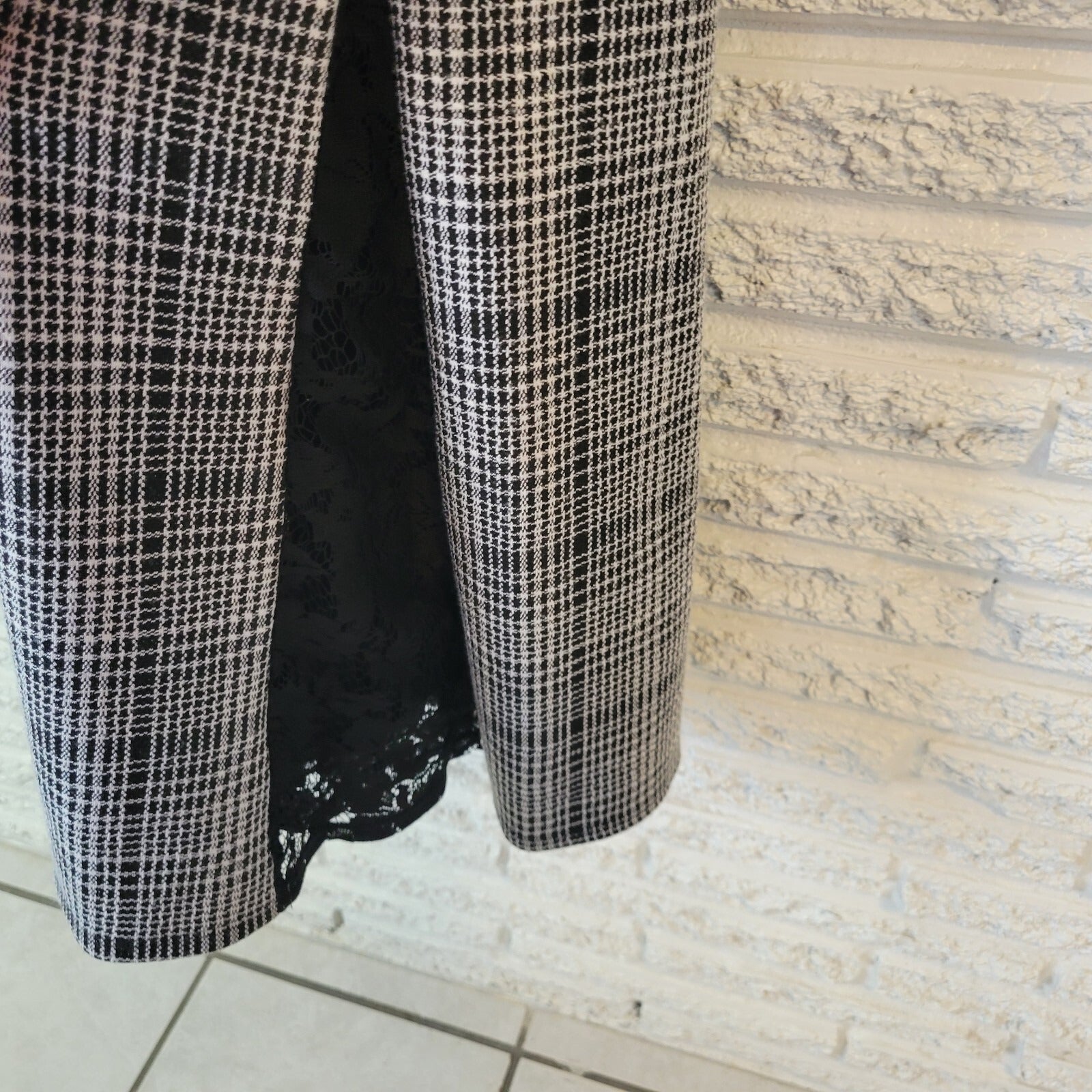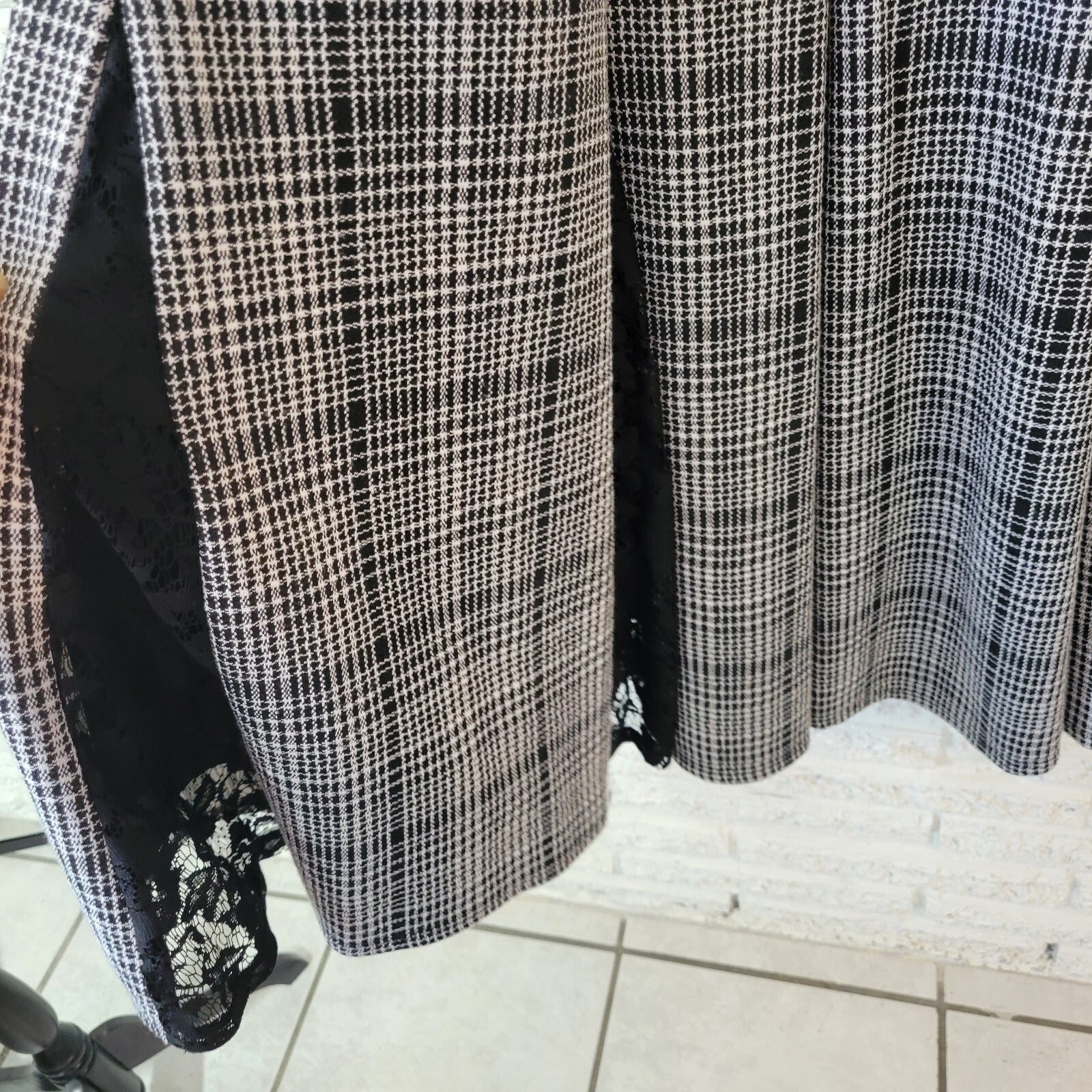 Roz Ali Womens Dress 18 Plus Sleeveless Fit Flare Black Plaid Lace Panels Zip
