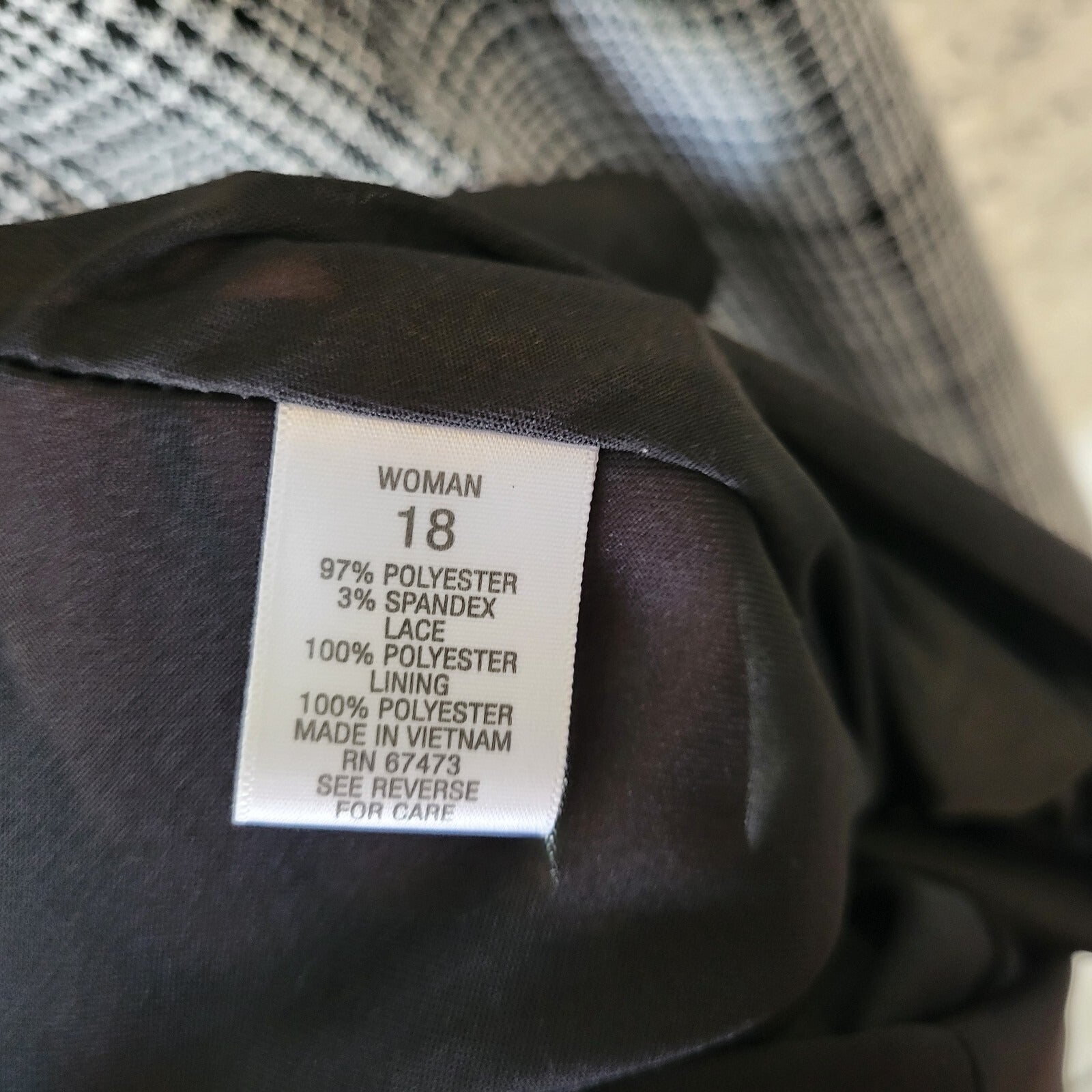 The Roz & Ali Women's Dress in size 18 features a sleeveless fit and flare style with black plaid lace panels. The dress includes a zip closure and pleated accents, making it suitable for both parties and business occasions. Made from a polyester blend, this knee-length dress is designed for all seasons and is recommended for hand wash care. Perfect for those looking for a versatile and stylish option in their wardrobe.