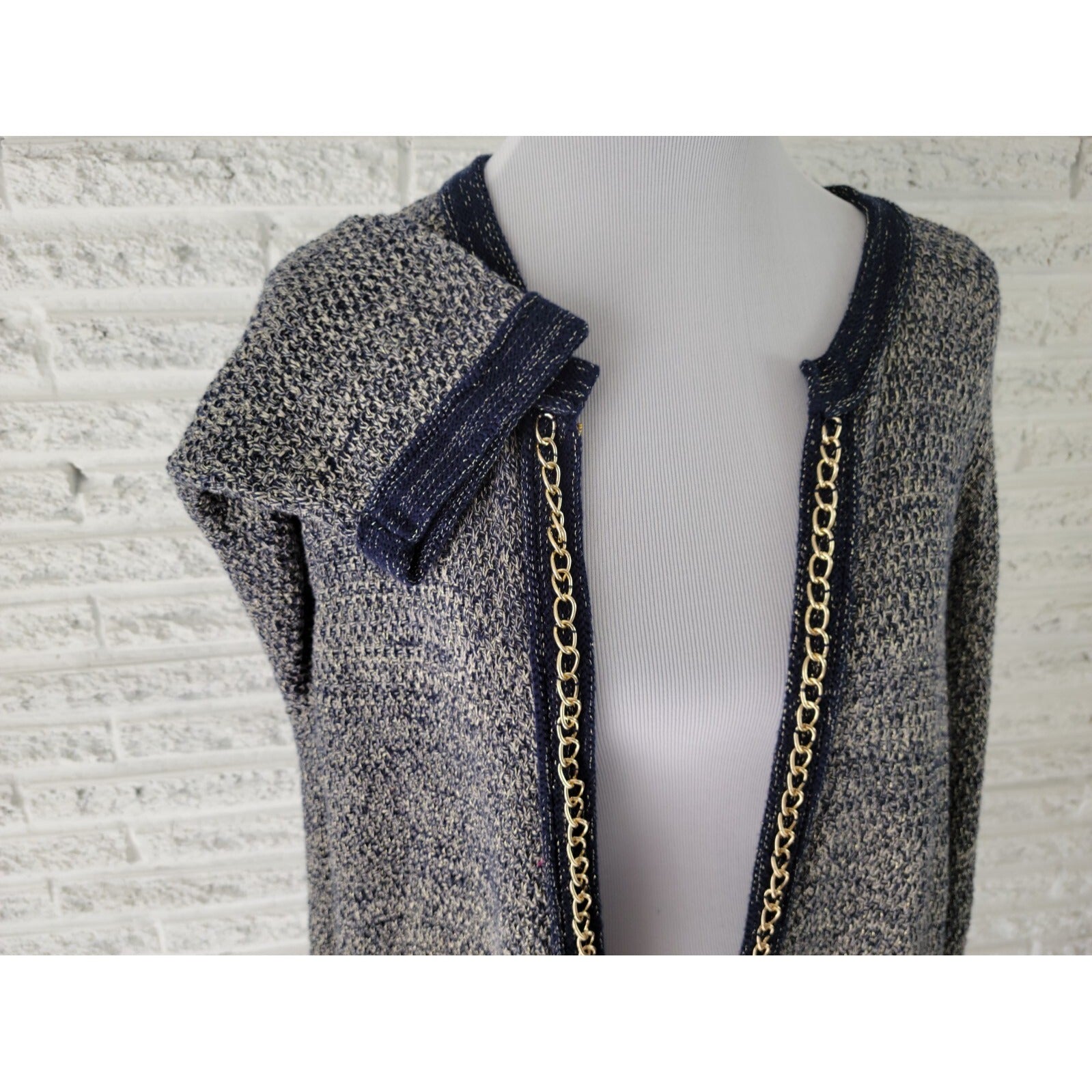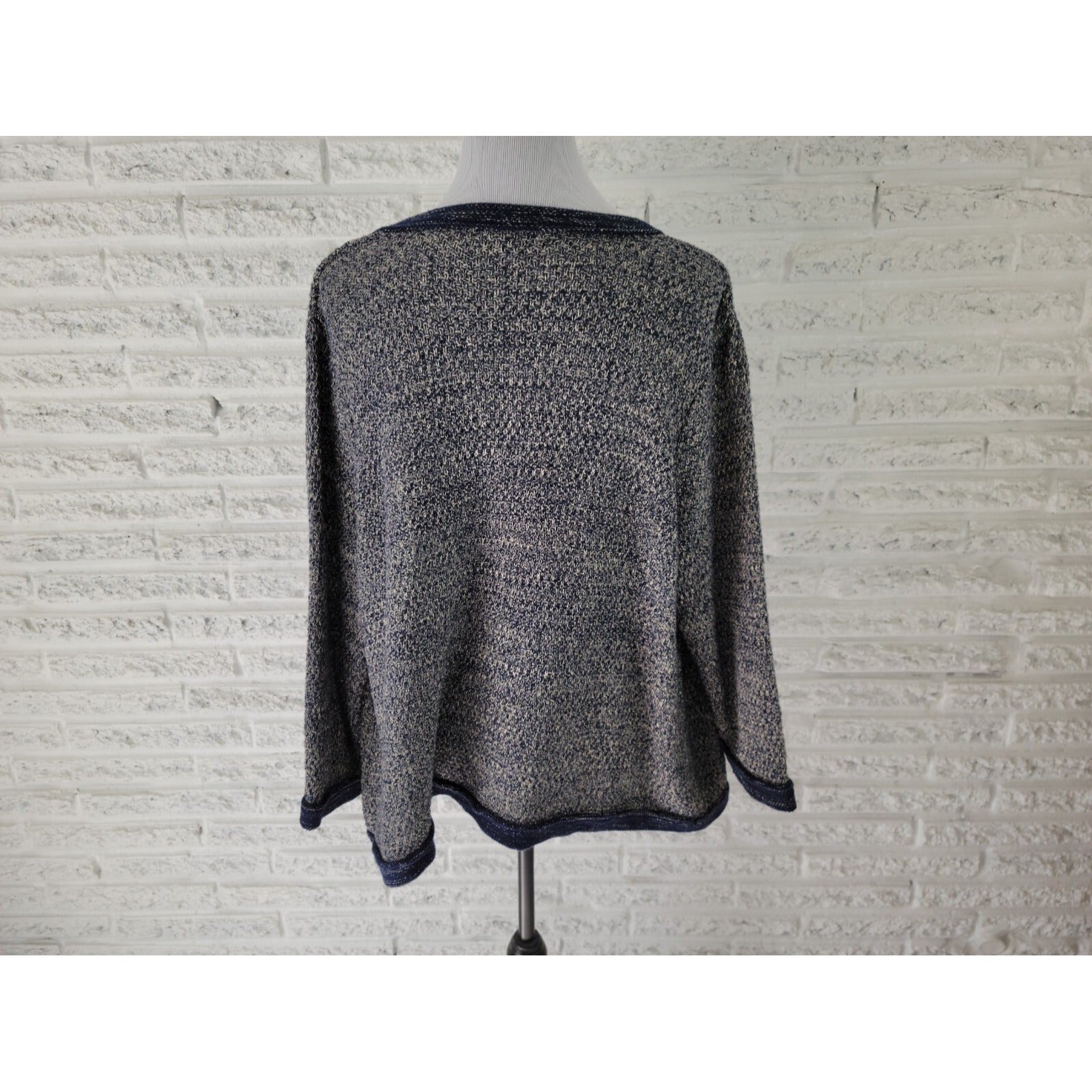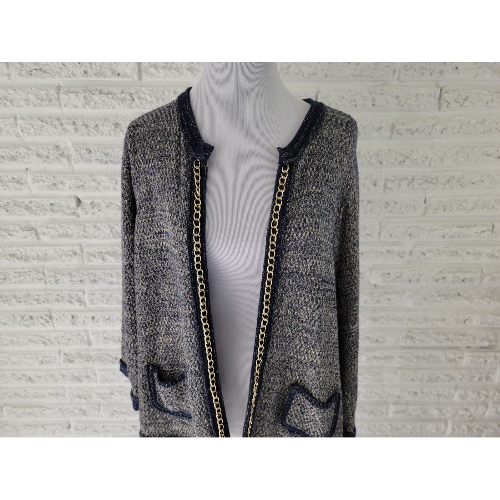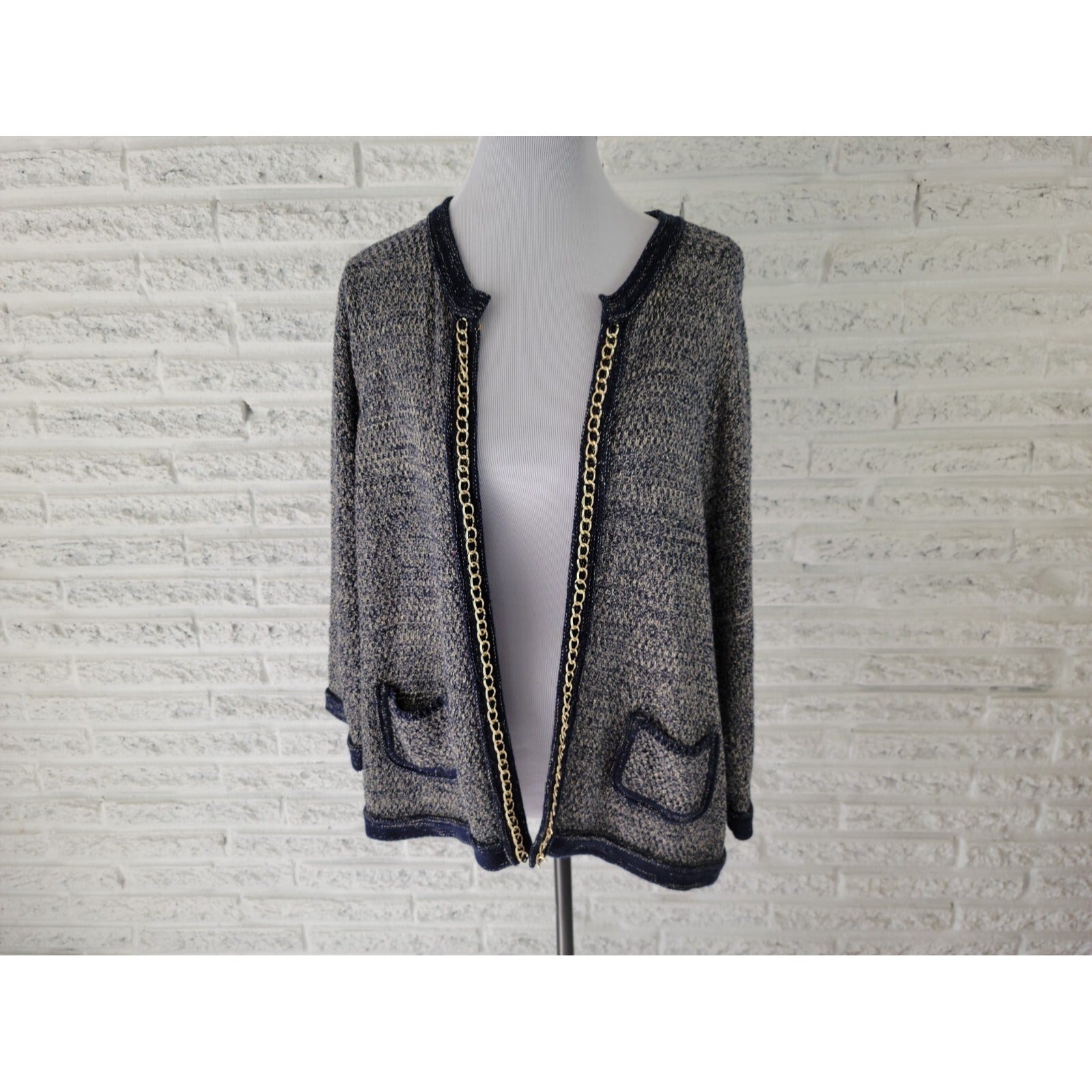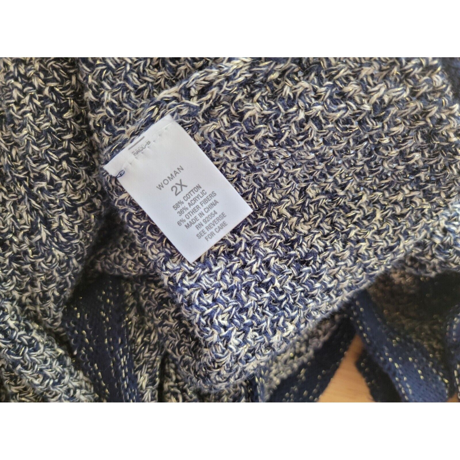 Roz Ali Womens Sweater 2X Plus Cardigan Blue Embellished Metallic Thread Chain