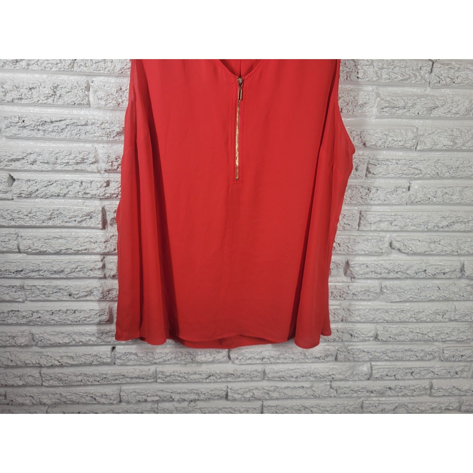 This Roz Ali women's top is a stylish and versatile addition to your wardrobe. With a solid pattern and red color, it features a V-neckline, sleeveless design, and a quarter zip closure. Perfect for both casual and business occasions, it is made of machine-washable polyester material and has a regular fit. This blouse is suitable for all seasons, including winter, summer, fall, and spring. It is available in size 3X, which is perfect for plus-size women.