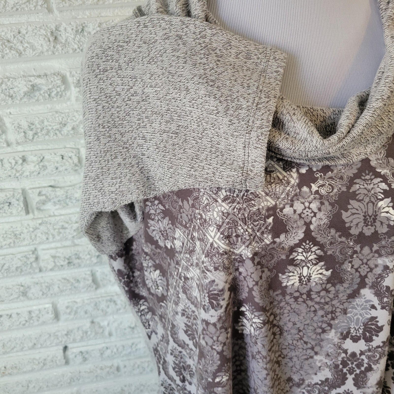 Ruby Rd Women Sweater 1X Plus 3/4 Sleeve Gray White Floral Cowl Soft Lightweight