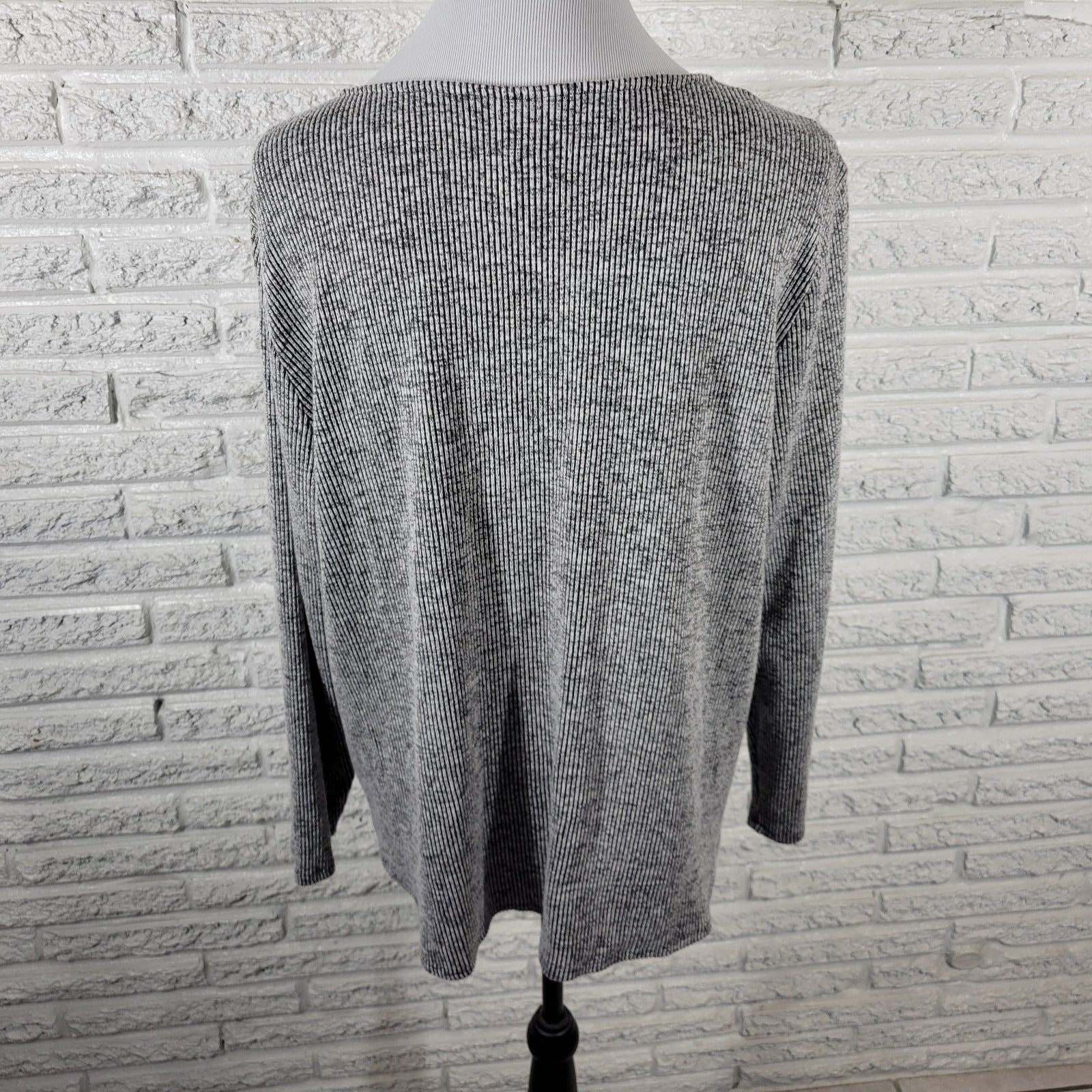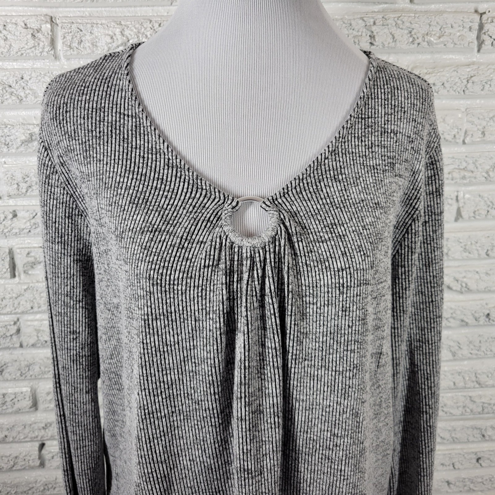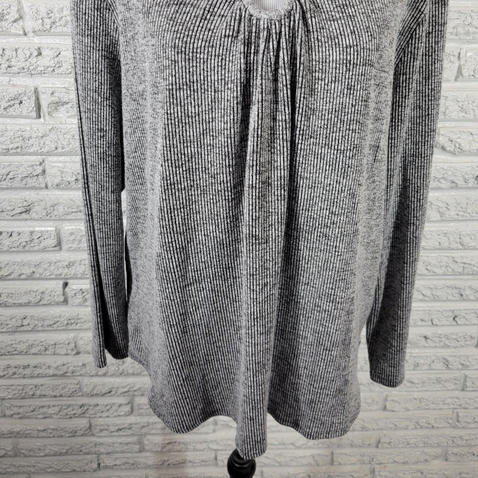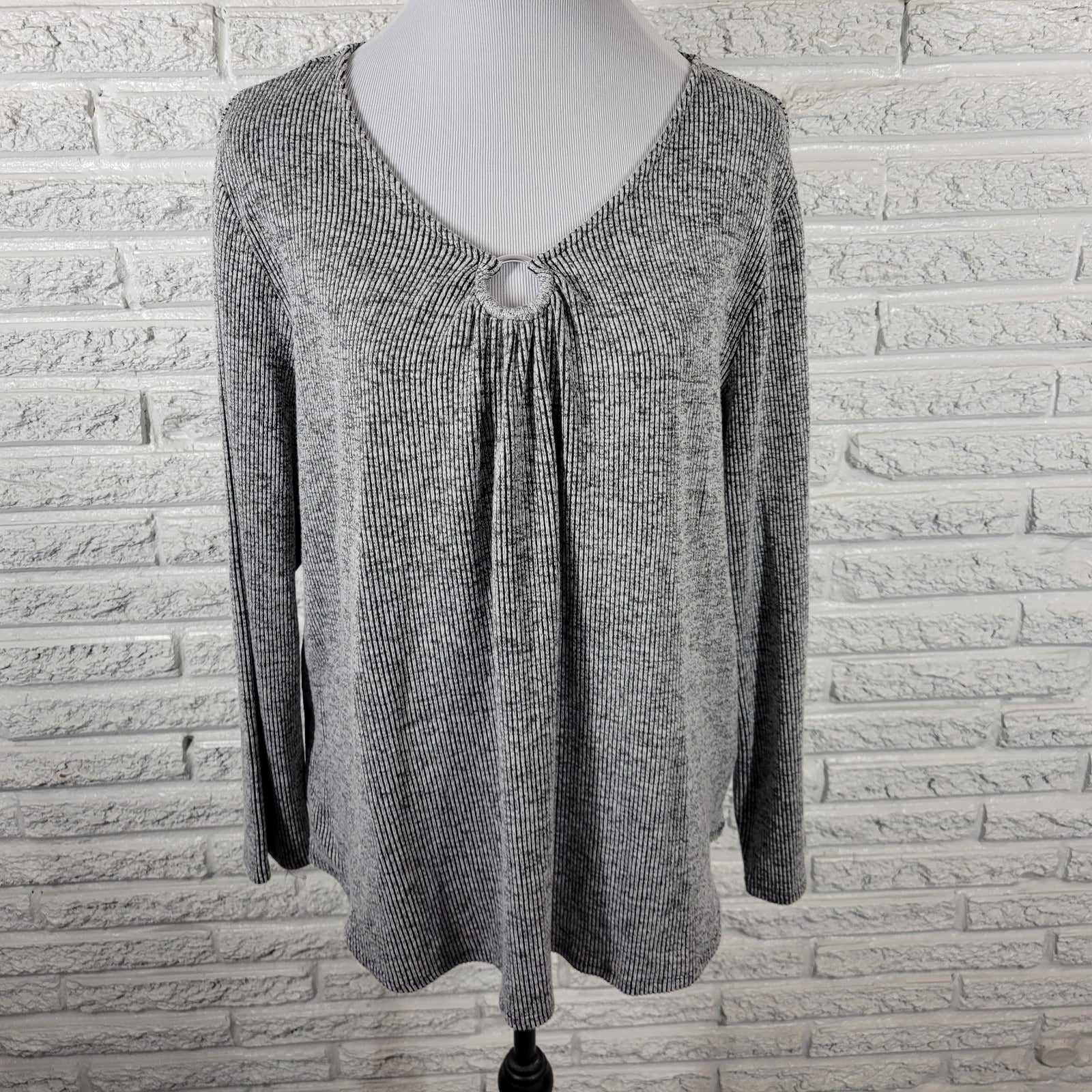 Ruby Rd Womens Sweater XL Long Sleeve Gray Ribbed Keyhole Casual Travel Comfy