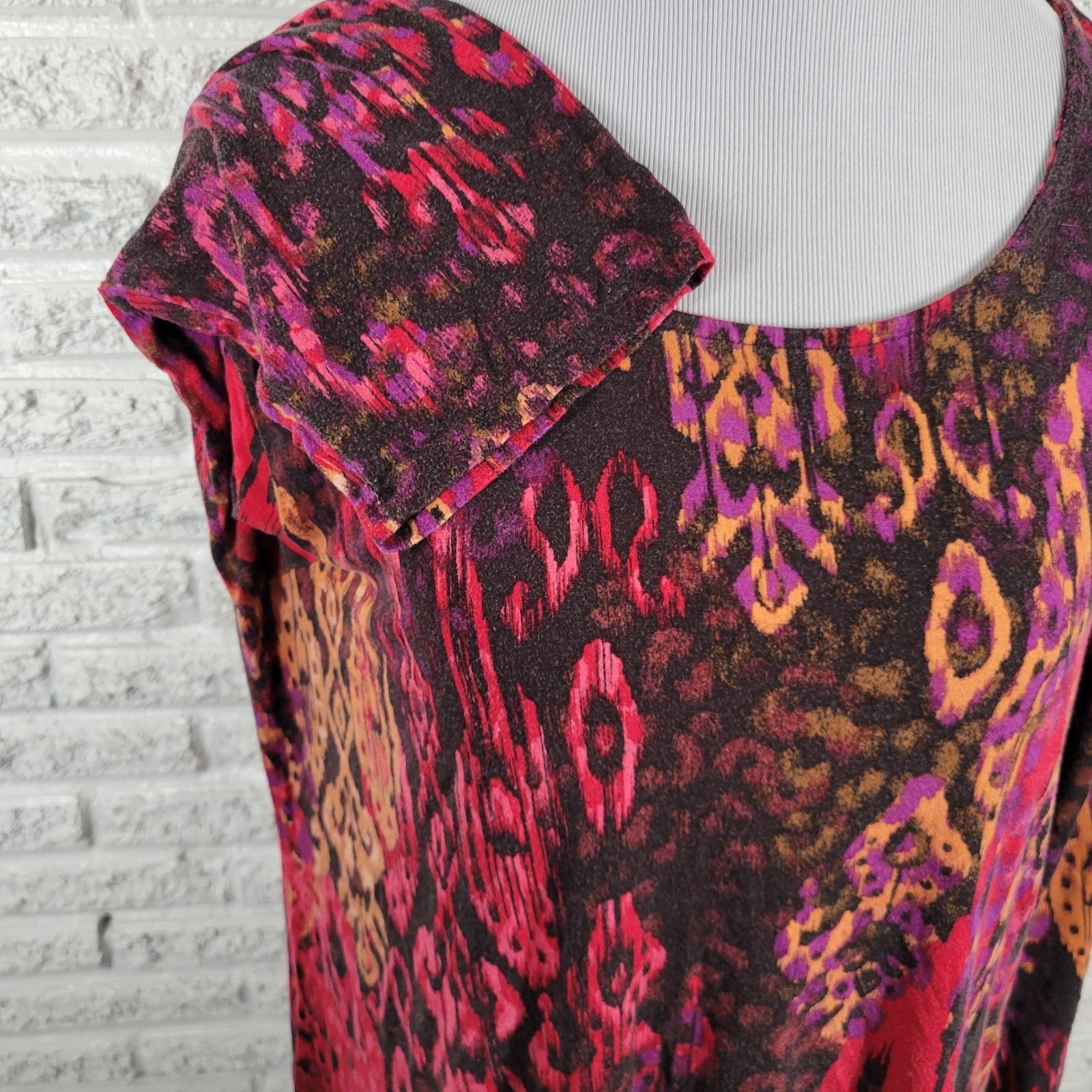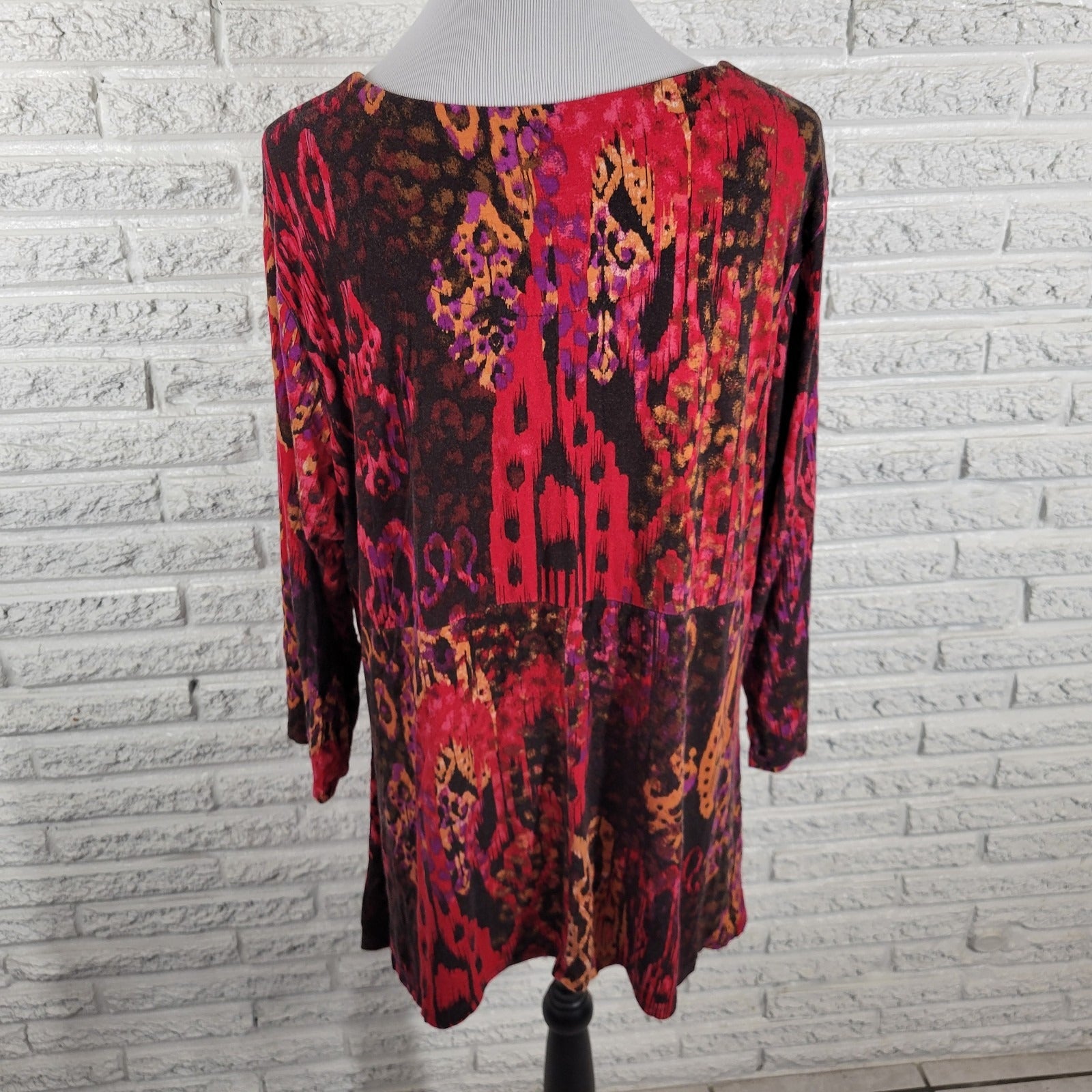 Ruby Rd Womens Top 1X Plus 3/4 Sleeve Pink Brown Watercolor Asymmetric Casual