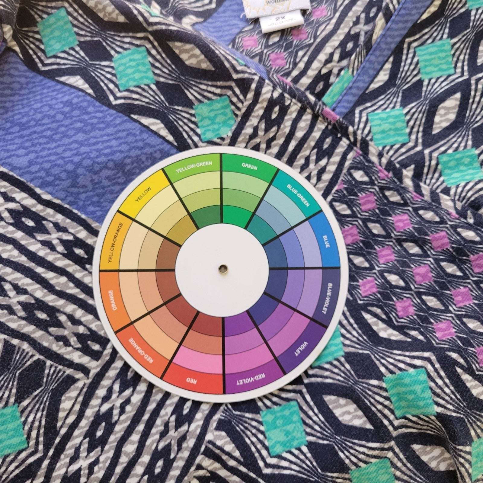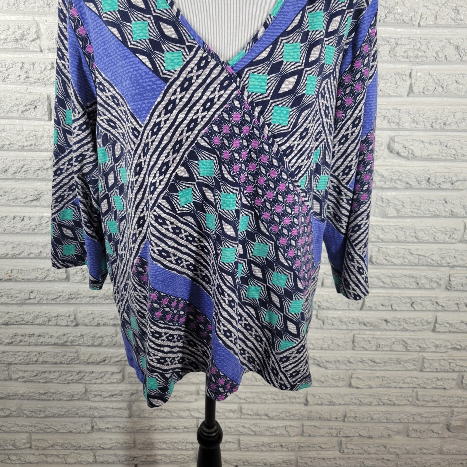 Ruby Rd Womens Top 2X Plus 3/4 Sleeve Blue Geometric Cotton Blend Casual Comfy