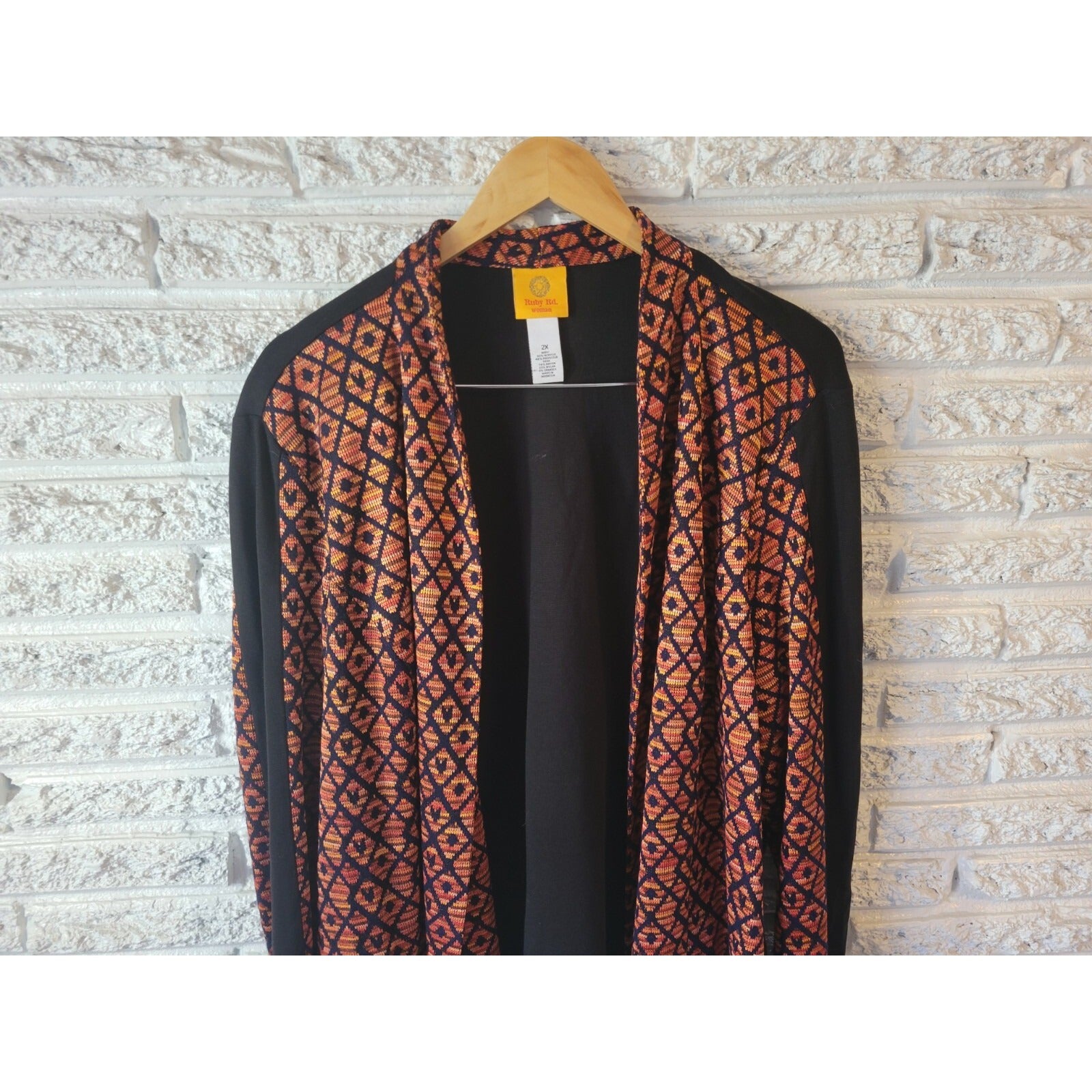 Ruby Rd Womens Top 2X Plus Shacket Jacket Open Geometric Knit Black Casual