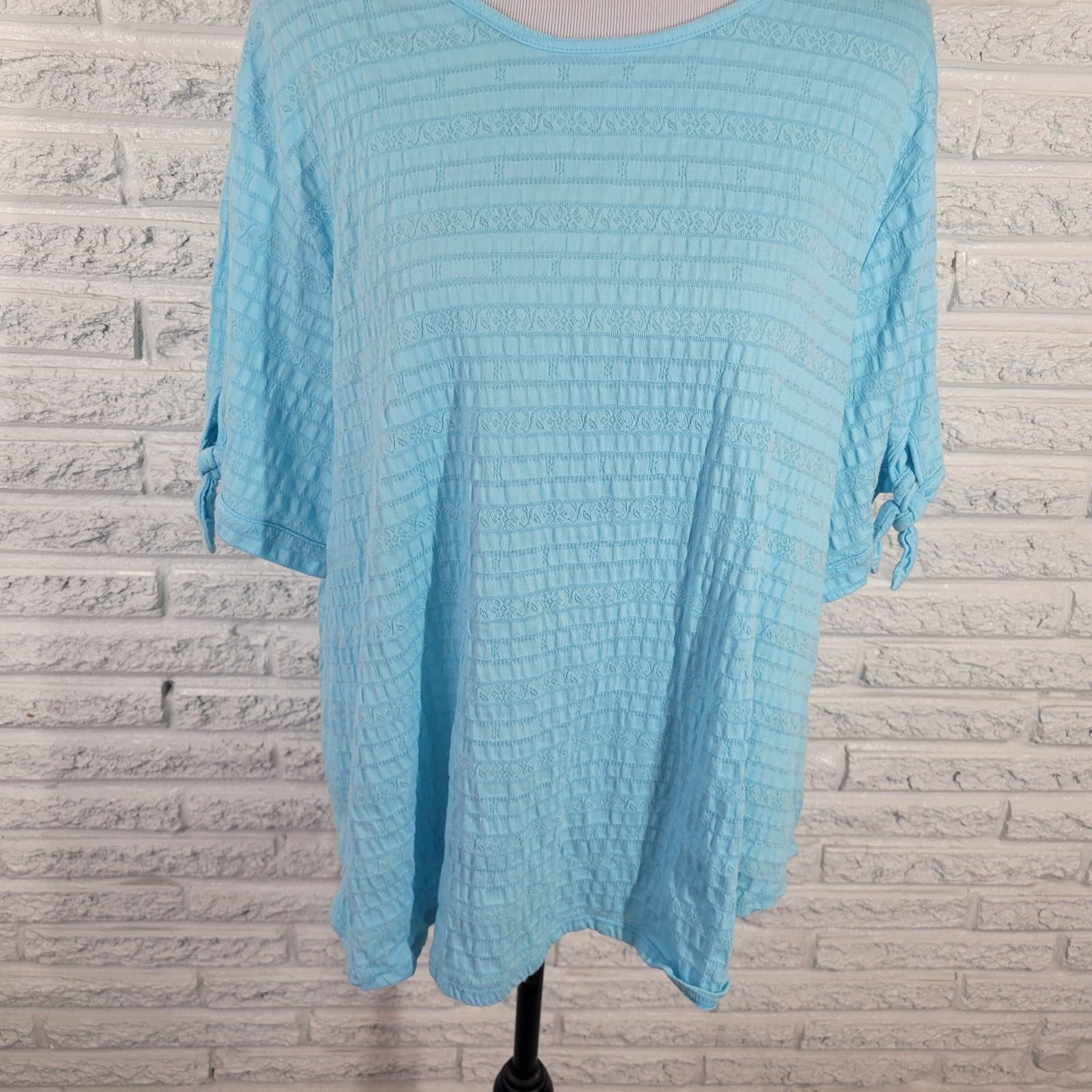 Ruby Rd Womens Top 2X Plus Tee Blue Tied Short Sleeve Eyelet Lightweight Comfy