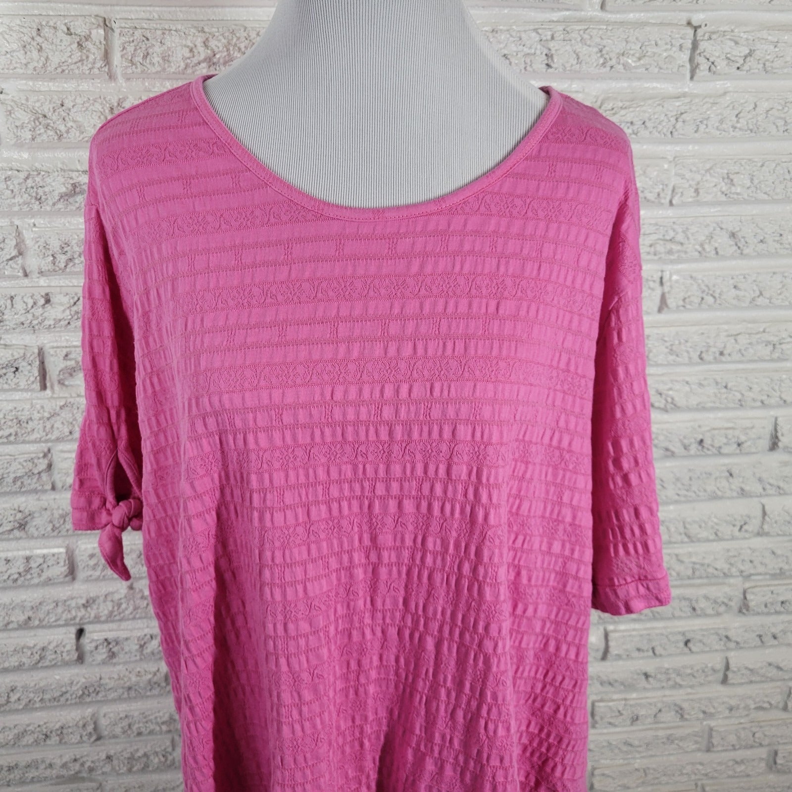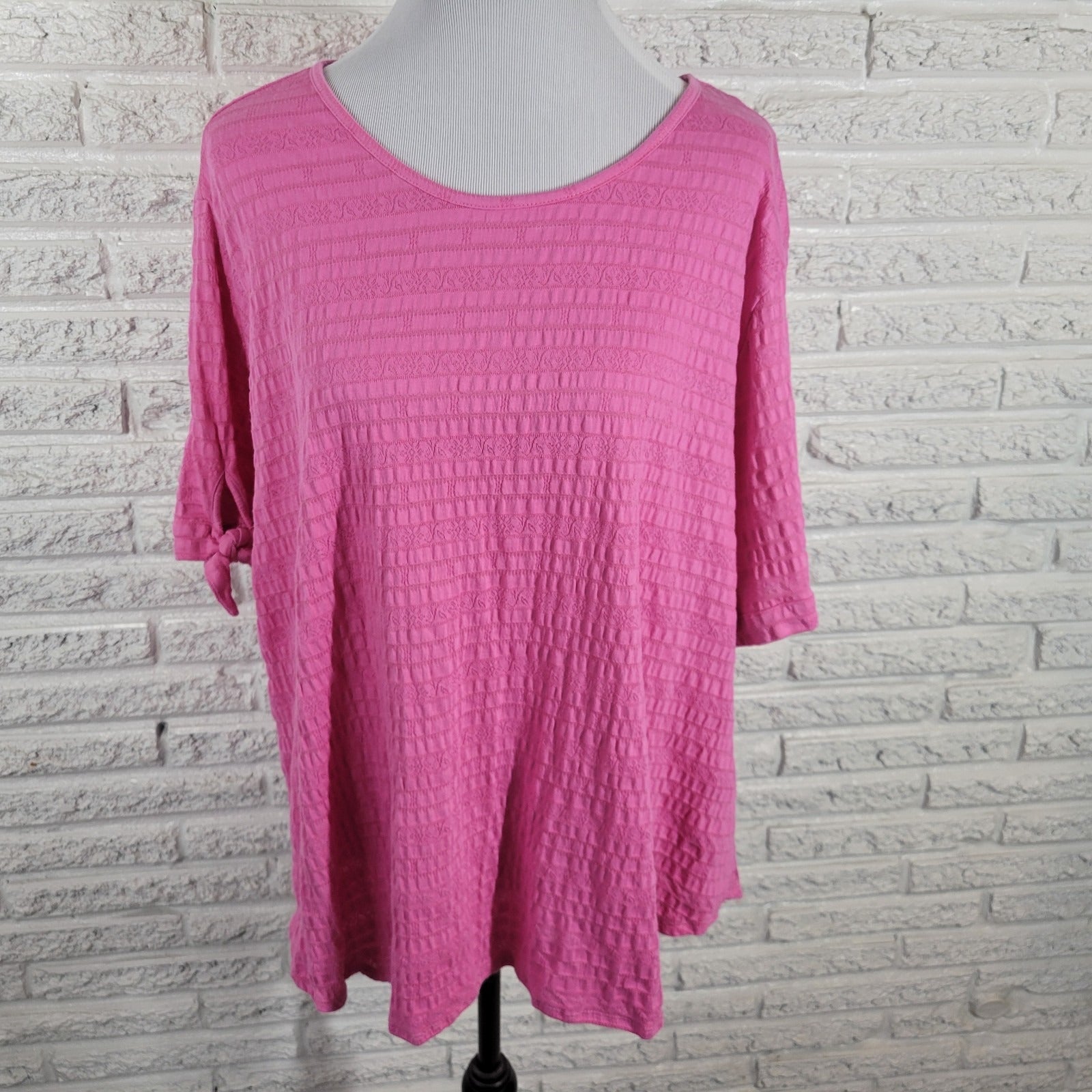 Ruby Rd Womens Top 2X Plus Tied Short Sleeve Pink Embroidered Cotton Blend Comfy
