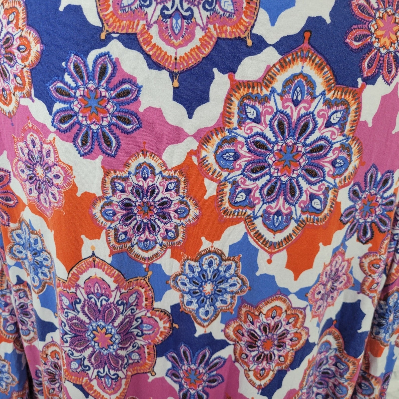 Ruby Rd Womens Top 2X Plus Tunic 3/4 Sleeve Pink Blue Geometric Rayon Comfy