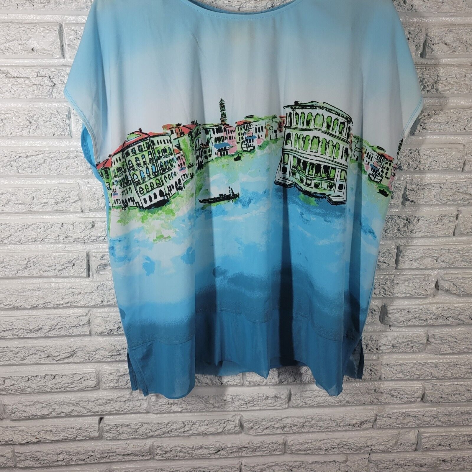 Ruby Rd Womens Top Extra Large XL Tee Polyester Sleeveless Blue Venice Cityscape