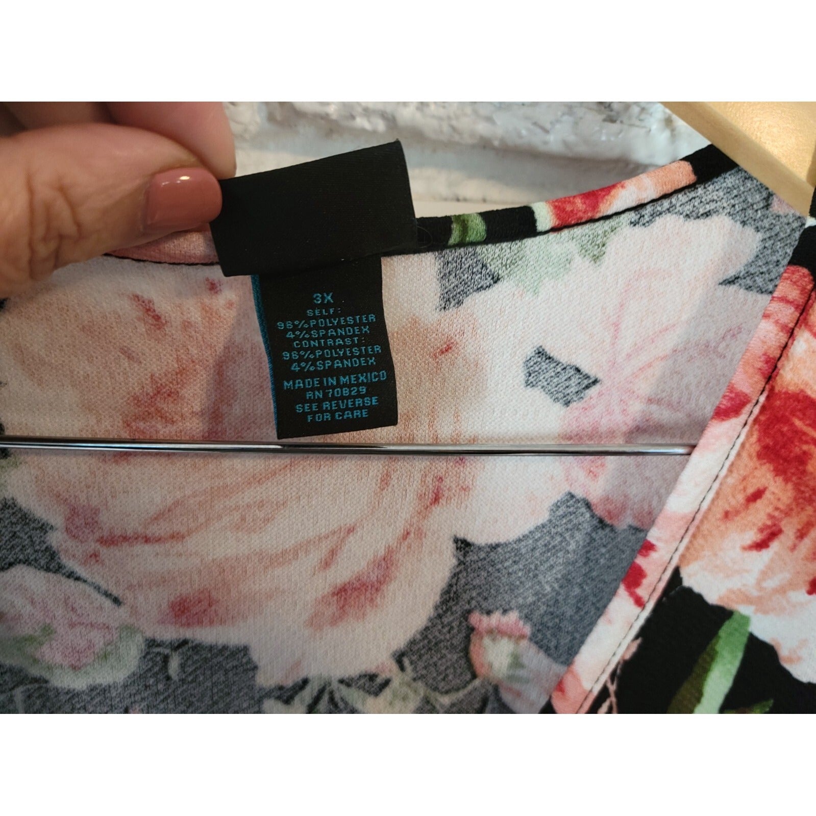 Rue 21 Women Dress 3X Plus Mini Sheath Black Pink Floral Short Sleeve Office
