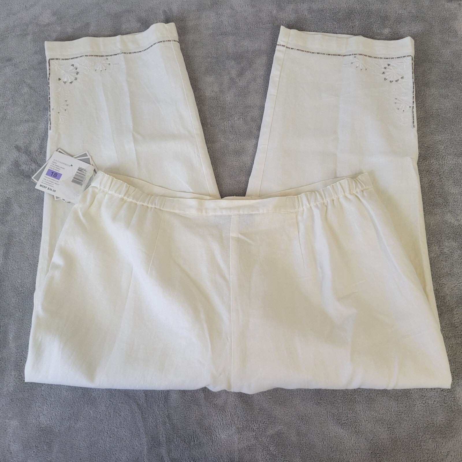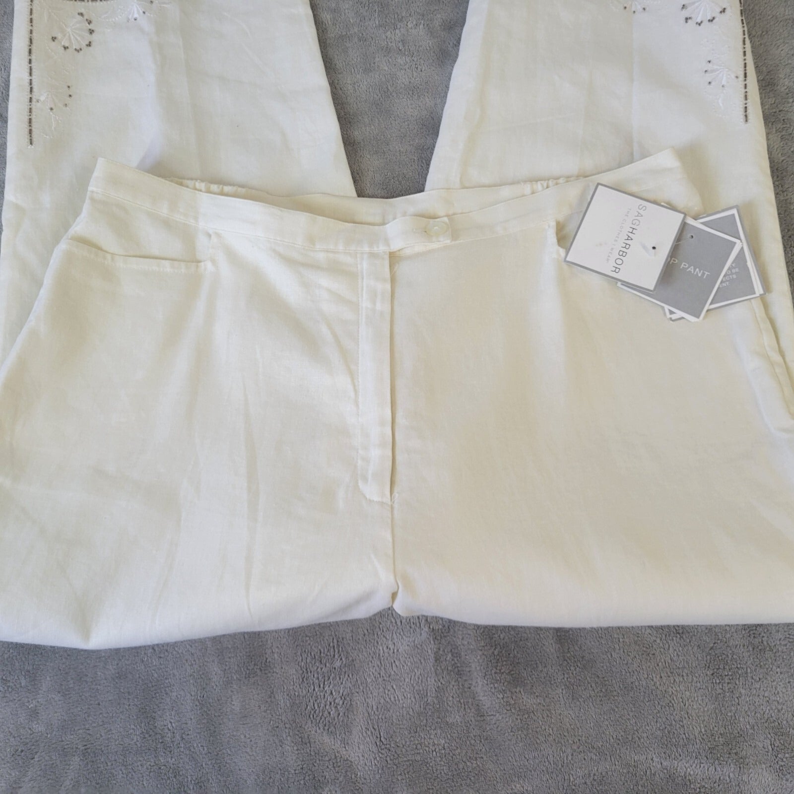 Sag Harbor Women Pants 18 Missy Capri Zip Fly Off White Beaded Lined Embroidered
