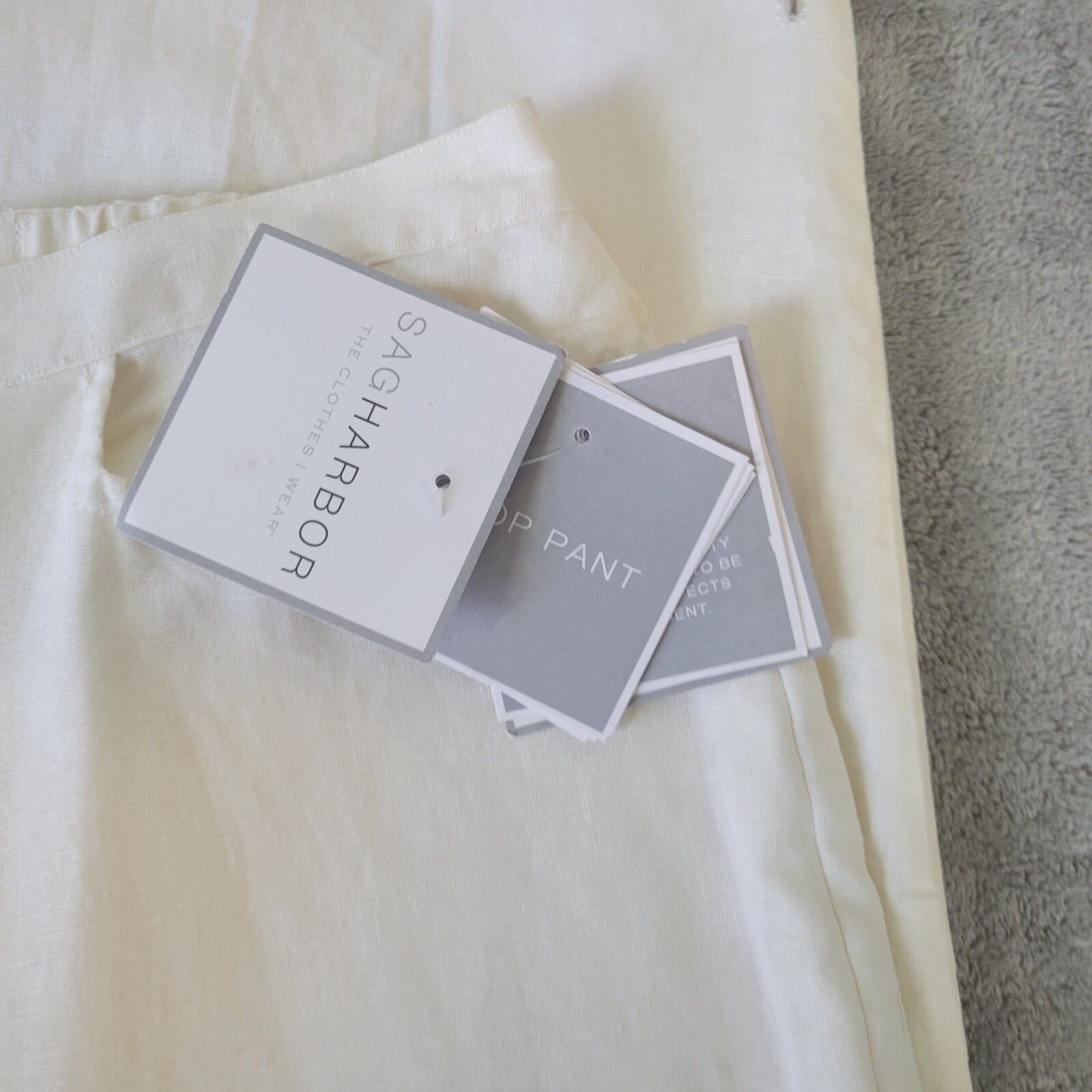 Sag Harbor offers a sophisticated touch to your wardrobe with these versatile off-white capri pants. Perfect for an array of occasions, from casual outings to business meetings, or when you're out traveling, these pants are a stylish and comfortable choice. The beaded and embroidered accents add a touch of elegance, making them suitable for both day and evening wear. The pants are thoughtfully designed with a blend of rayon and linen, ensuring both breathability and durability. They come in a plus size with a waist of 34 inches and an inseam of 24 inches, offering a straight leg style that flatters the figure. Features like an elastic waist, lined interior, and convenient pockets enhance the practicality of this garment. Care is simple with a hand wash only requirement, keeping your pants looking their best wear after wear.
