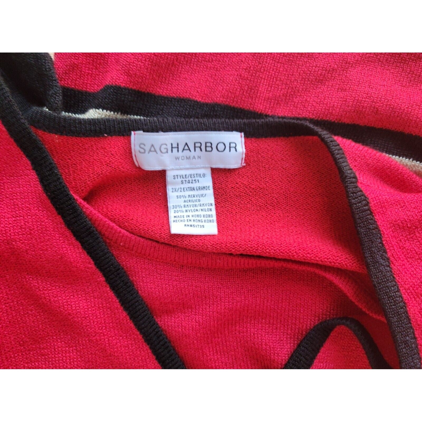 Sag Harbor Women Sweater 2X Plus Long Sleeve Red Stripe Office Clasp Closure