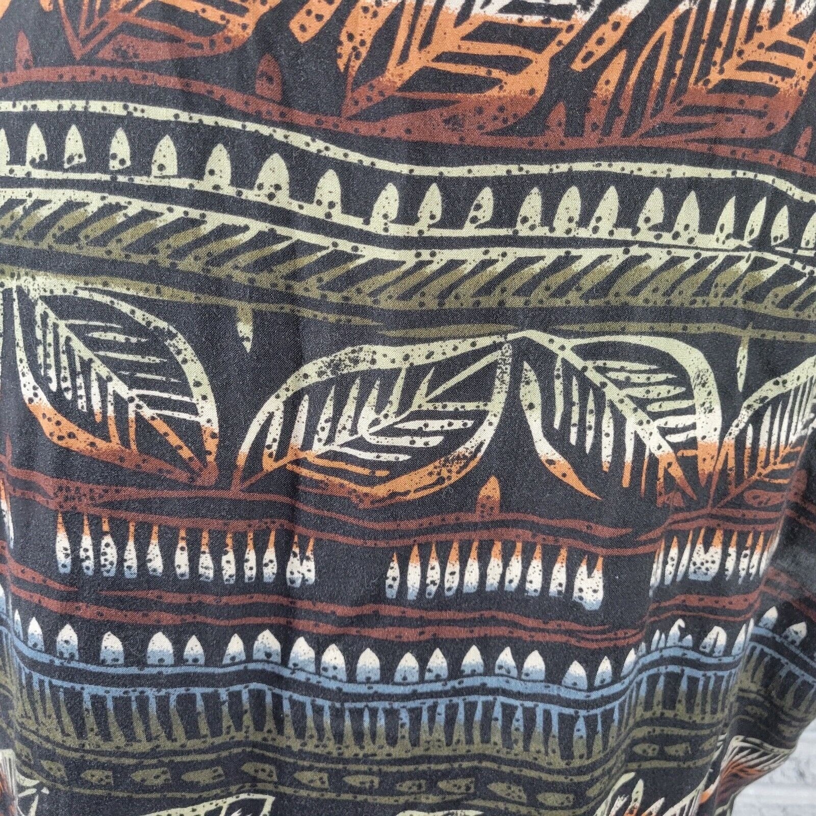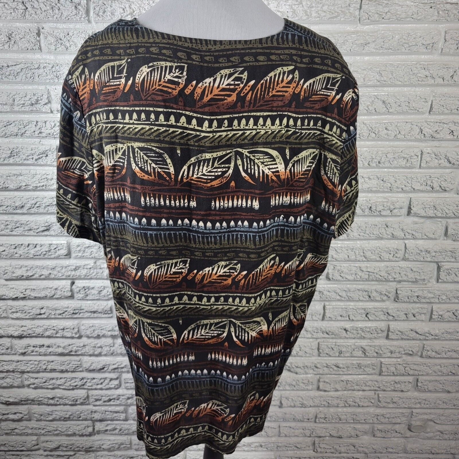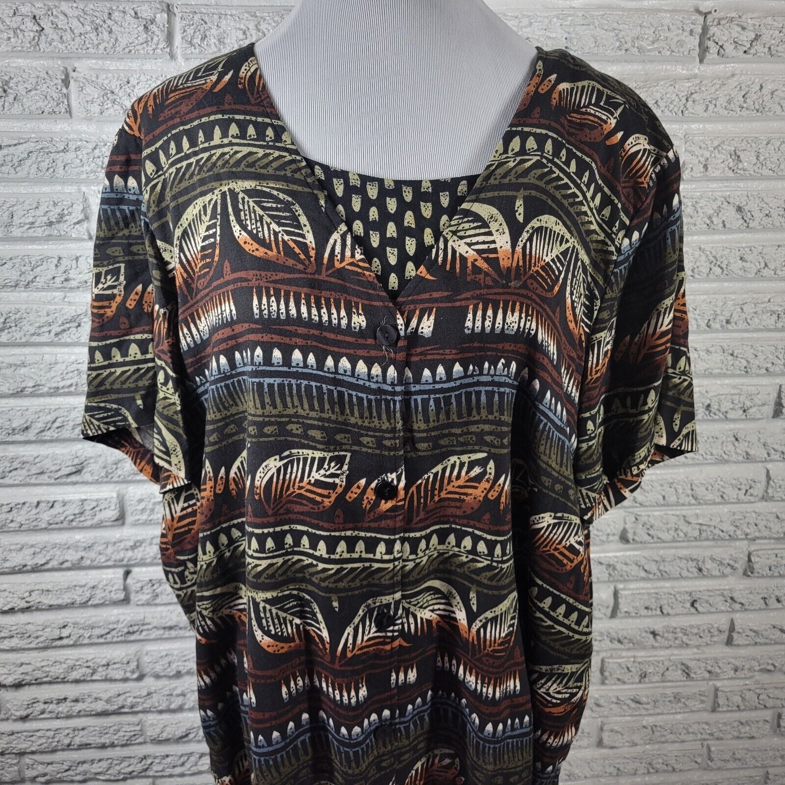 Sag Harbor Women Top 2X Plus Short Sleeve Black Geometric Button Up Office Rayon