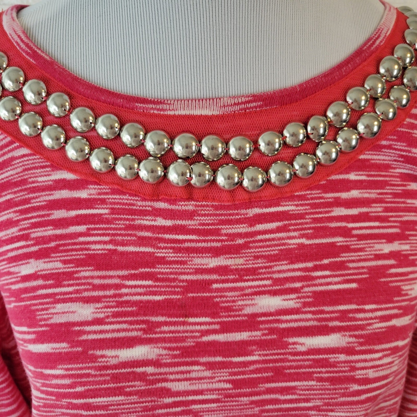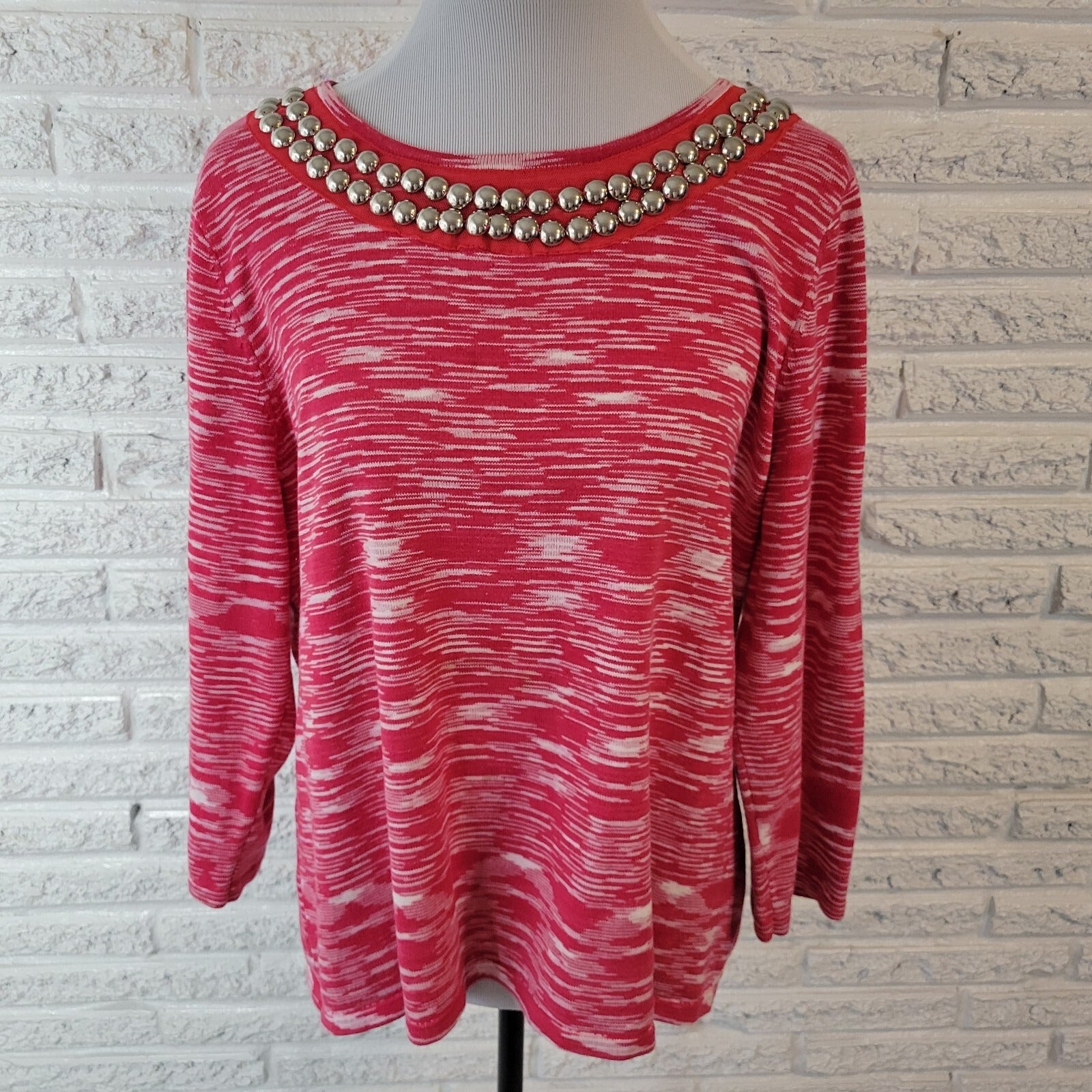 Sag Harbor Women Top XL 3/4 Sleeve Pink Heather Knit Cotton Studded Comfy Casual