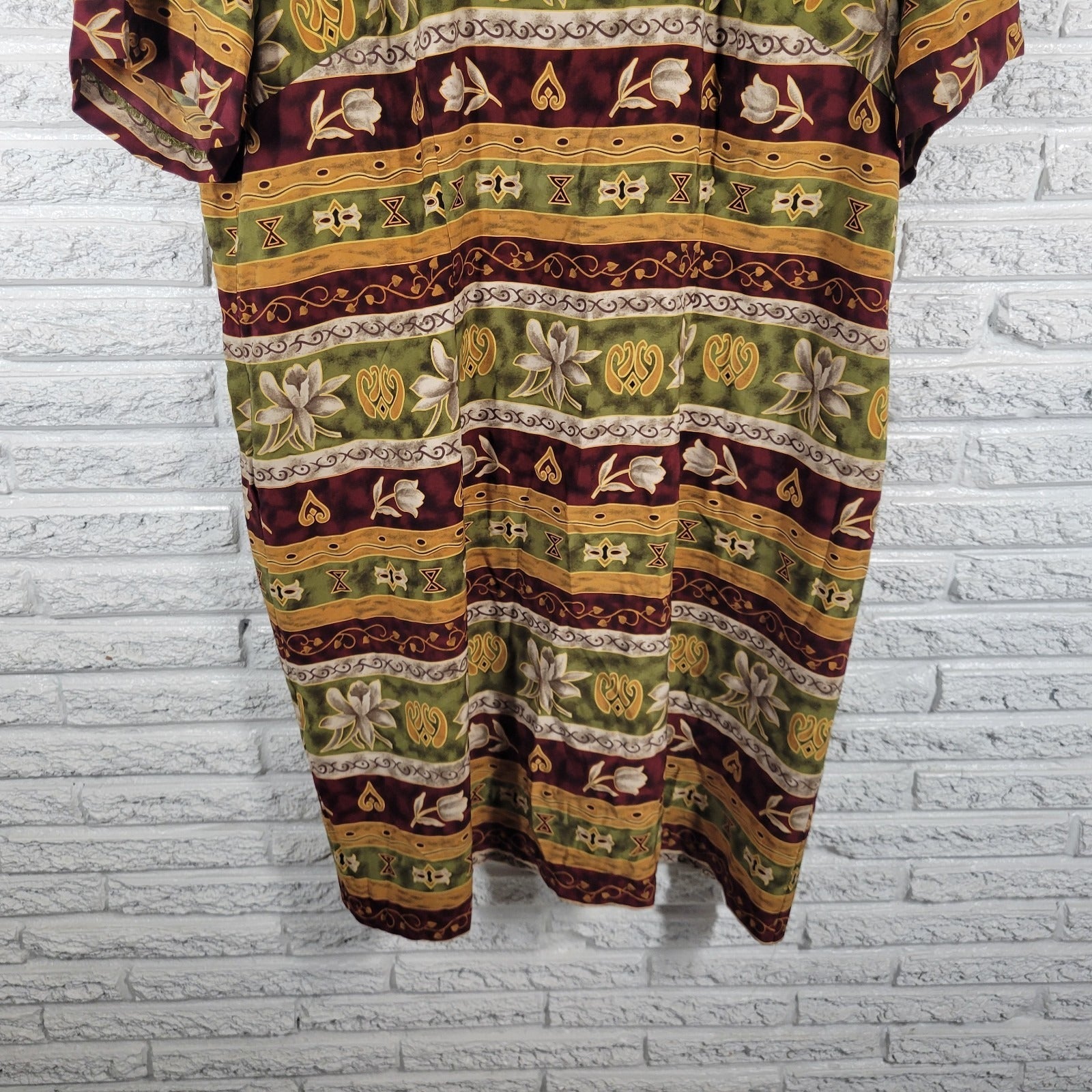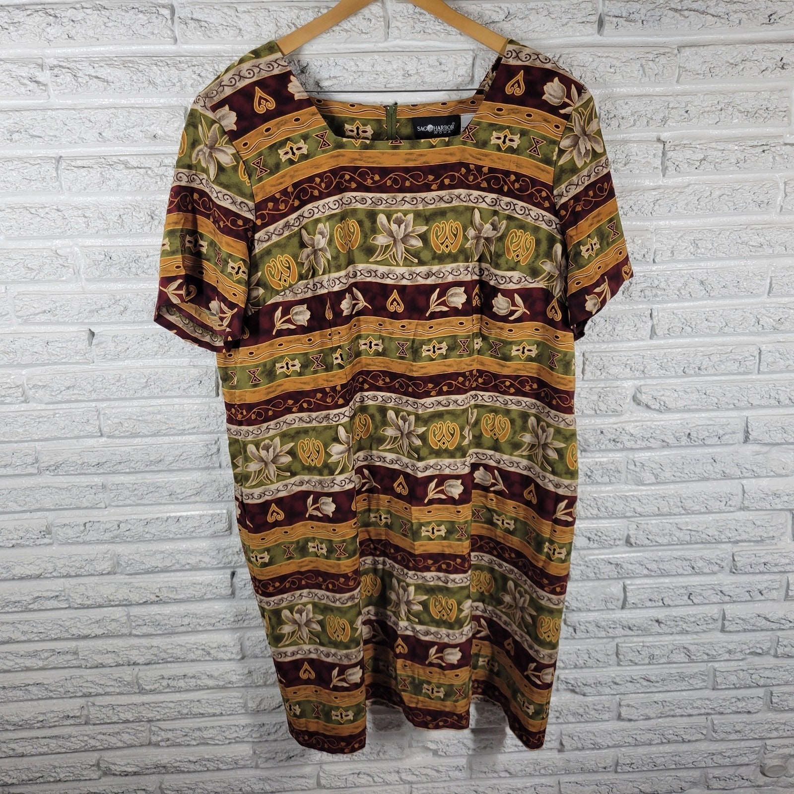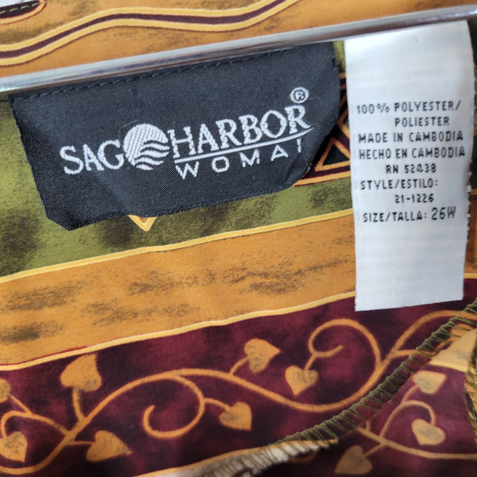 The Sag Harbor Women's Dress in size 26W is a stylish and versatile option for various occasions. With a geometric brown/green pattern, short sleeves, square neckline, and knee-length skirt, this dress is perfect for travel, casual outings, or even a business meeting. Made from polyester, this machine-washable dress also features a convenient side slit and is designed in a plus-size fit. Perfect for all seasons, this shirt dress from Sag Harbor offers a fashionable and comfortable option for any woman's wardrobe.